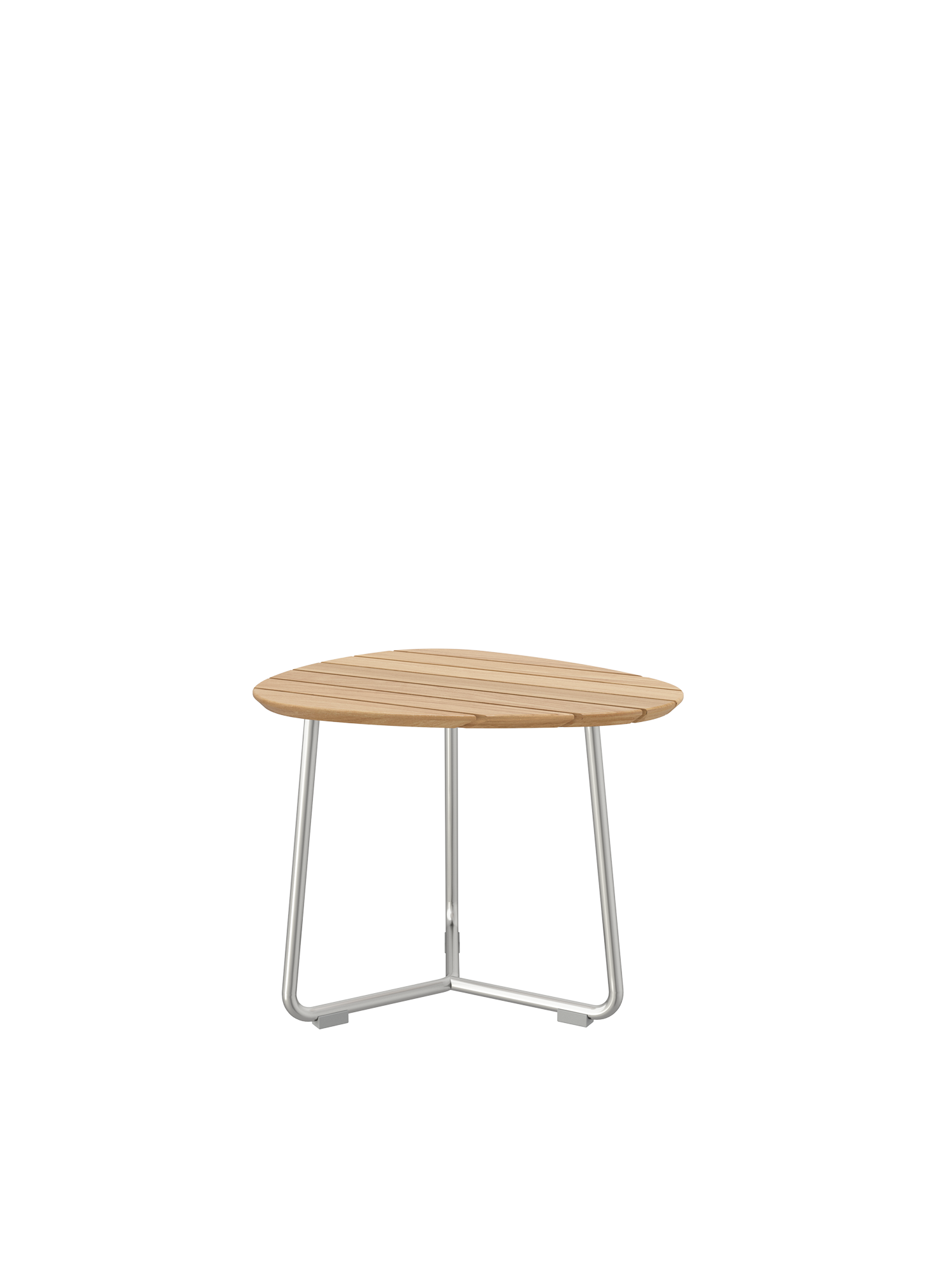 Der Amari Beistelltisch fügt sich mit seiner asymmetrisch gerundeten Form harmonisch in das Bild der Amari Lounge. Etwas kleiner in der Fläche als die beiden Loungetische, wartet der Beistelltisch aus Teak auf seinen Einsatz in der Garten- oder Terrassenlandschaft.