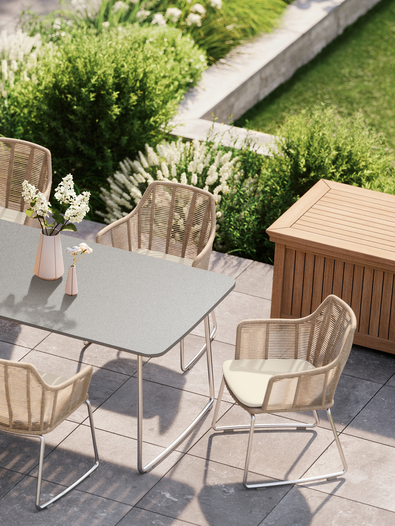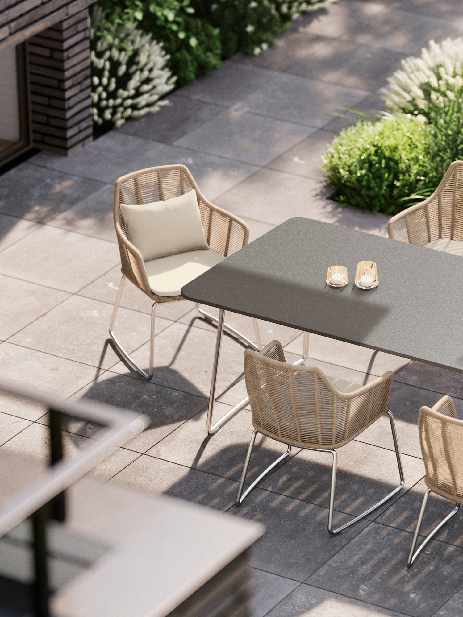 Die Oberfläche des Gartentisches besteht aus hochwertigem Kunstharz, was sie absolut wetterfest, pflegeleicht und langlebig macht. Nur witterungsbeständige und robuste Materialien in gewohnter Garpa Qualität werden in der Amari Kollektion verwendet. So ist auch das Gestell des Esstisches aus pflegeleichtem, gebürstetem Edelstahl.