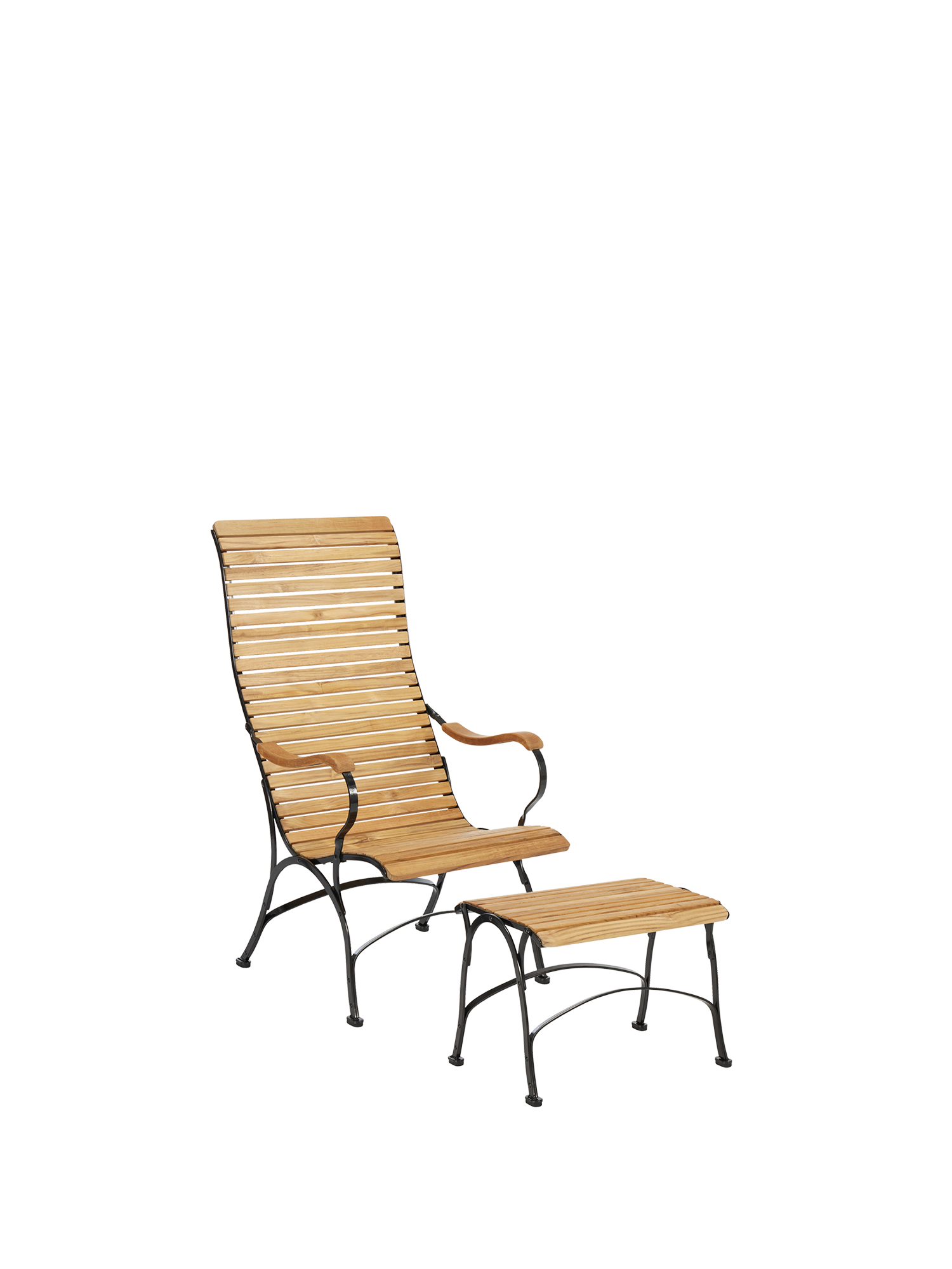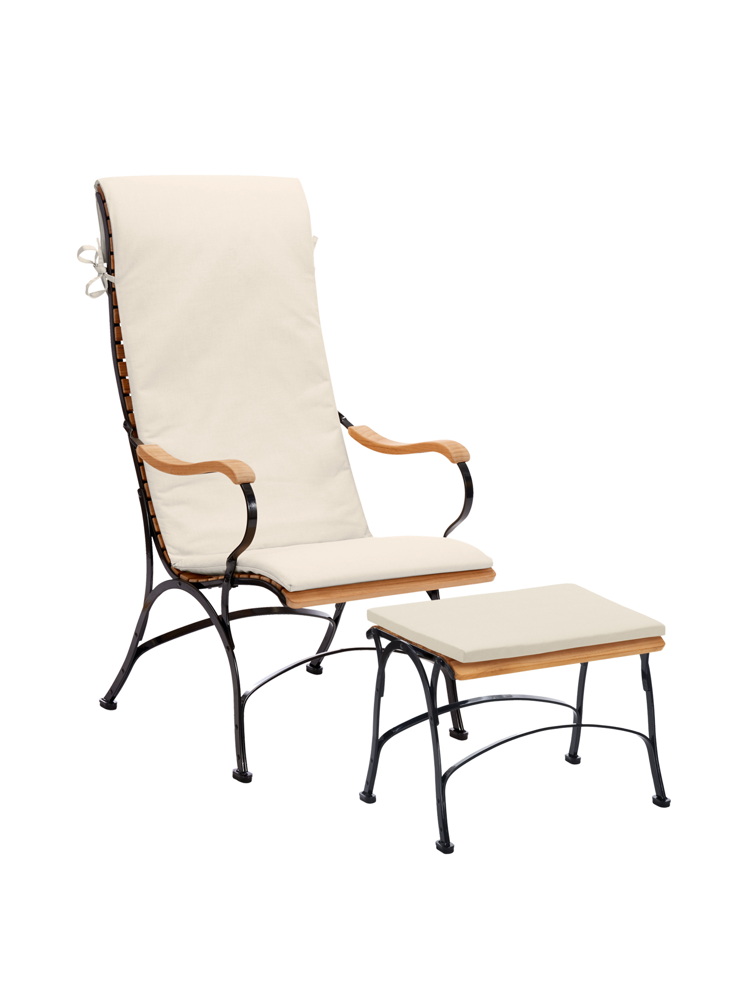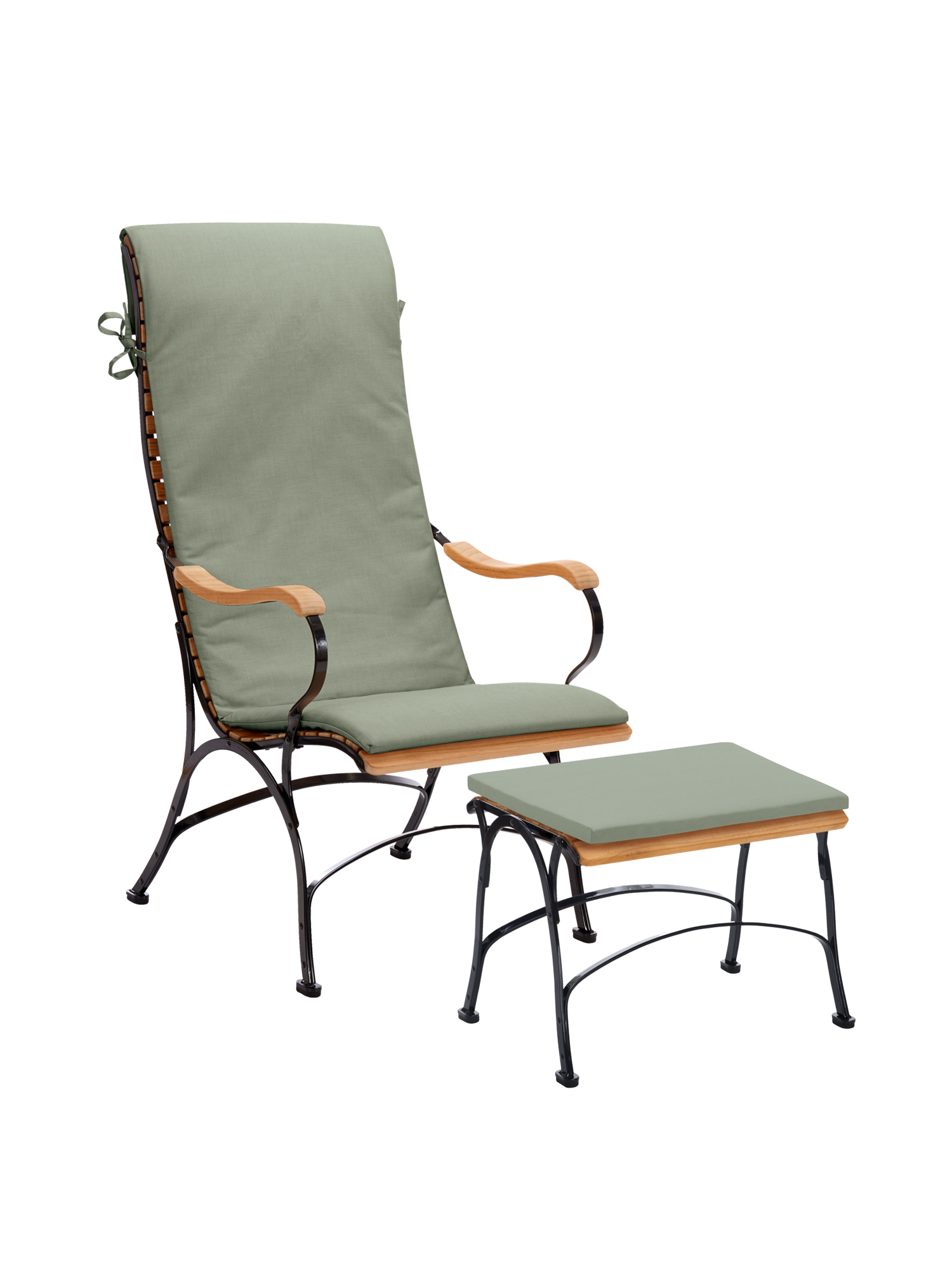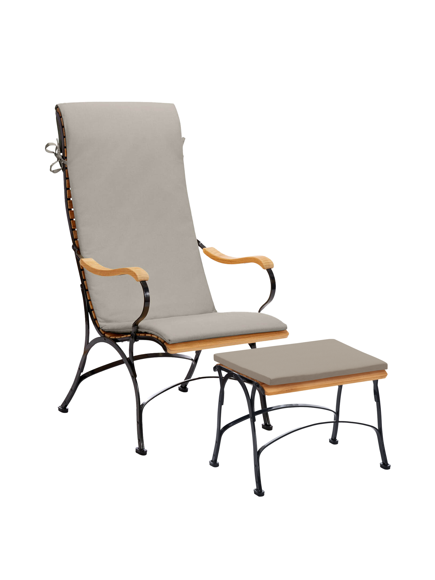 Er verbreitet französisches Flair, gemischt mit einer Prise Nostalgie. Sein Name verspricht beste Aussicht – nur Plätze in exponierter Lage dürfen sich so nennen. Der Bellevue Gartensessel hat diese Qualität verinnerlicht. Sanft folgt er der Form des Körpers und passt zum Rücken wie angegossen. Spürbarer Komfort, der mit einer weichen Auflage noch steigerungsfähig ist. Seine hohe Lehne und der tiefe, vorgezogene Sitz gehen nahtlos ineinander über. Auf dem beigestellten festen Hocker lassen sich bequem die Beine ausstrecken.
