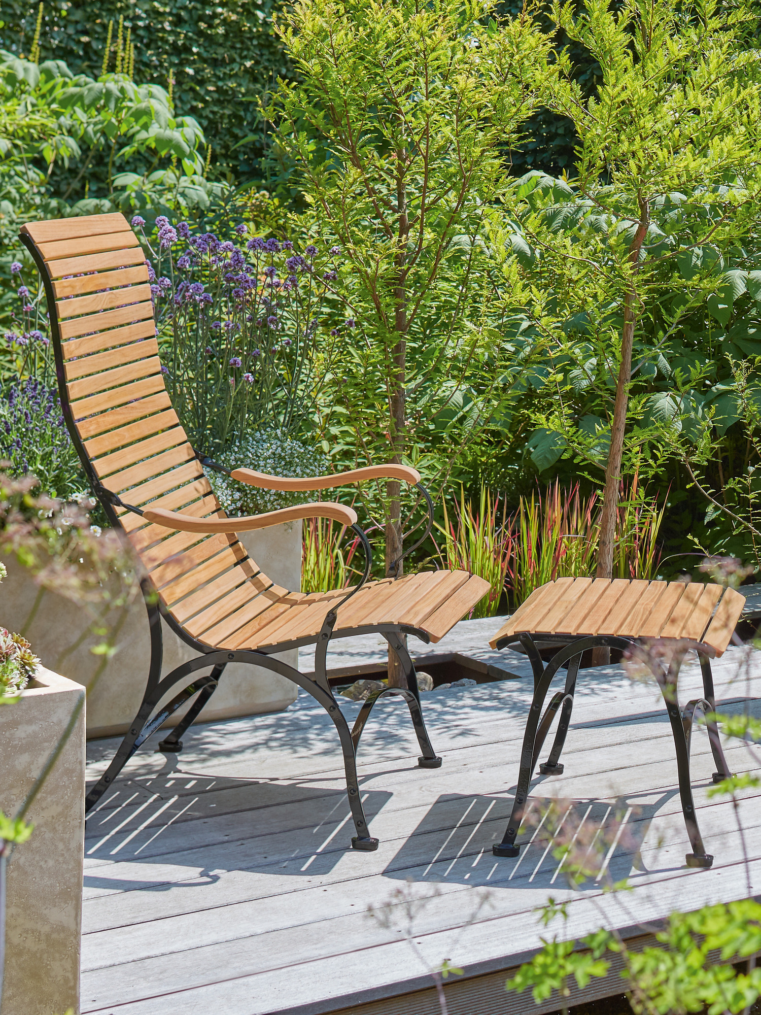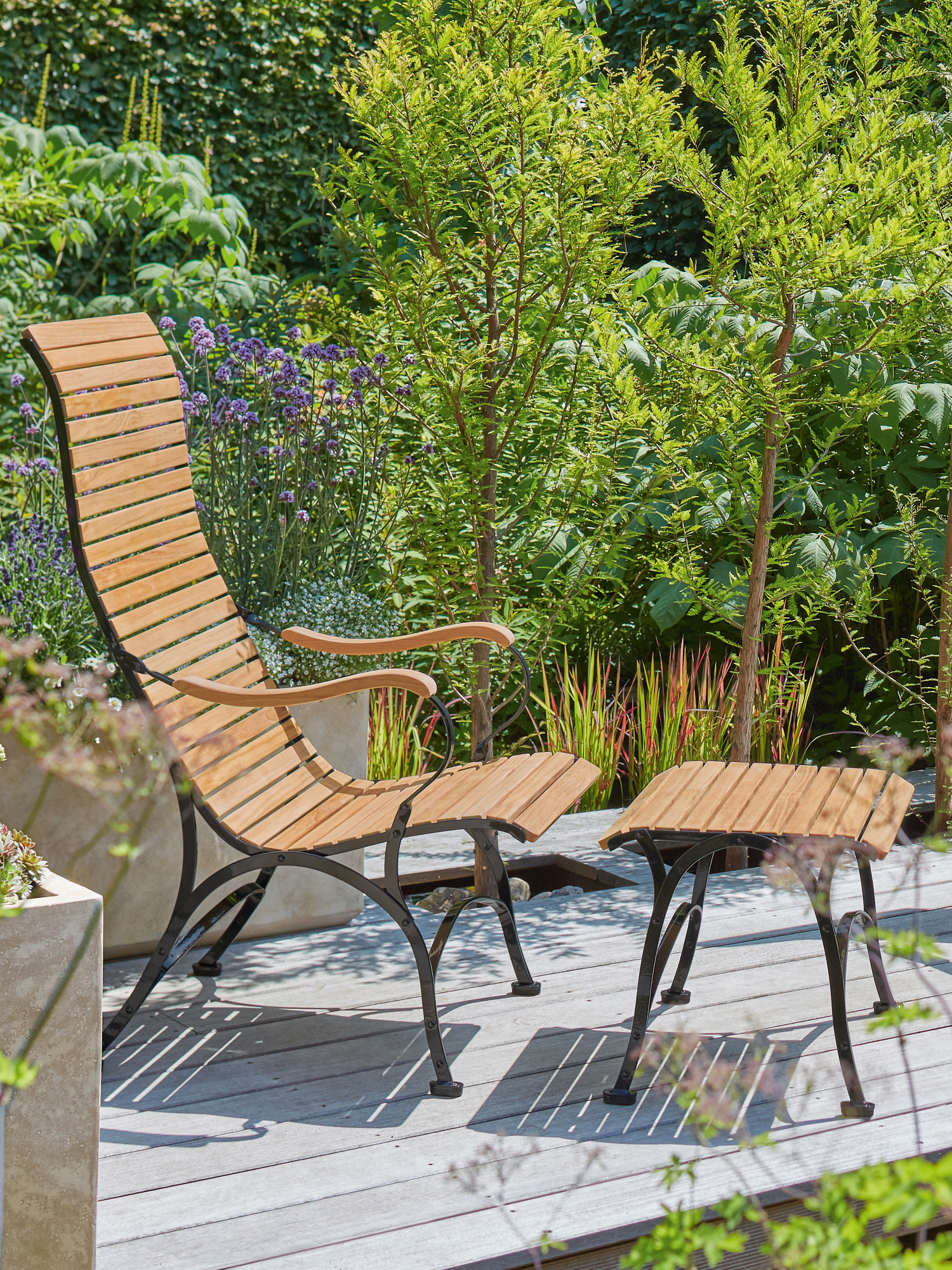 - ergonomisch geformte Sitzflächen aus Plantagenteak