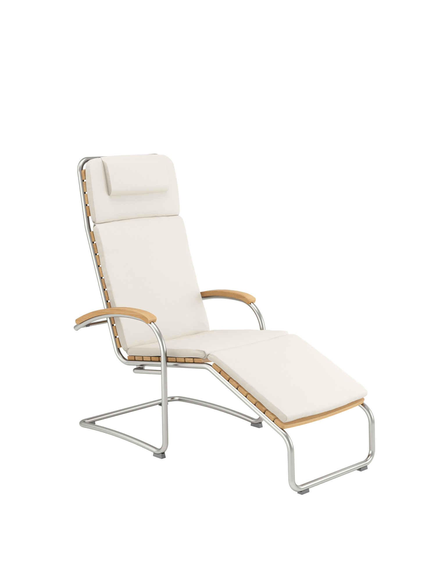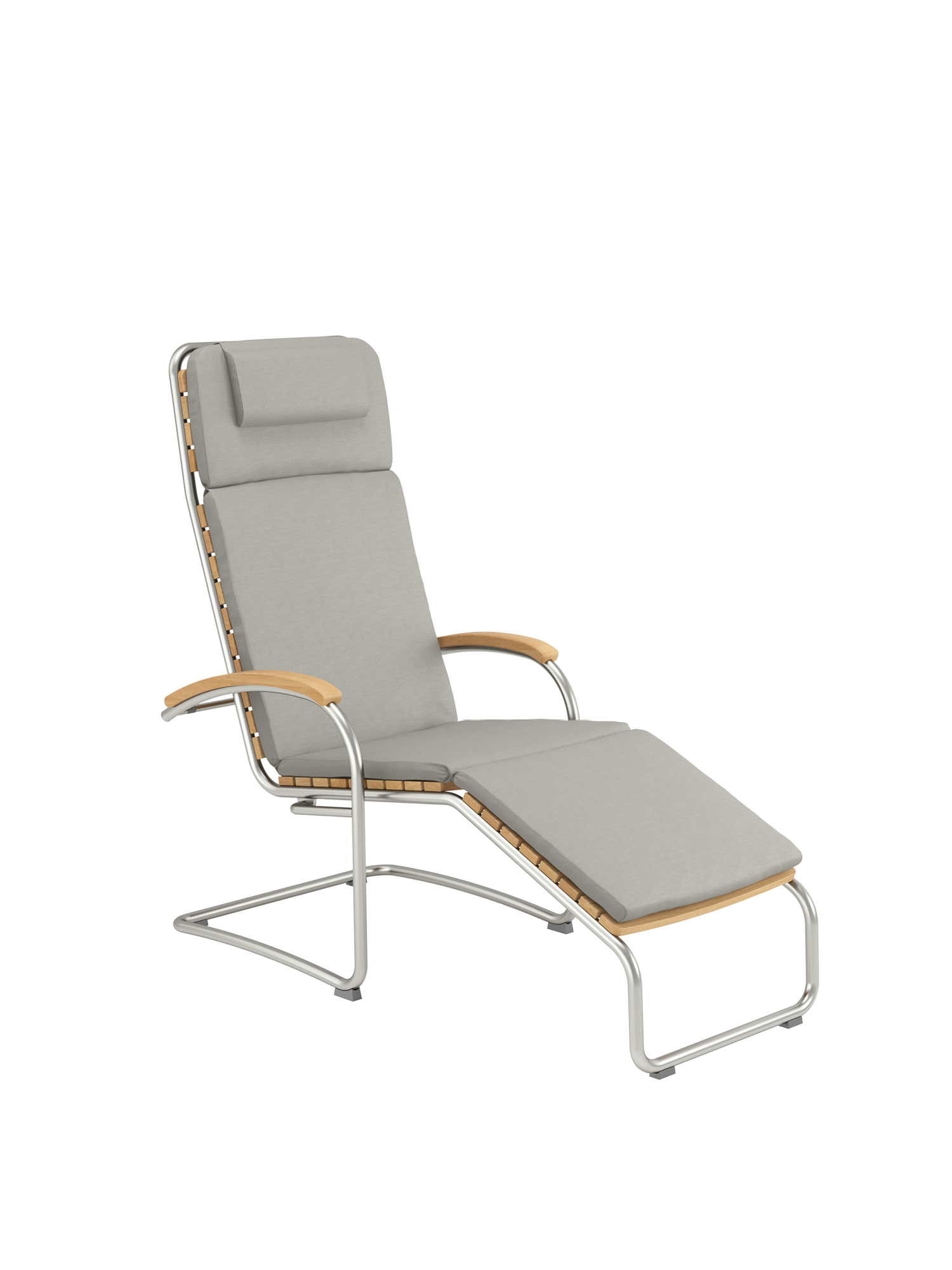 Aufrecht sitzen oder bequem zurücklehnen: Das leichte, wiegende Federn des Edelstahlgestells des Liegesessels entlastet den Rücken und wirkt sehr entspannend. Durch einfache Gewichtsverlagerung gleitet man sanft von der Sitz- in die Liegeposition. Unter dem Gestell befinden sich auswechselbare Gleiter aus Kunststoff, die empfindliche Böden schützen.