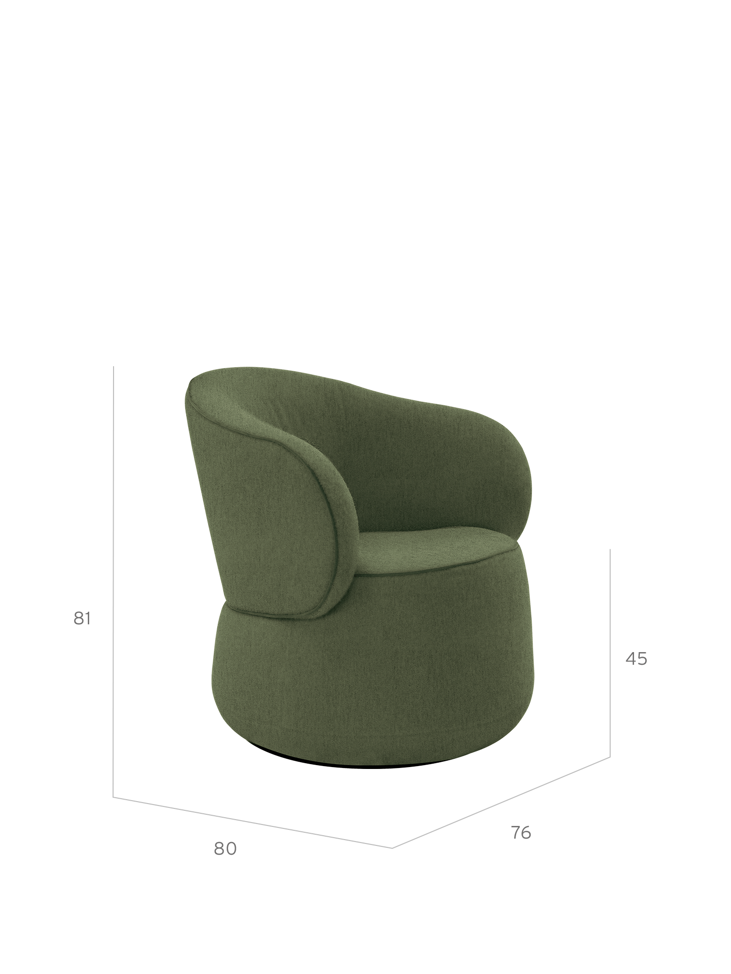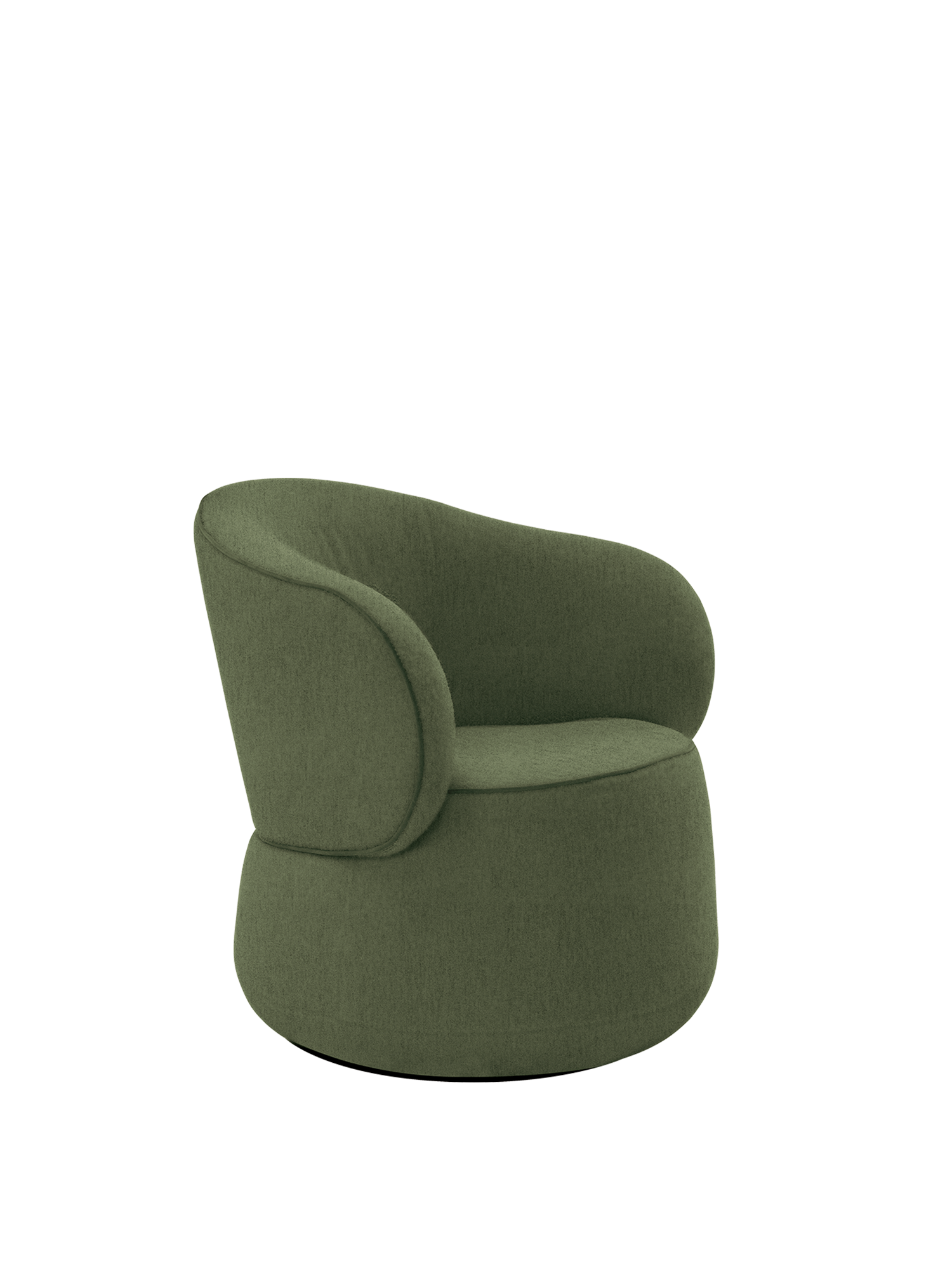 Cara öffnet sich wie eine sanfte Umarmung und empfängt mit hoher Rückenlehne und weichem, rundem Sitz zur behaglichen Auszeit. Die solide Polsterung der Elemente bietet angenehmen Halt, der smaragdgrüne Stoff aus Mohair und Polyacryl garantiert höchsten Komfort. Wie selbstverständlich folgt der drehbare Sockel der natürlichen Bewegung – und passt sich der Sitzposition beim Lesen, Zuhören und Entspannen an. Ob als Sitzgruppe oder Solitär in wohnlichen Interieurs inszeniert – das außergewöhnliche Design verkörpert Leichtigkeit und Geborgenheit zugleich.