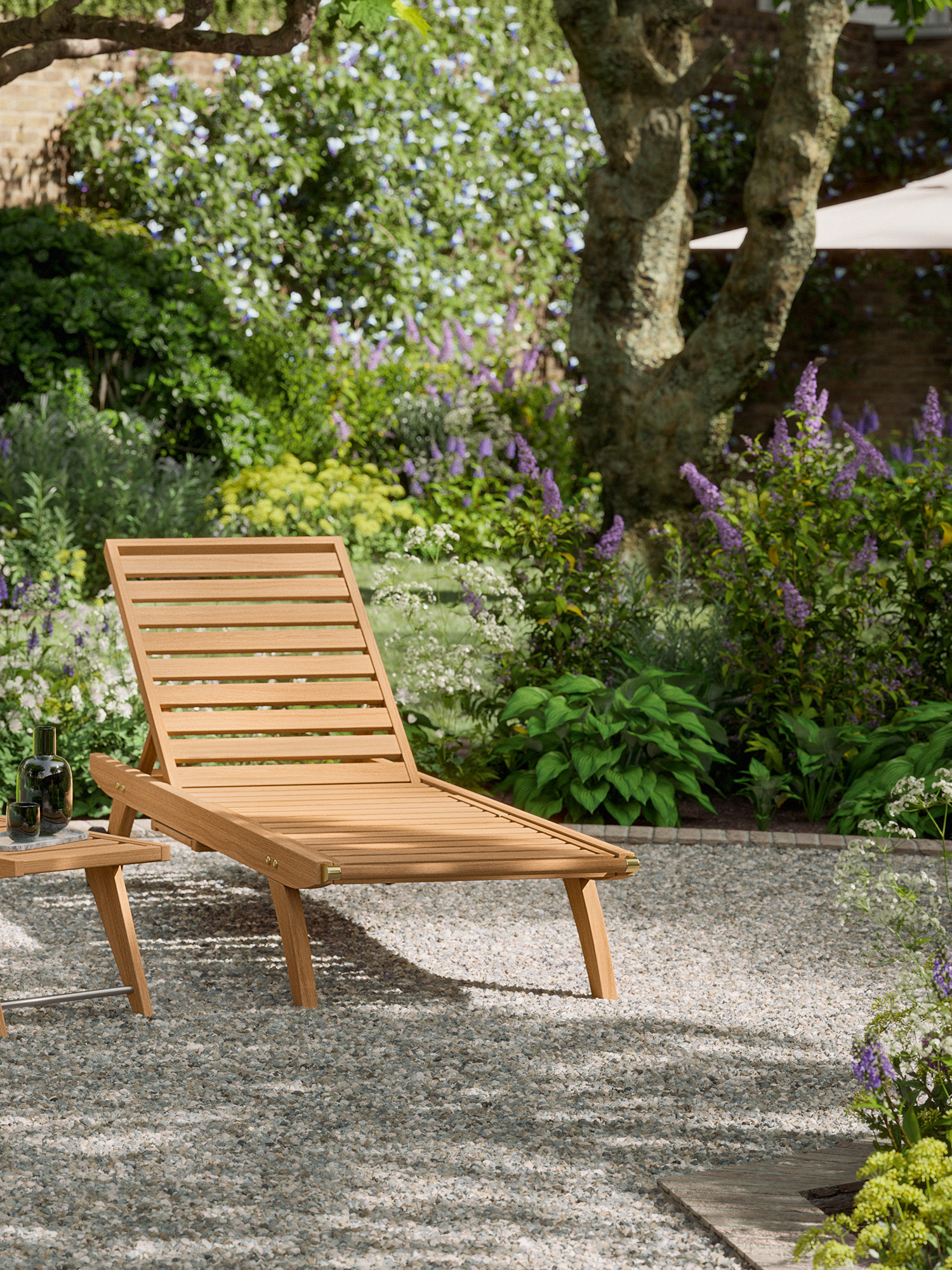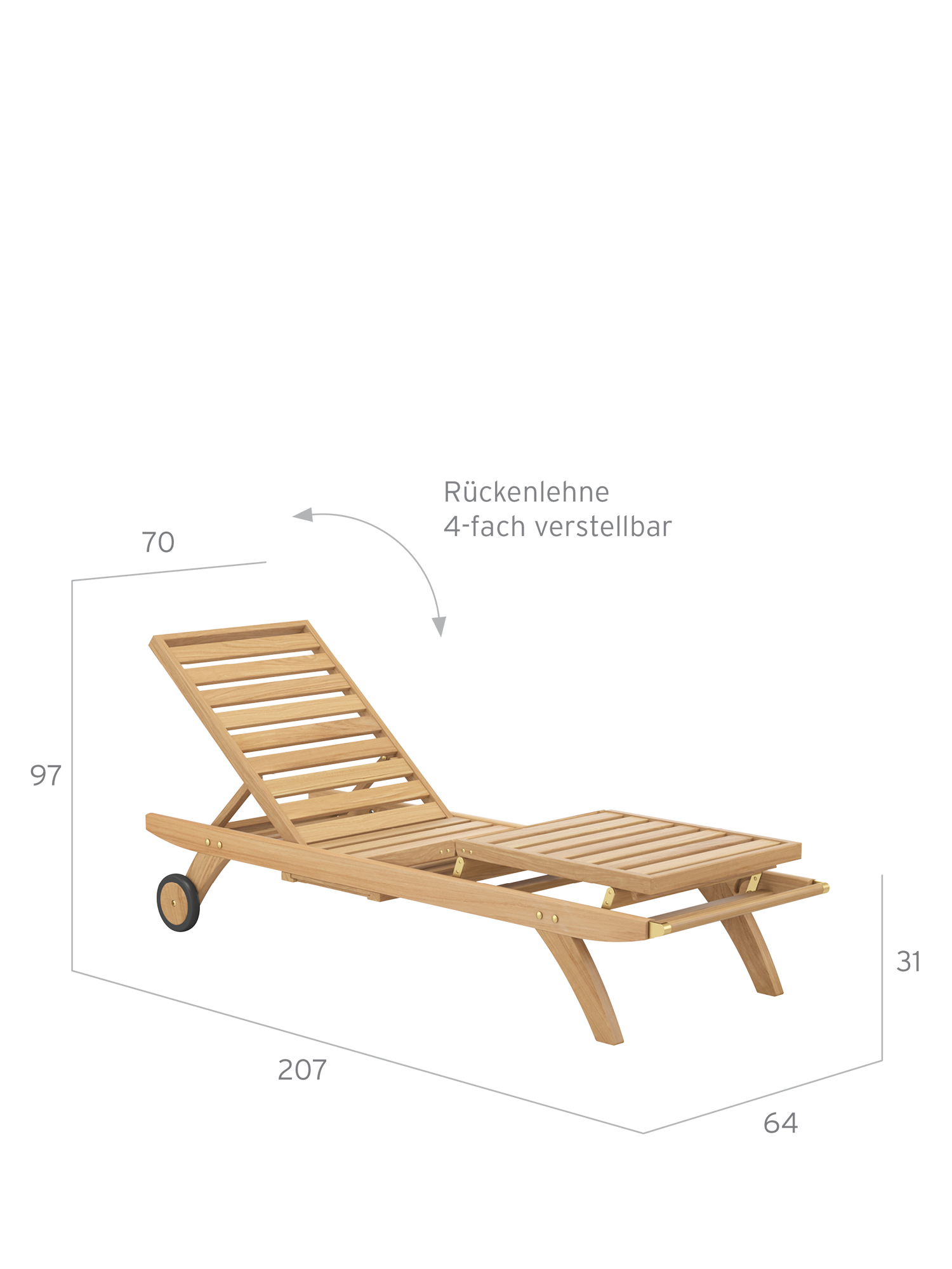Die Rückenlehne der Liege lässt sich vierfach verstellen, zum Sonnenbaden auch in eine ganz flache Position.