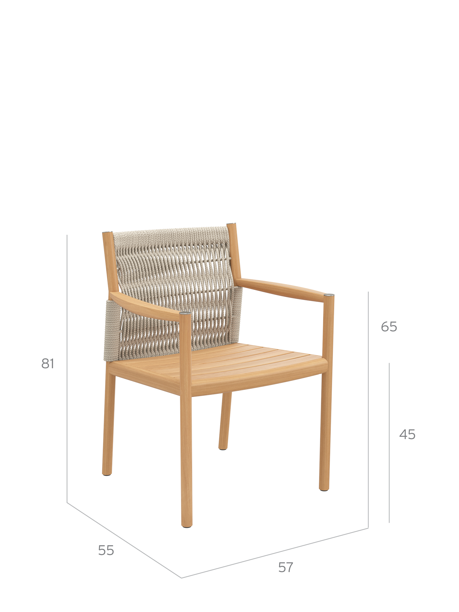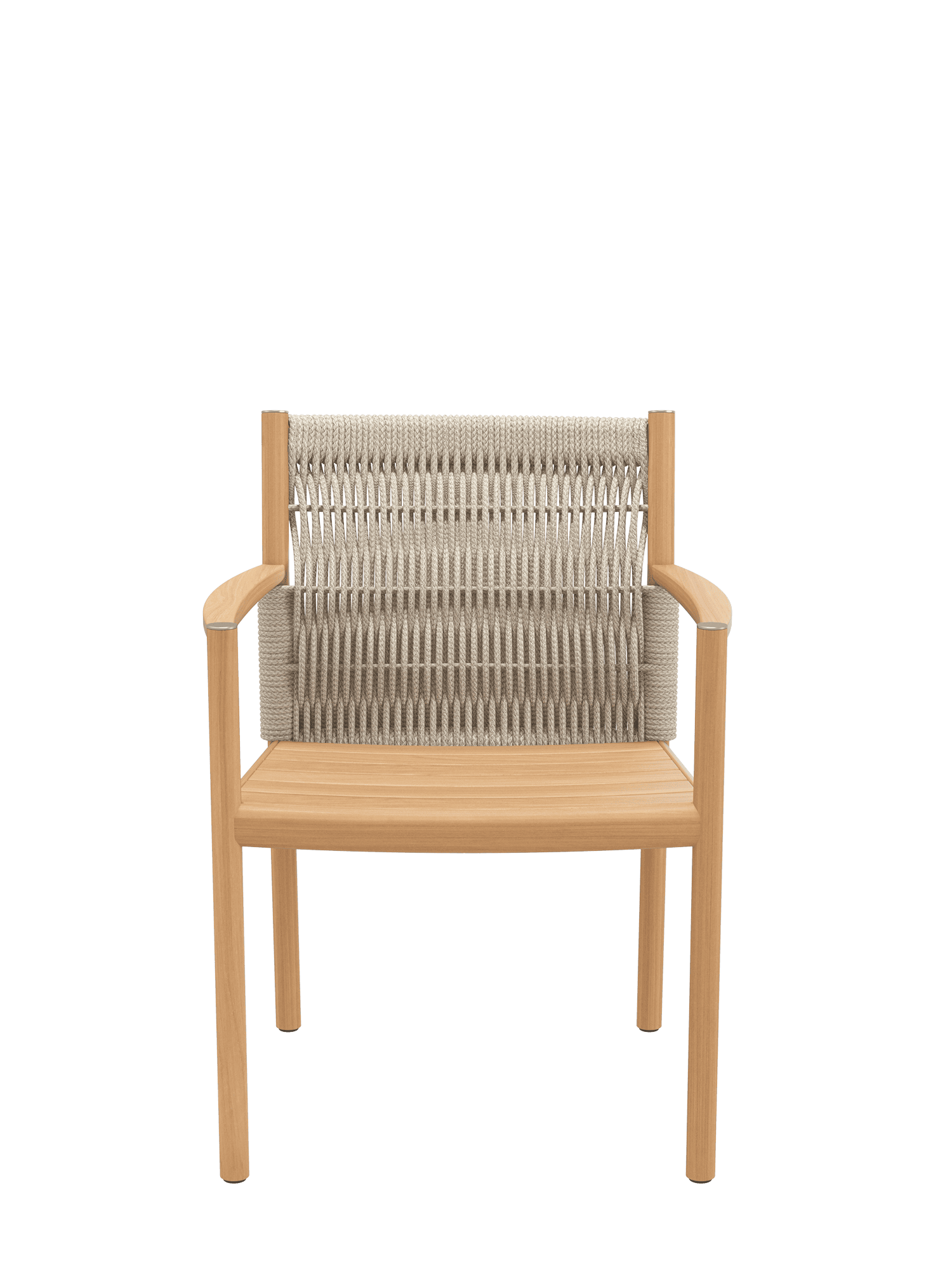 Im unverwechselbaren Design der behaglichen Cavo Kollektion laden die komfortablen Armlehnstühle zu Tisch. Gedrechseltes Plantagenteak bildet die elegante Basis für eine ergonomisch geformte Sitzfläche und sanft gerundete Armlehnen. Die hohe Rückenlehne der Dining Stühle aus anschmiegsamem Kordelgeflecht im Farbton Beige bietet Geborgenheit an langer Tafel oder in kleiner Runde. Feine Edelstahldetails setzen einen vertrauten Akzent. Optional erhältliche Auflagen in verschiedenen Dessins sorgen zusätzlich für Entspannung.