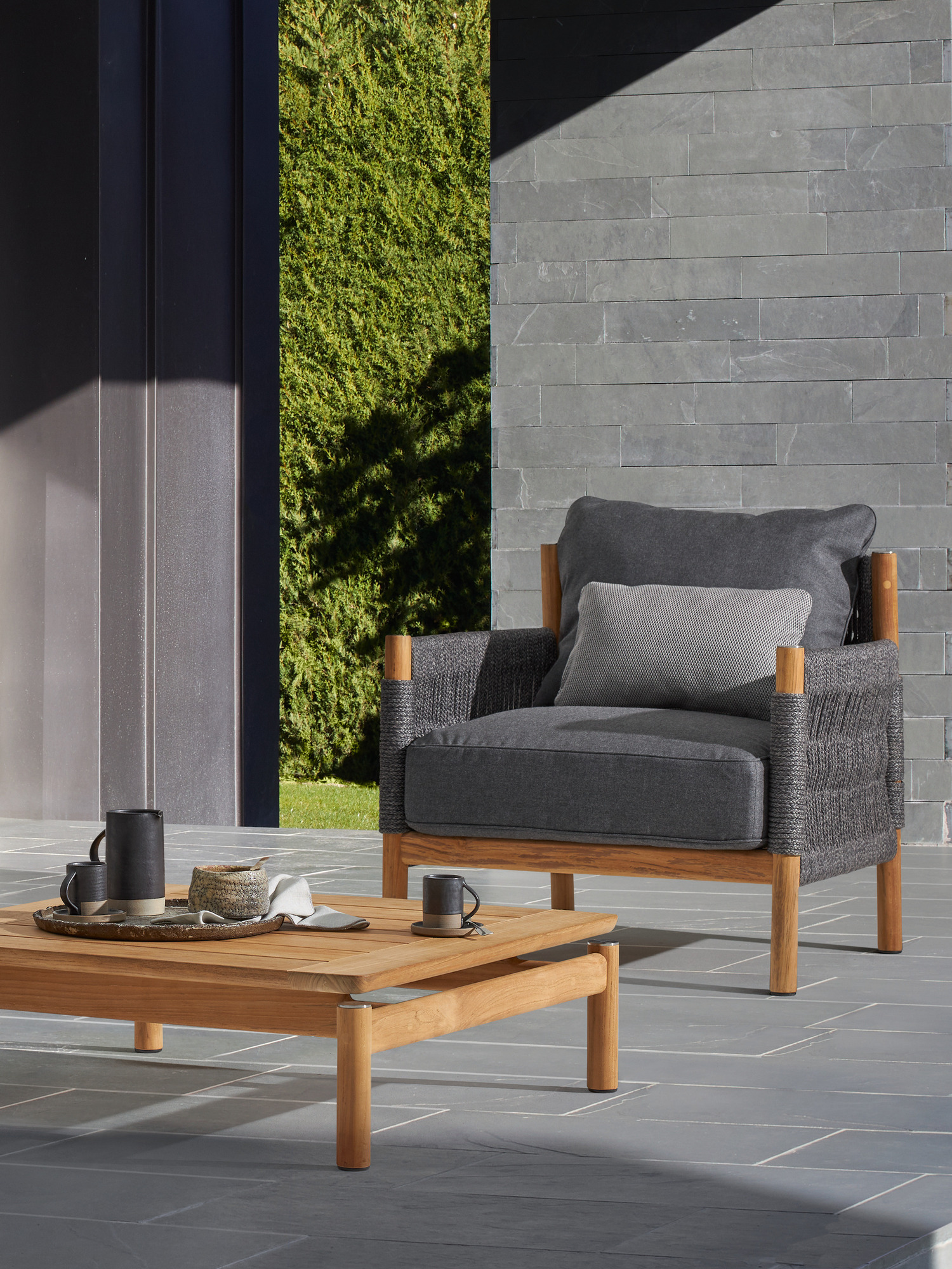 Cavo zelebriert seinen souveränen Auftritt im idyllischen Garten wie auf der urbanen Dachterrasse. Die Lounge Kollektion mit Starqualitäten setzt auf spannende Kontraste und überraschende Details. Teakholz übernimmt den klassischen Part in fein gedrechselter Gestalt.
