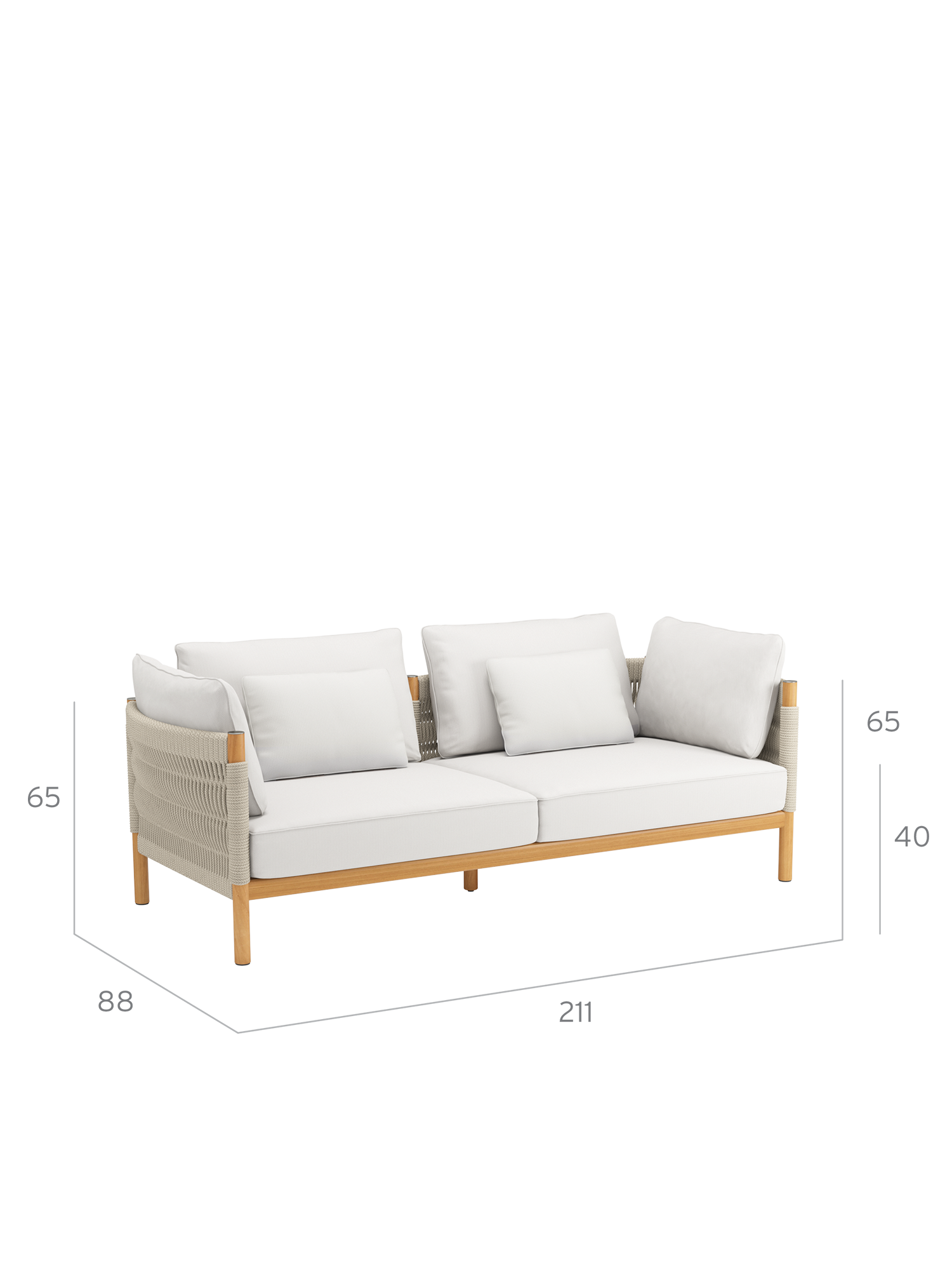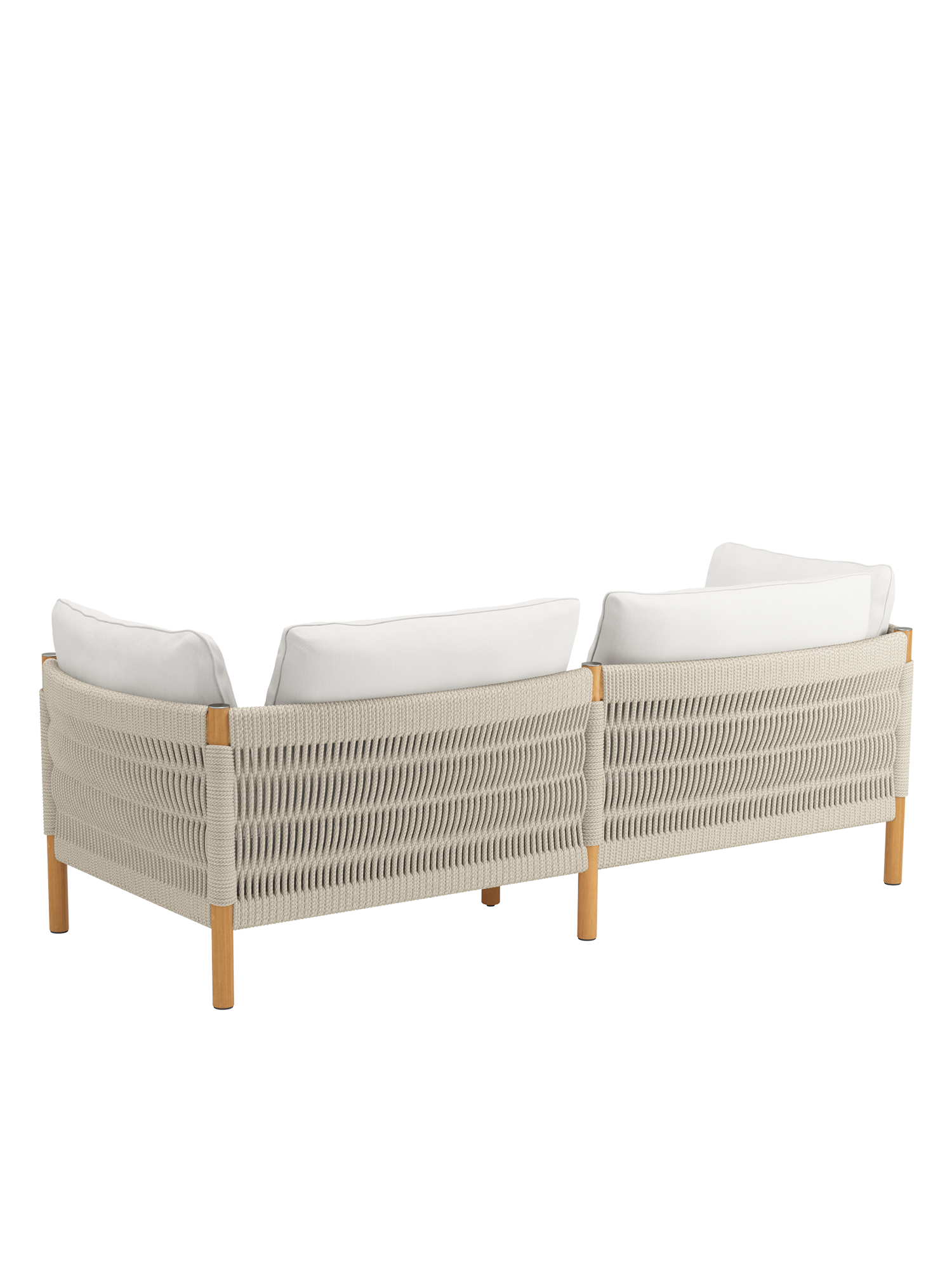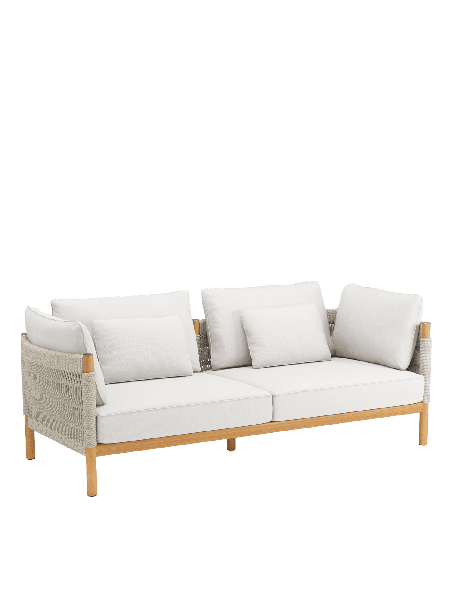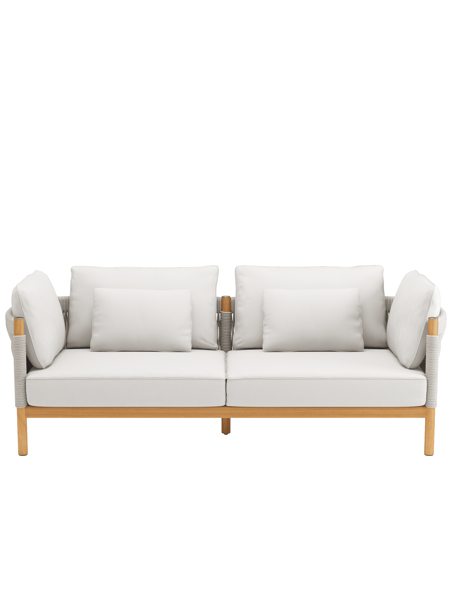 Einladend weiche Polster vollenden den Komfort der Möbel. Zum Lieferumfang des großzügigen Sofas der Serie gehören zwei Zusatzkissen im Dessin "Woven Sand" im Format 50 x 35 cm. Optional erhältliche Zierkissen im Format 50 x 45 cm finden Sie unter "Zubehör" weiter unten auf dieser Seite.