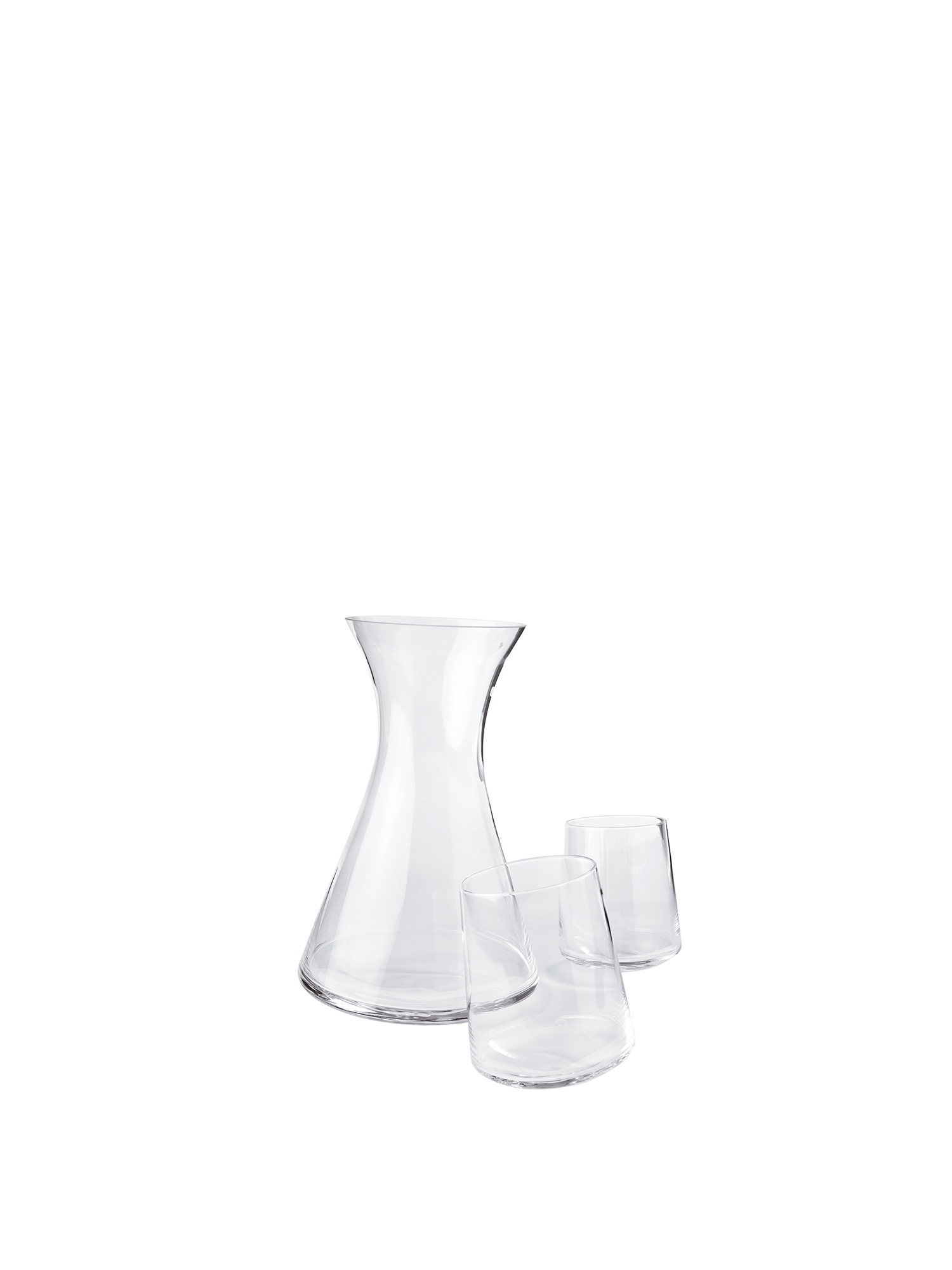 Die unverwechselbaren Claris Gläser und Karaffen kombinieren traditionelle Handwerkskunst mit einem zeitgemäßen Design. Mundgeblasen in einer Mailänder Manufaktur, entstehen die ungewöhnlichen Glasobjekte in aufwendiger Handarbeit. Das hochwertige Kristallglas wirkt schwerelos, der gewölbte Boden verleiht der Kollektion eine innere Dynamik, die sie bei jeder Berührung sanft in Bewegung versetzt, und ihr gleichzeitig Halt gibt. Betont schlichte Gläser mit und ohne Stiel sowie ausdrucksvolle Karaffen in zwei Größen lassen sich miteinander kombinieren oder vollenden auch unabhängig voneinander jedes Tafelbild.