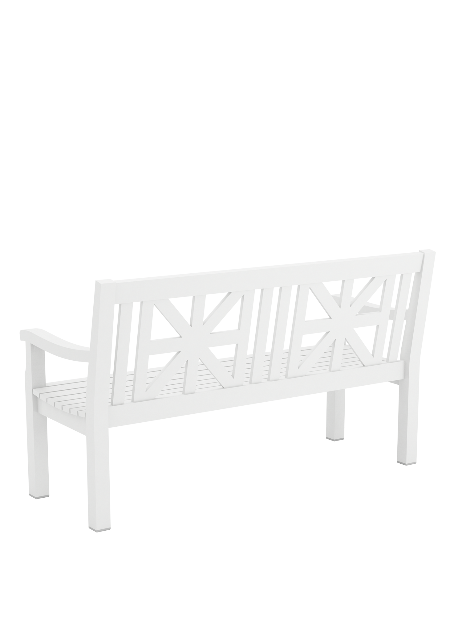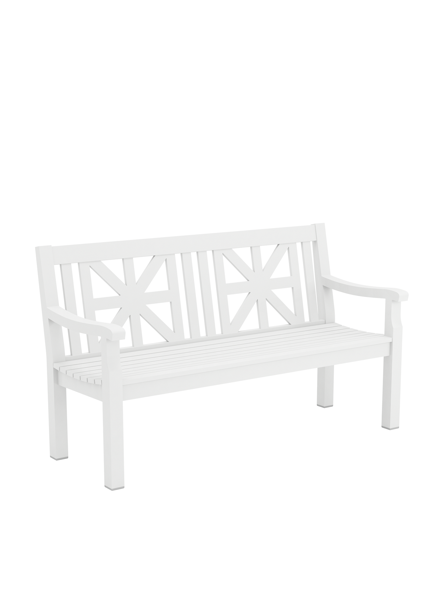 Die weiße Aluminiumbank verbreitet überall ländliche Idylle. Ihre handwerkliche Anmutung lässt an traditionelle Holzmöbel denken, jedoch ist sie ungleich pflegeleichter. Sternmuster, geschwungene Profile und gerundete Armlehnen werden von Hand verschweißt, geschliffen und pulverbeschichtet. Und machen jede von ihnen zu einem Unikat.