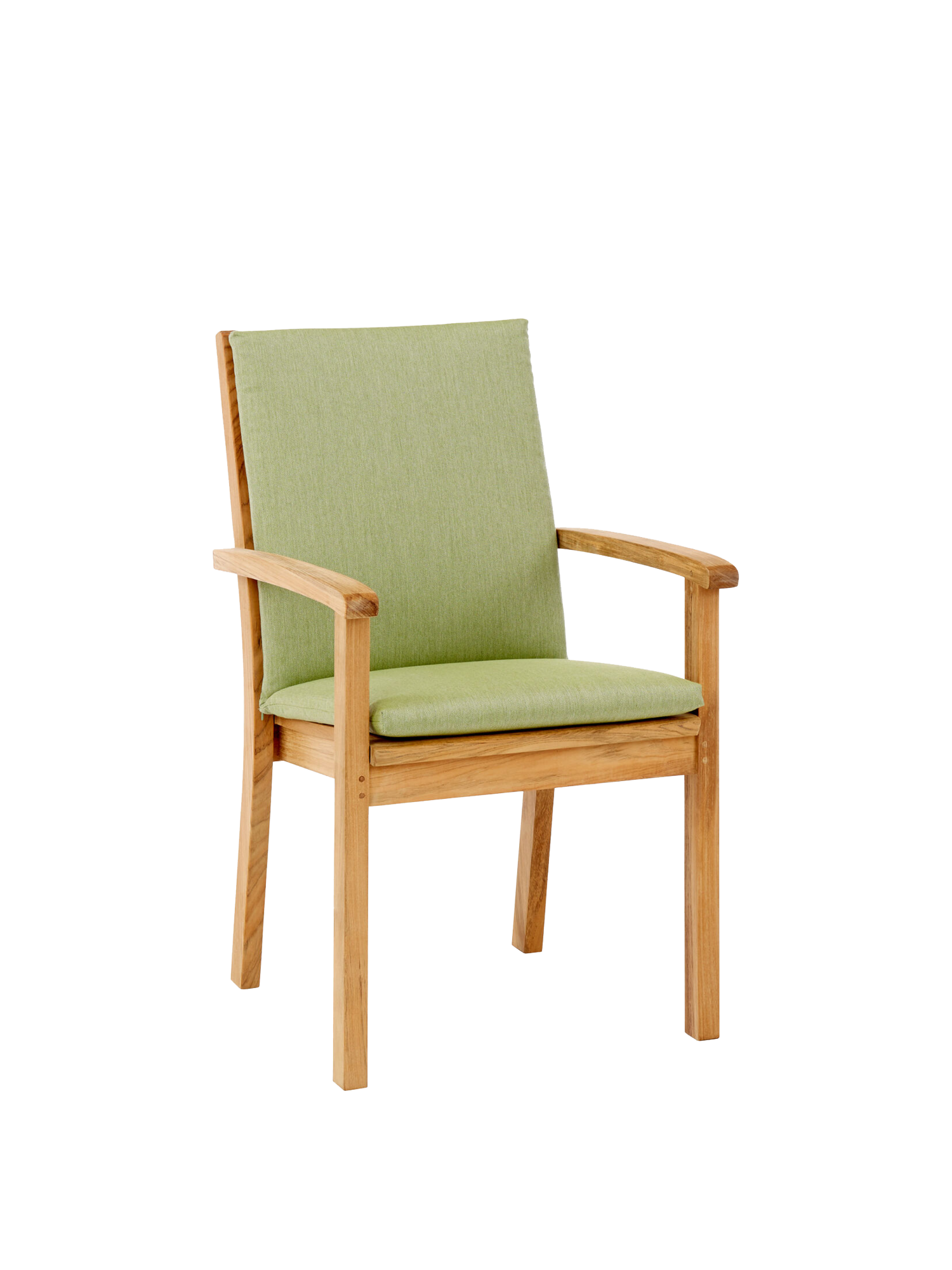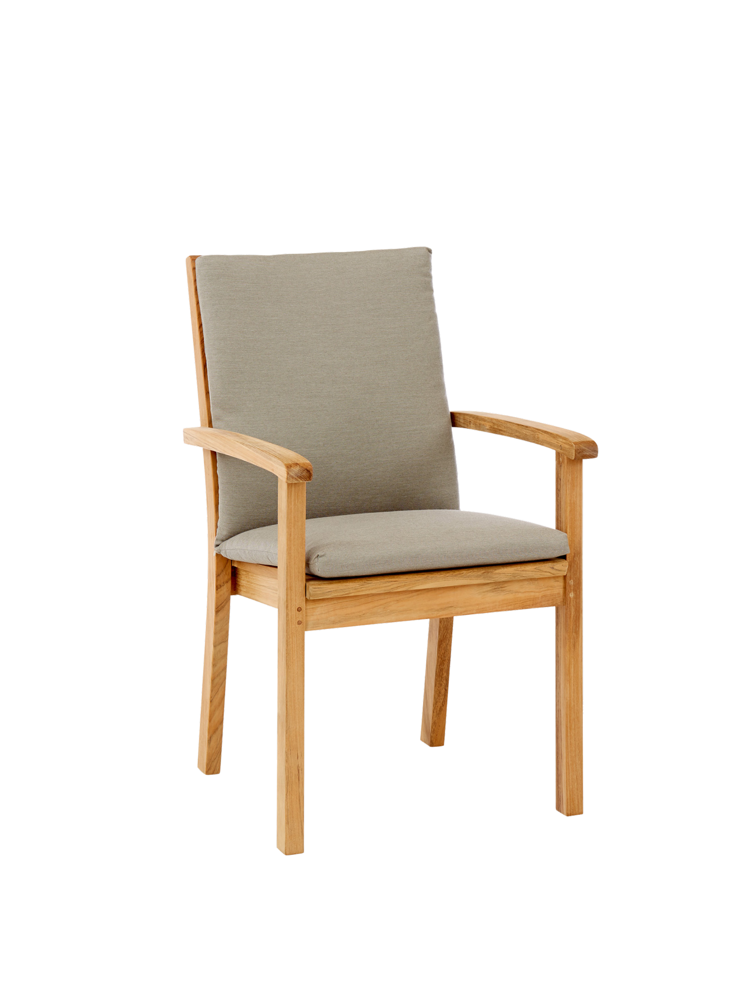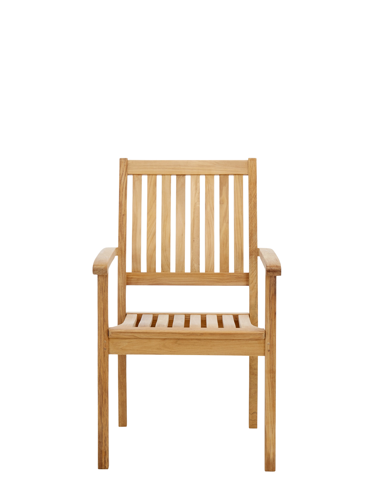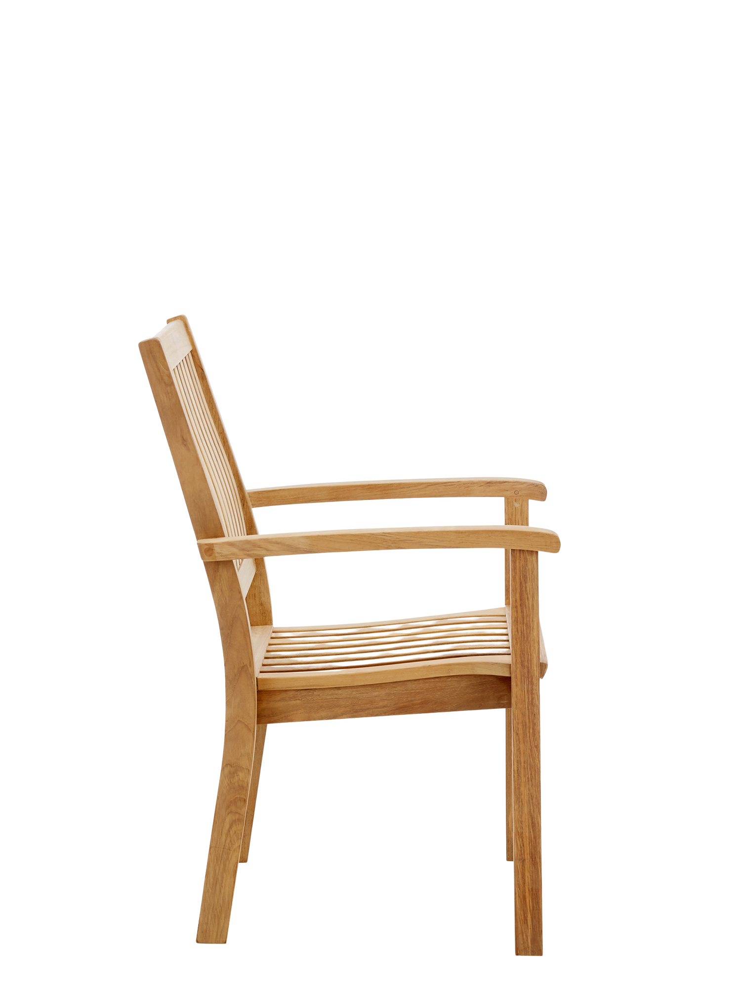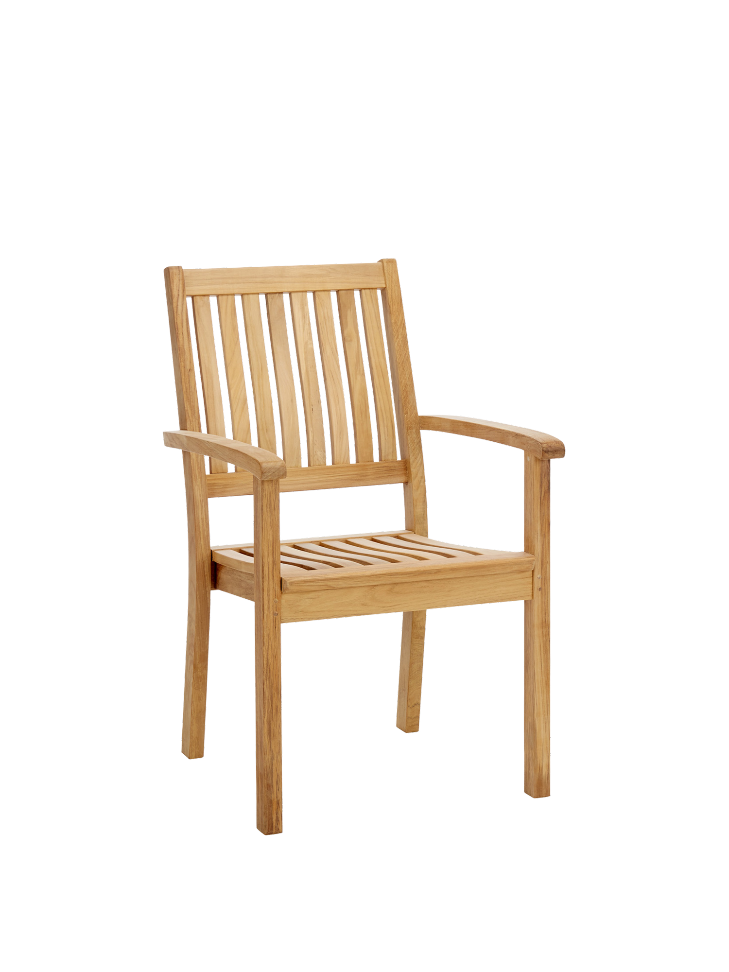 Der elegante Armlehnstuhl aus massivem Teak kann getrost jedem Wetter ausgesetzt werden. Seine Sitzfläche sowie die hohe Rückenlehne sind ergonomisch geformt und sorgen für eine entspannte Haltung. Die Armlehnen mit ihren gerundeten Knäufen schmeicheln den Händen. Der Armlehnstuhl lässt sich bequem und platzsparend stapeln.