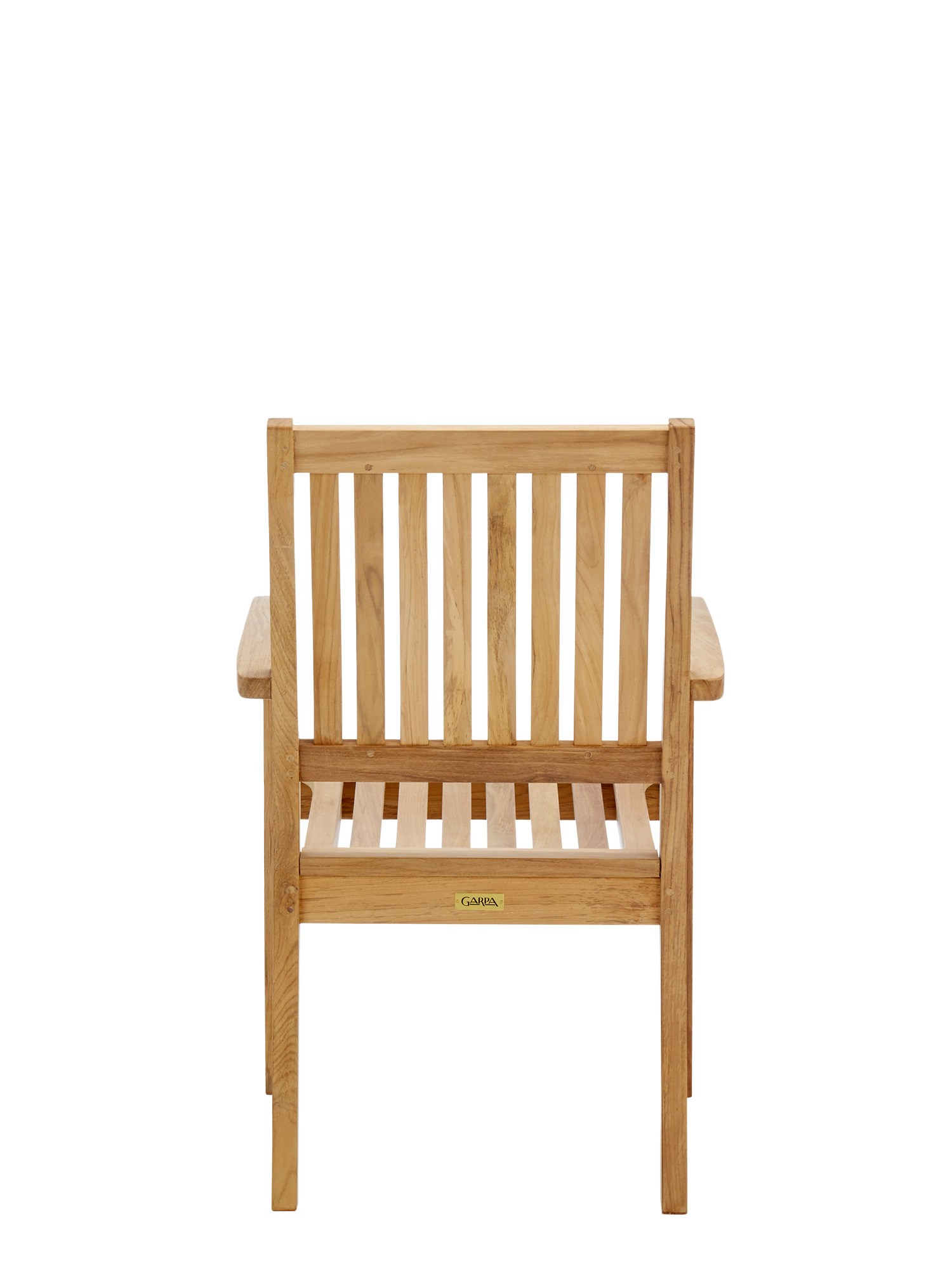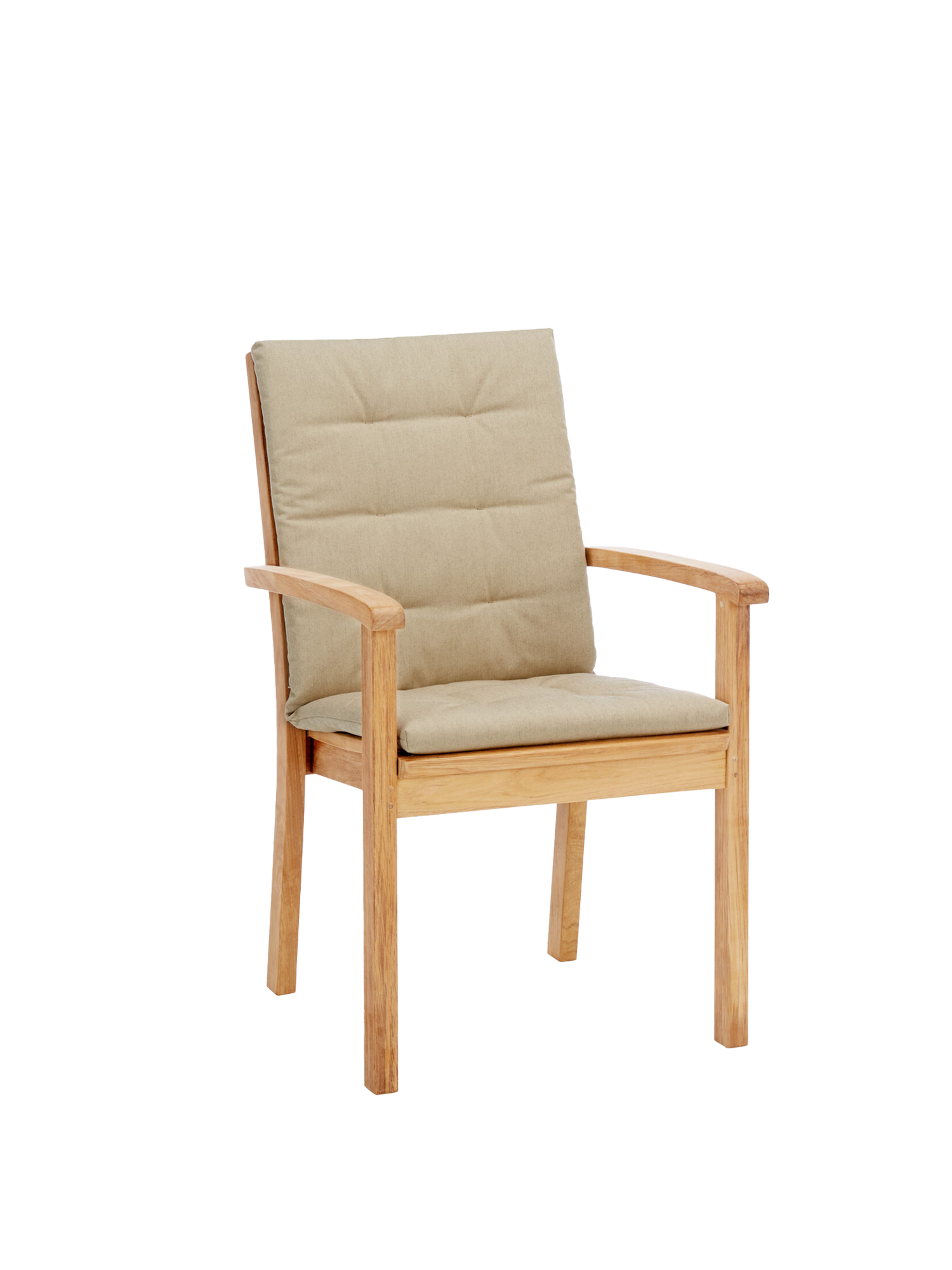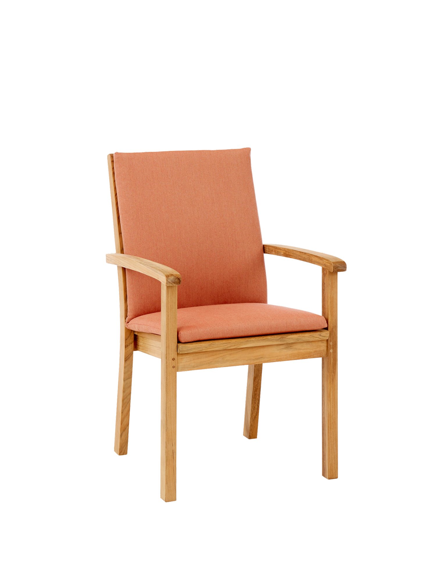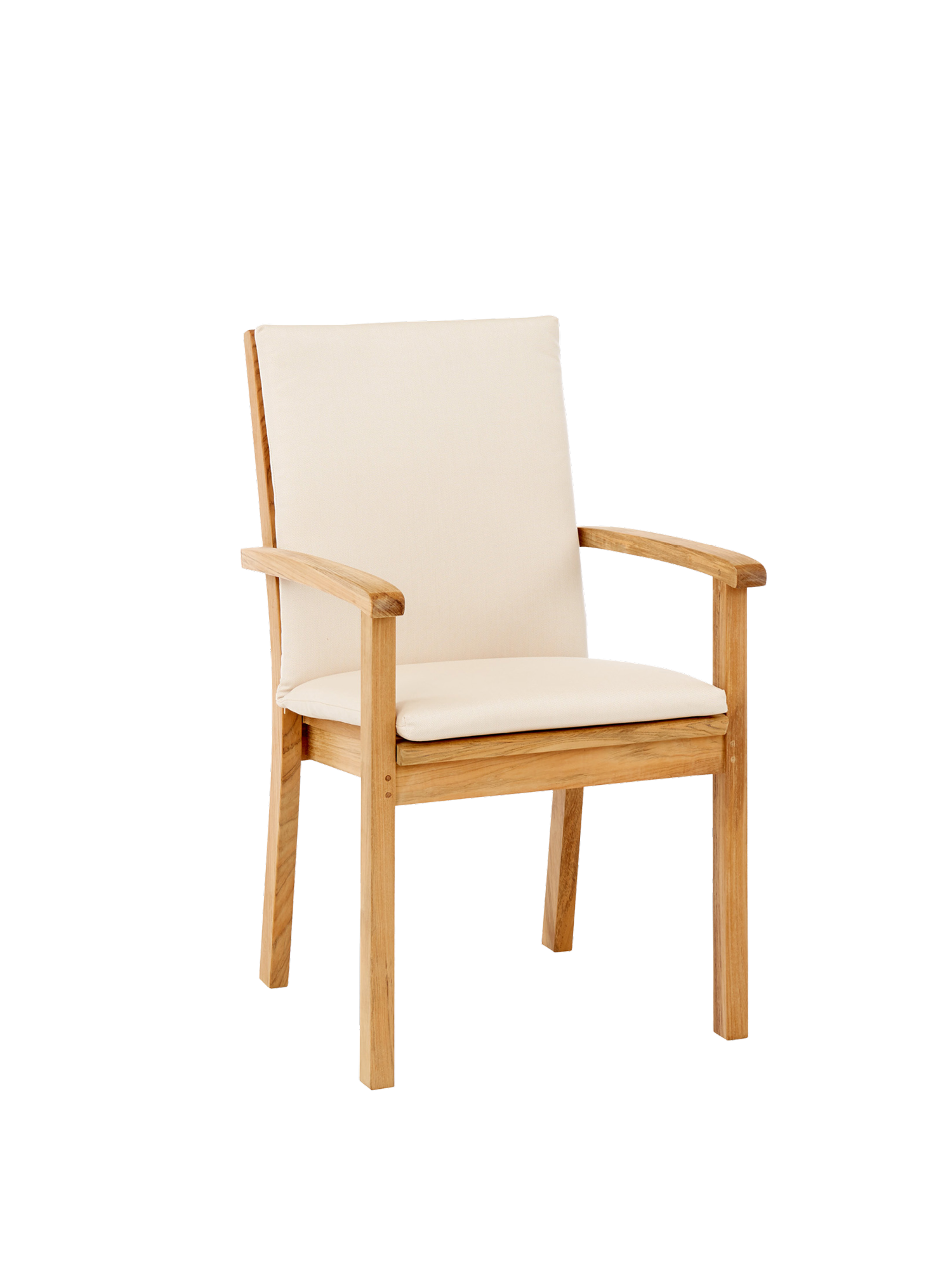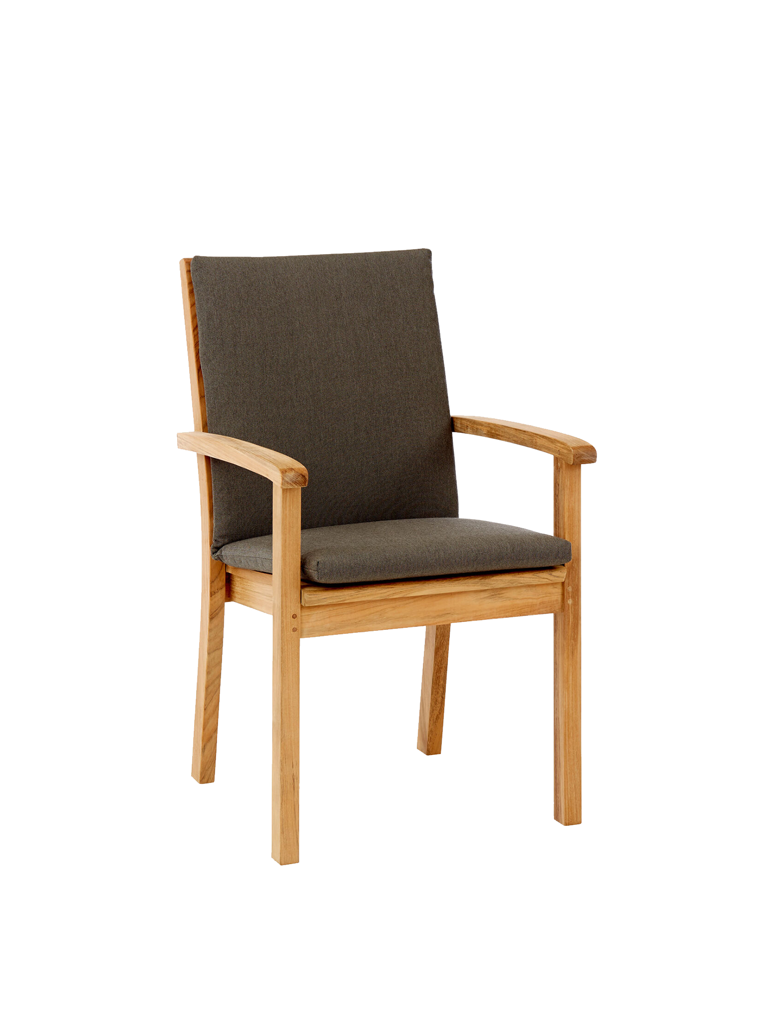 Der elegante Armlehnstuhl aus massivem Teak kann getrost jedem Wetter ausgesetzt werden. Seine Sitzfläche sowie die hohe Rückenlehne sind ergonomisch geformt und sorgen für eine entspannte Haltung. Die Armlehnen mit ihren gerundeten Knäufen schmeicheln den Händen. Der Armlehnstuhl lässt sich bequem und platzsparend stapeln.
