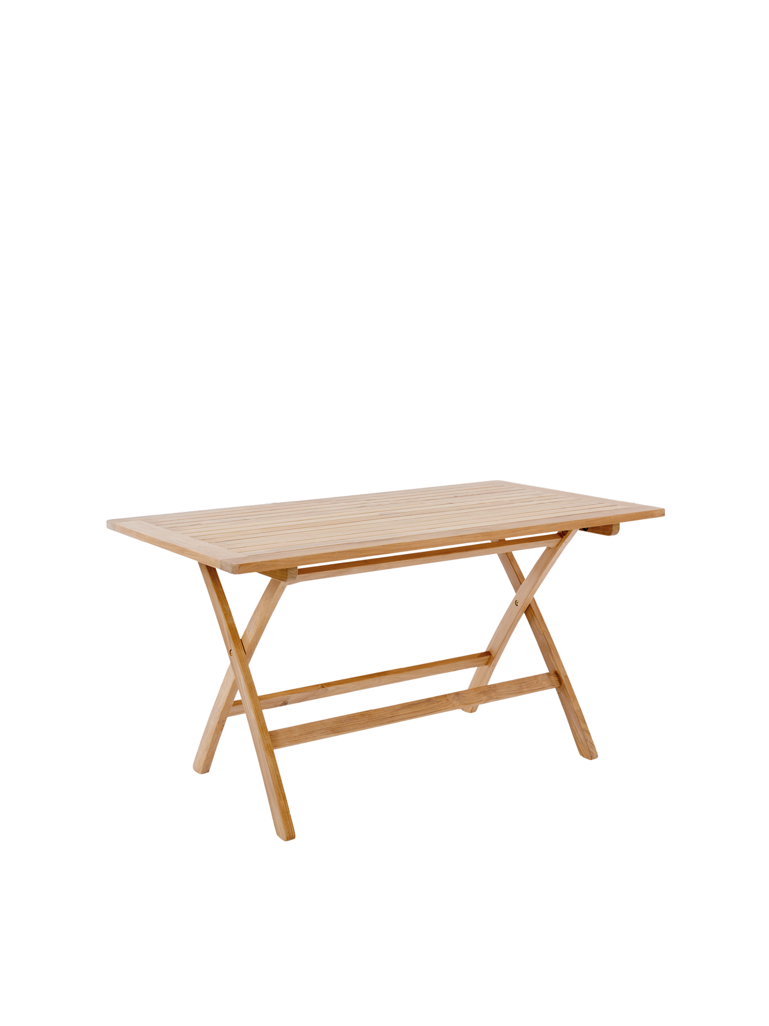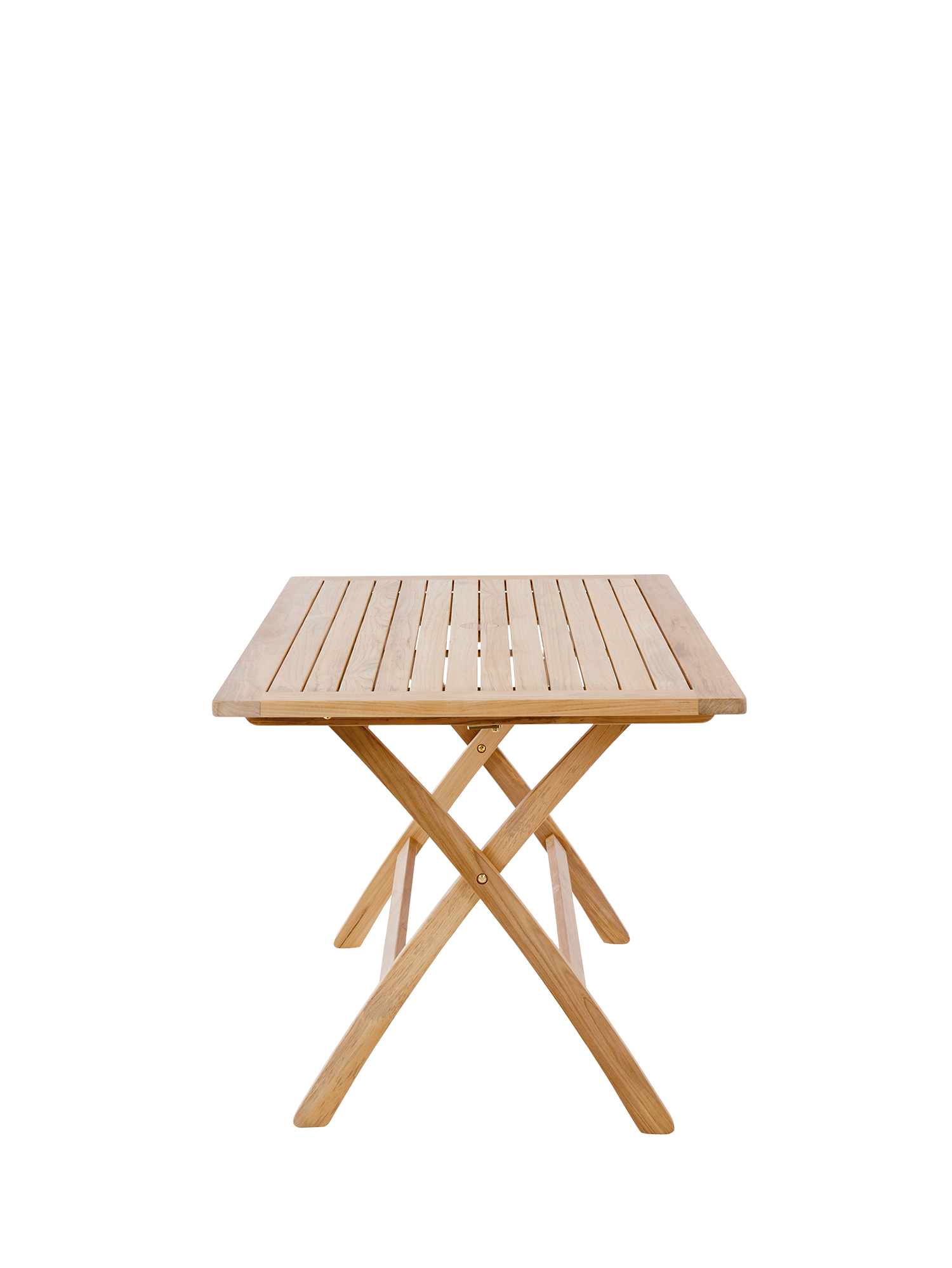 Der Folding Table aus hochwertigem Teakholz ist der ideale Tisch für gemeinsame Stunden in mittelgroßen Runden. An der rechteckigen Platte wird gespeist, getrunken und gespielt – mit bis zu sechs Personen.