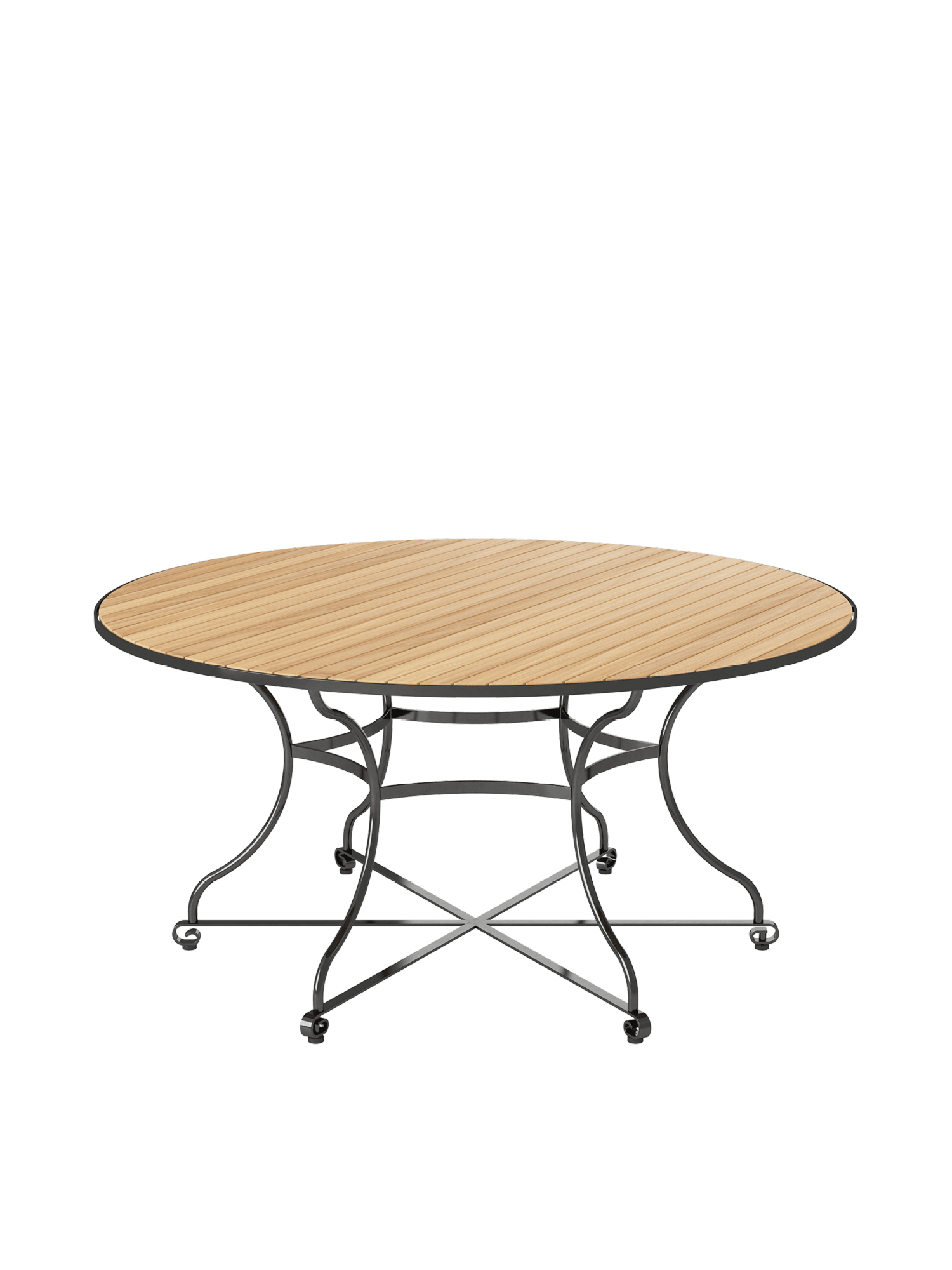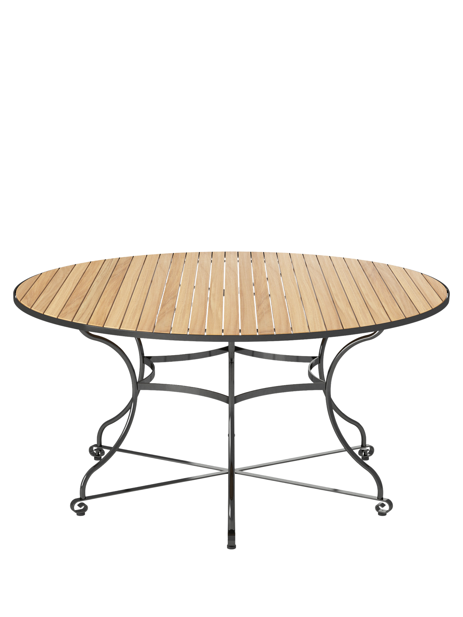 Präzise bearbeitete Leisten aus massivem Plantagenteak prägen die edle Anmutung der klassischen Gartentische der Fontenay Kollektion in verschiedenen Größen.