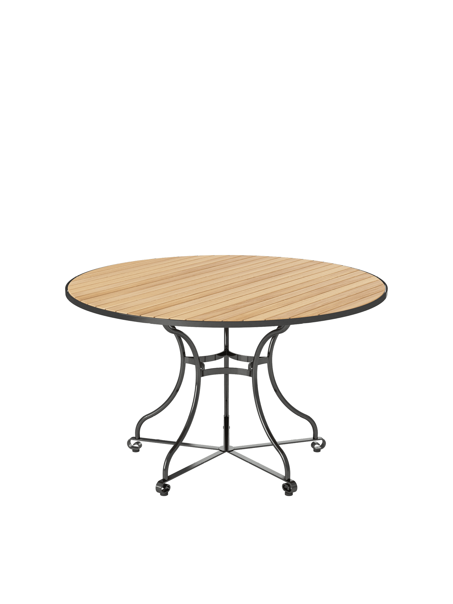 Für ein Treffen in großer Runde: Die Fontenay Tische mit einer Oberfläche aus Plantagenteak laden mit selbstverständlicher Eleganz zur Tafel. Das hochwertige Material widersteht problemlos Regen und Sonneneinstrahlung, Temperaturschwankungen und Frost. Im Laufe der Zeit entwickelt das Holz durch Witterungseinflüsse eine natürliche silbergraue Patina. Alle Fontenay Tische haben ein Gestell aus verzinktem, pulverbeschichtetem Stahl, die Tischplatte wird von einem Stahlreif gefasst. Fußgleiter aus abriebfestem Kunststoff gleichen Unebenheiten aus und schützen wertvolle Böden.
