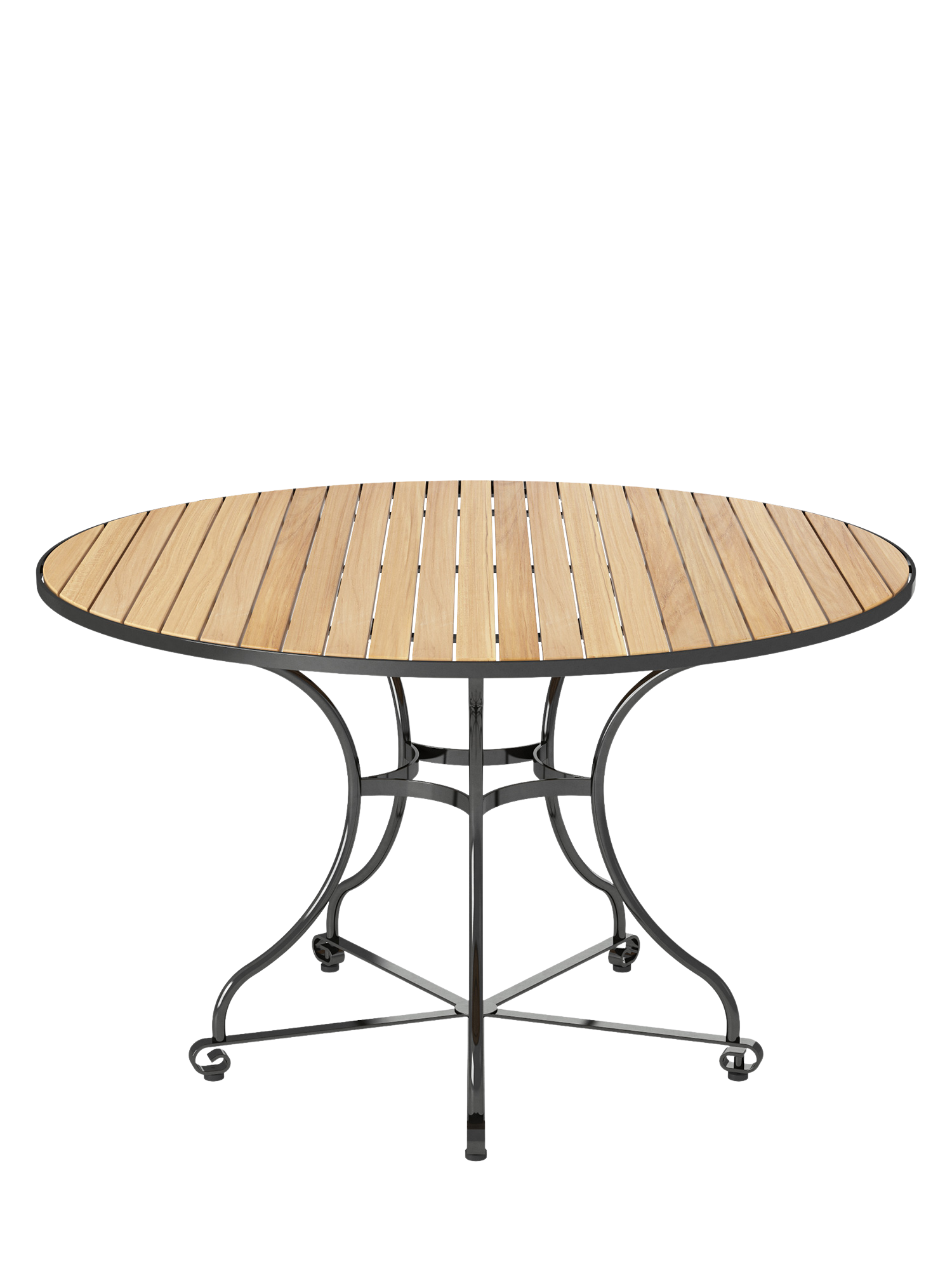 Präzise bearbeitete Leisten aus massivem Plantagenteak prägen die edle Anmutung der klassischen Gartentische der Fontenay Kollektion in verschiedenen Größen.