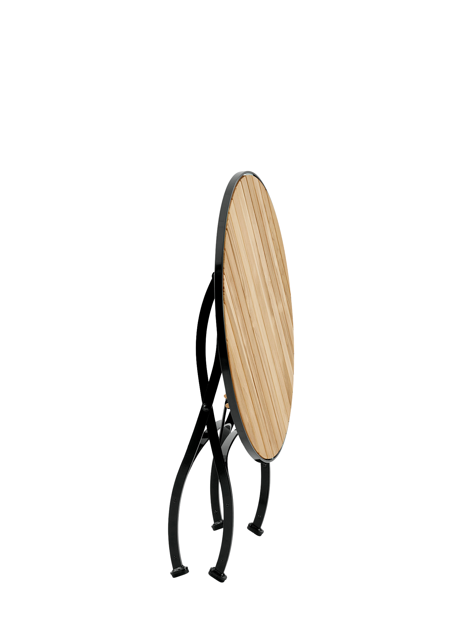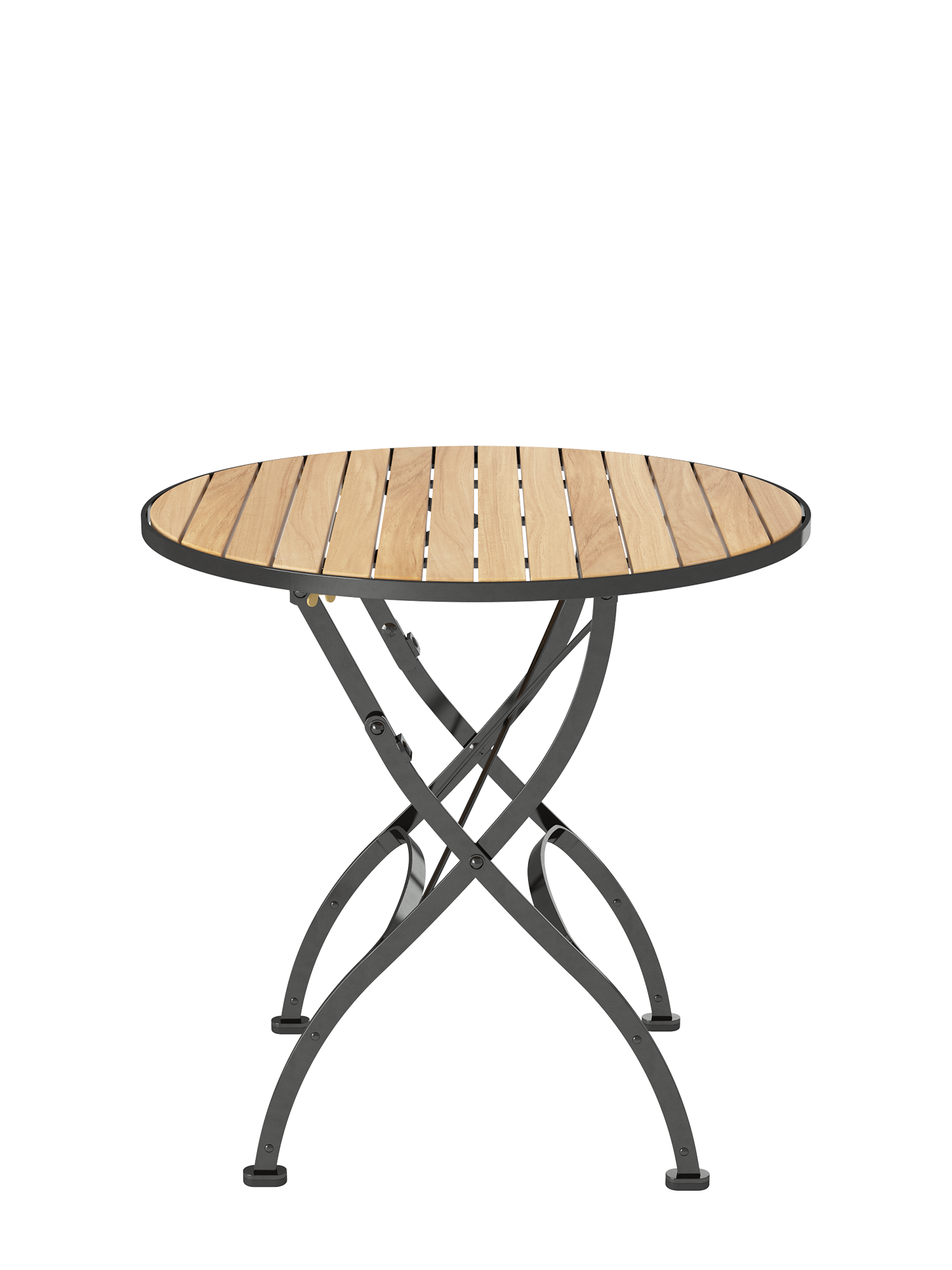 Präzise bearbeitete Leisten aus massivem Plantagenteak prägen die edle Anmutung des klappbaren Gartentisches der Fontenay Kollektion, der sich platzsparend verstauen lässt.