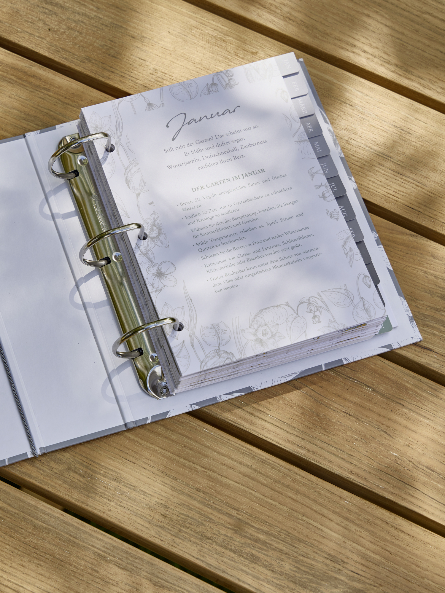 - aufwendig gestaltetes Ringbuch für Gartennotizen