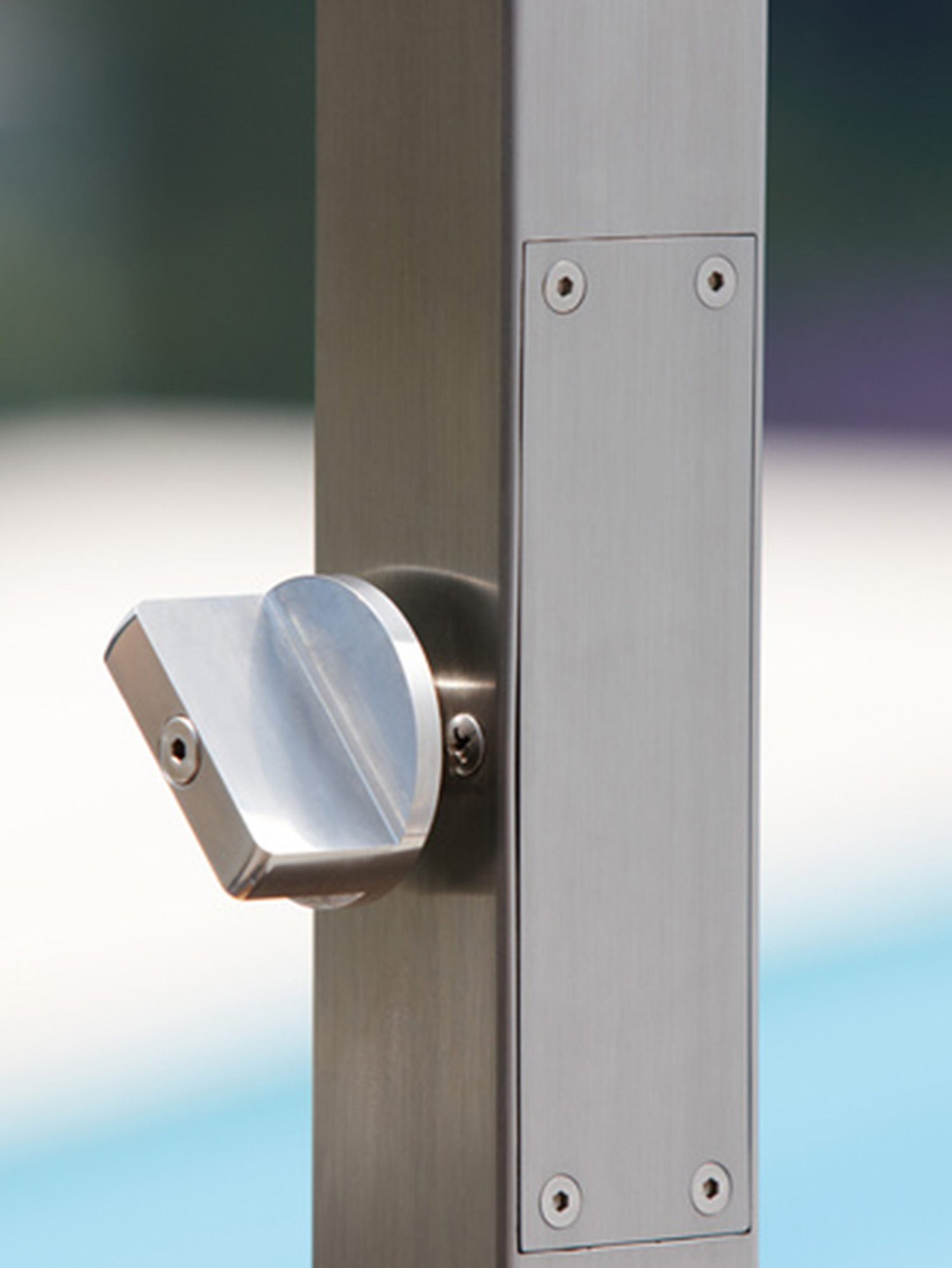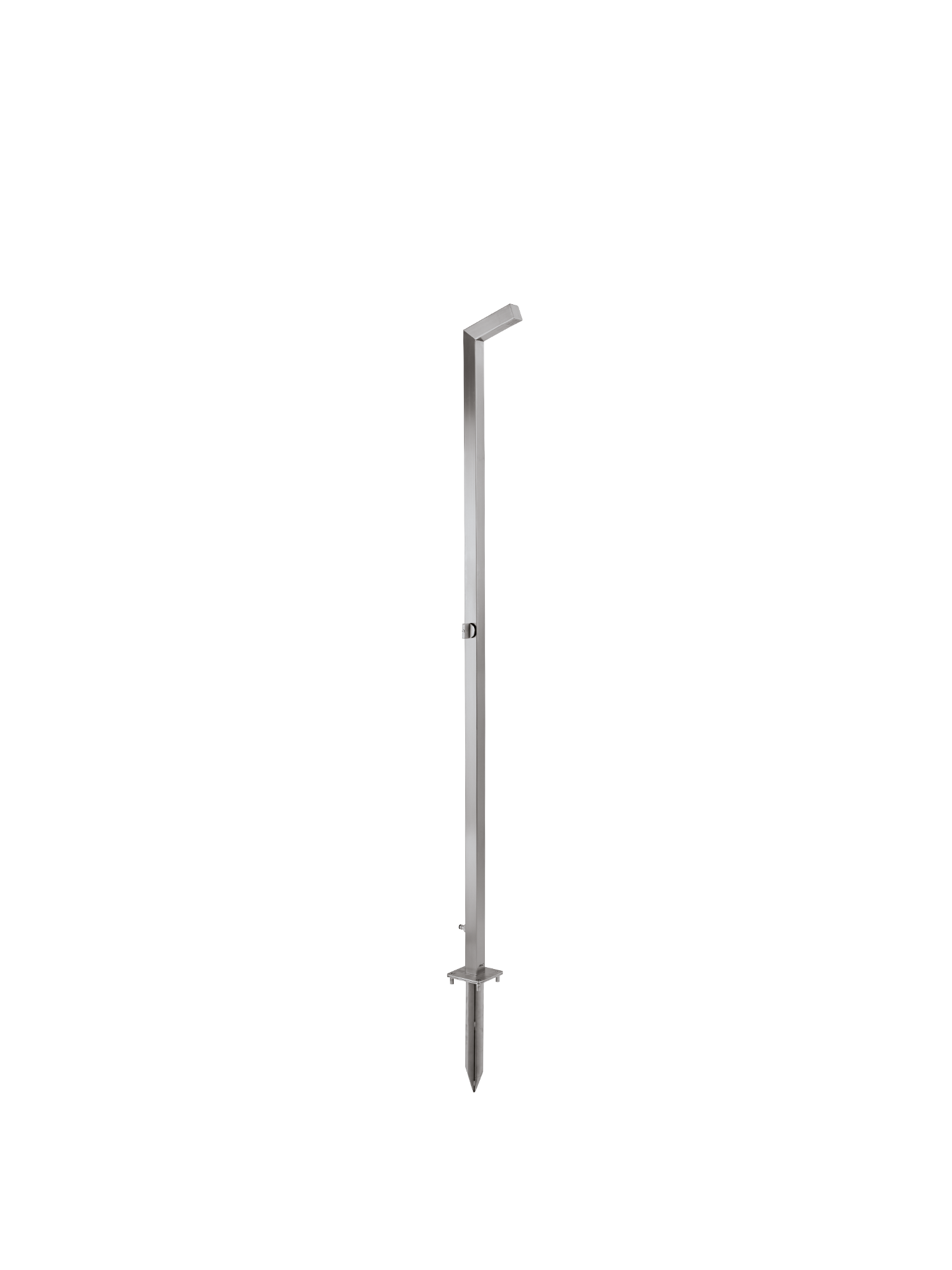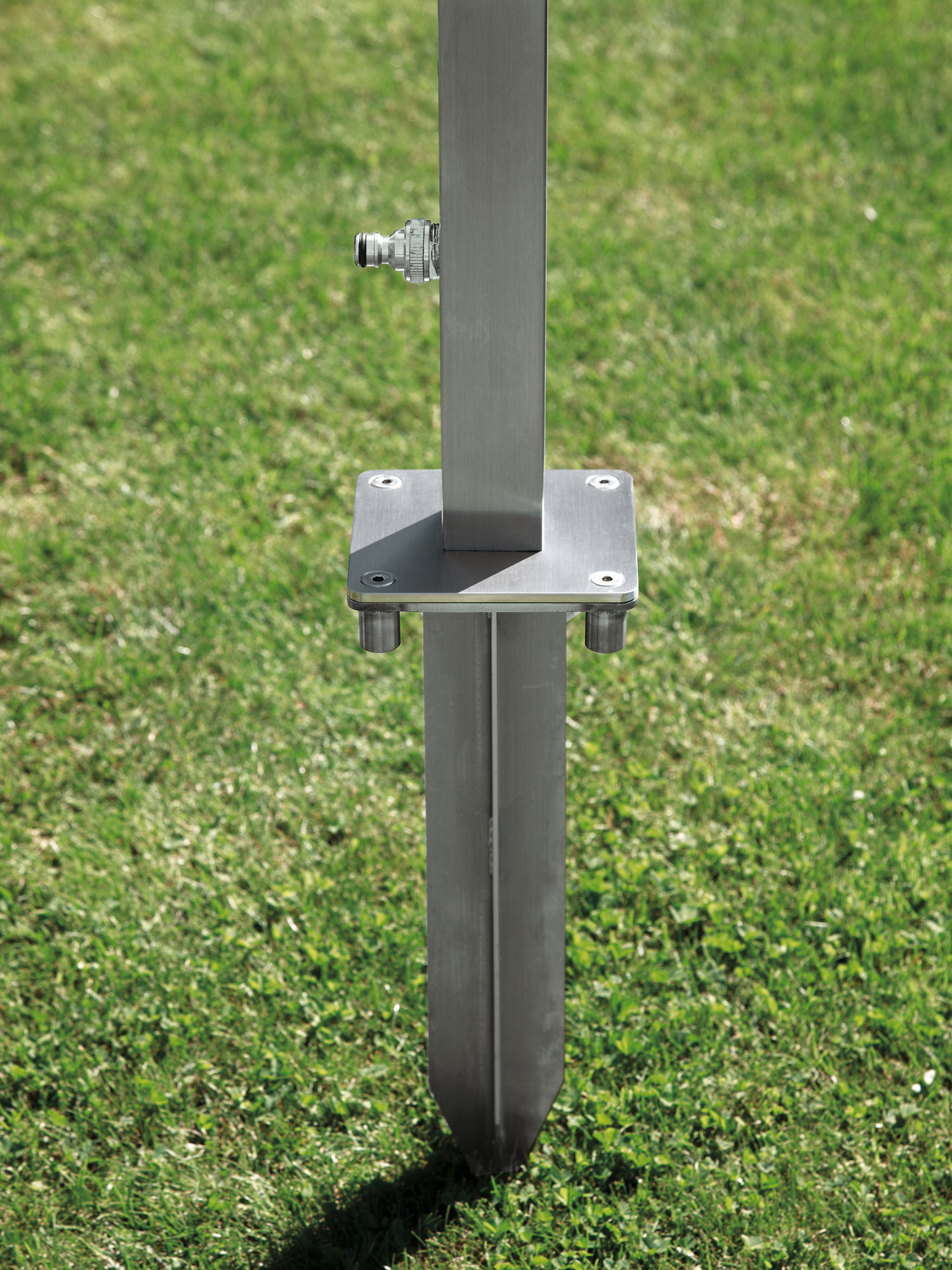 Für die Aufstellung der Dusche auf weicheren Untergründen empfehlen wir die Verwendung des Erdspießes (Höhe 40 cm), der in den Boden einbetoniert wird.