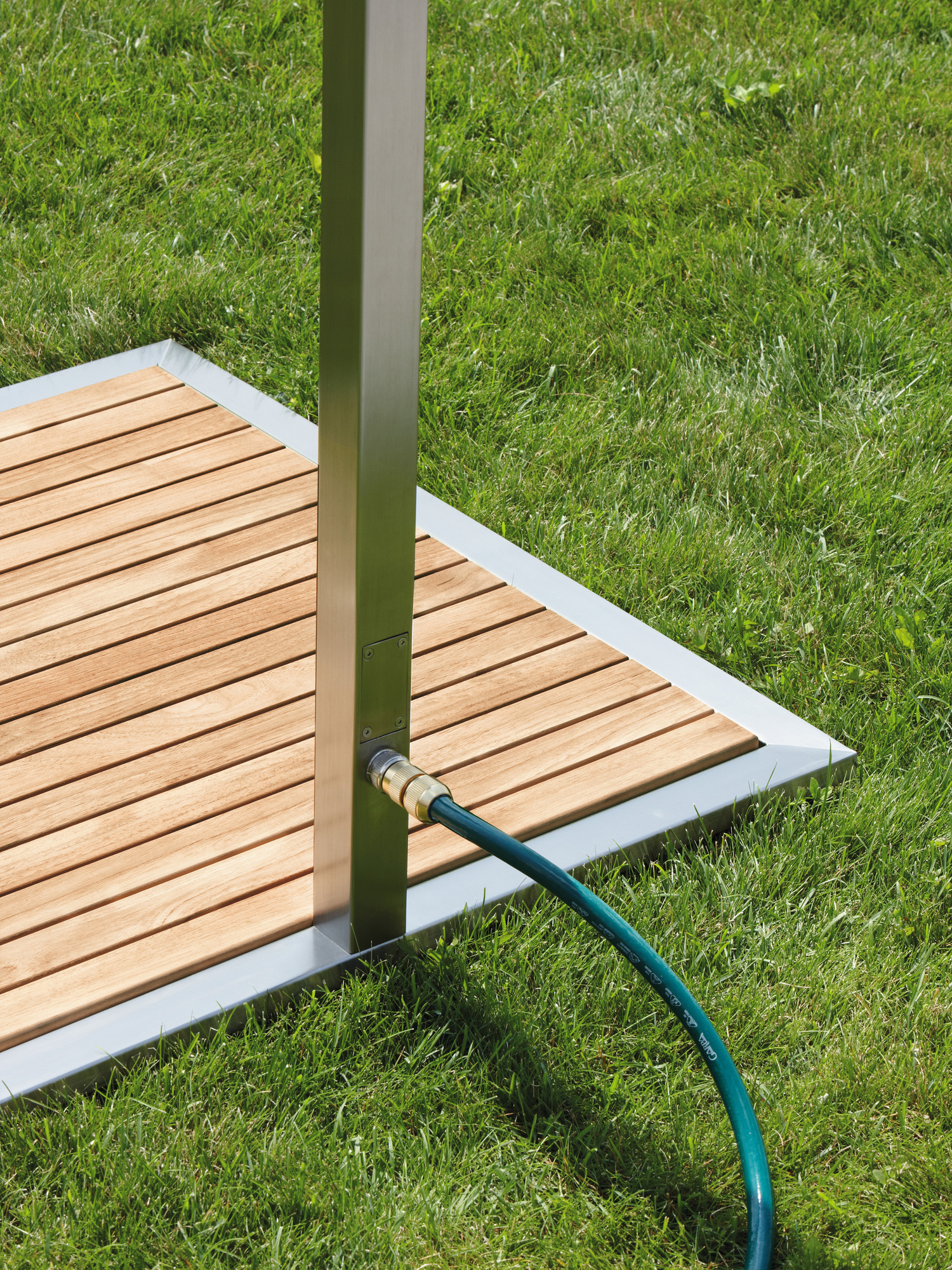 Gartendusche Edelstahl mit Teakbodenplatte