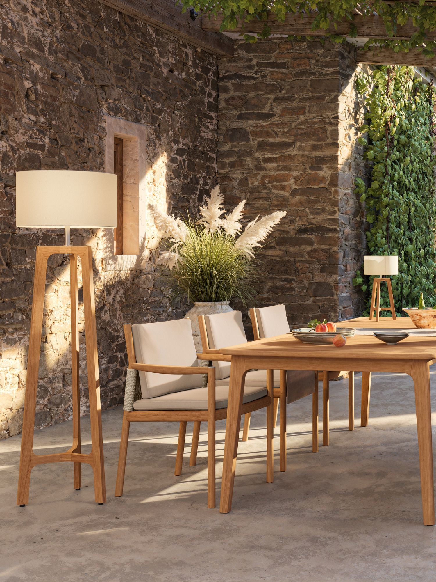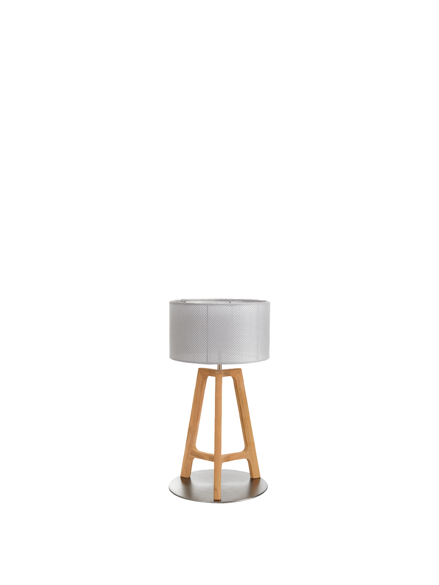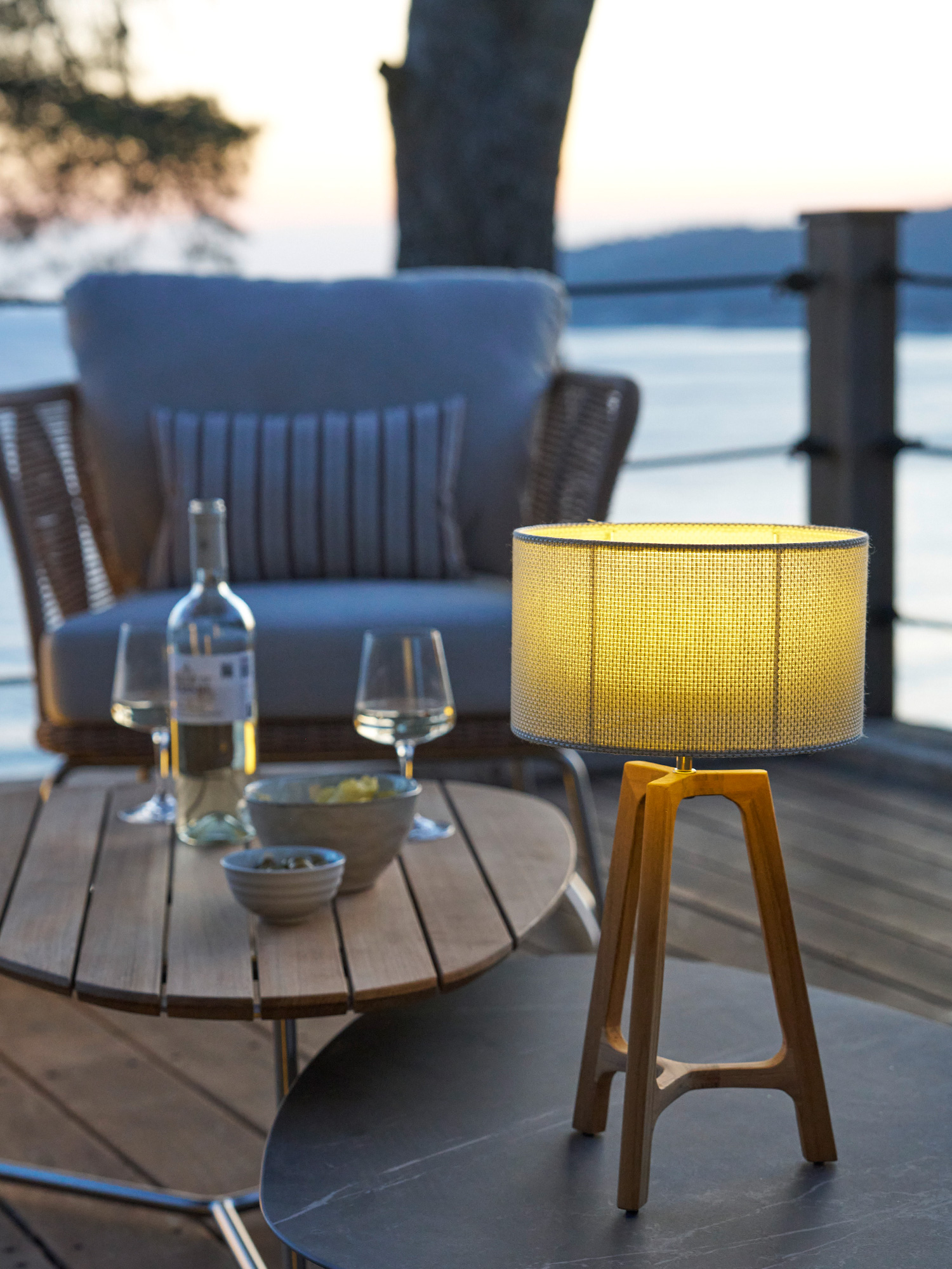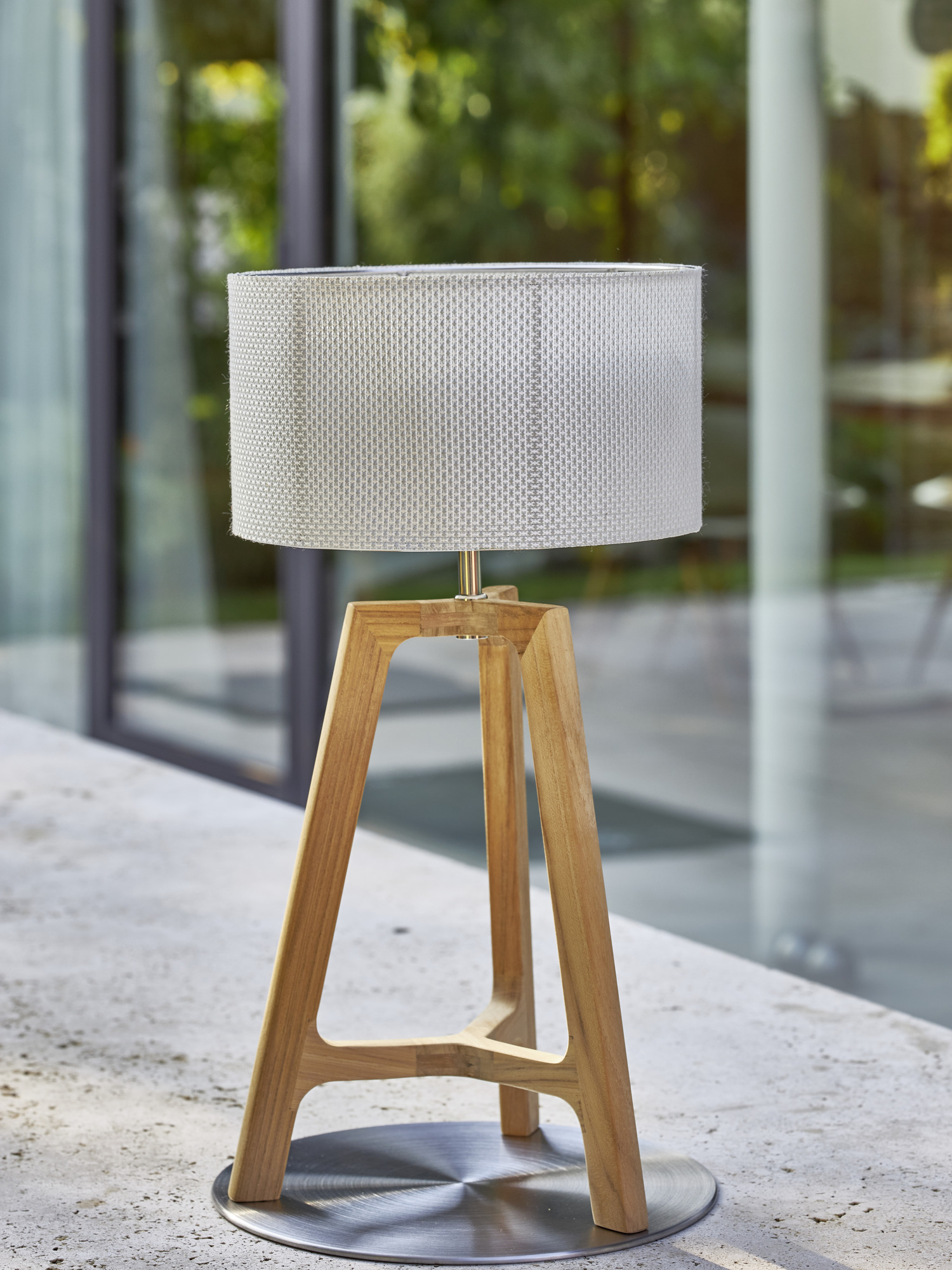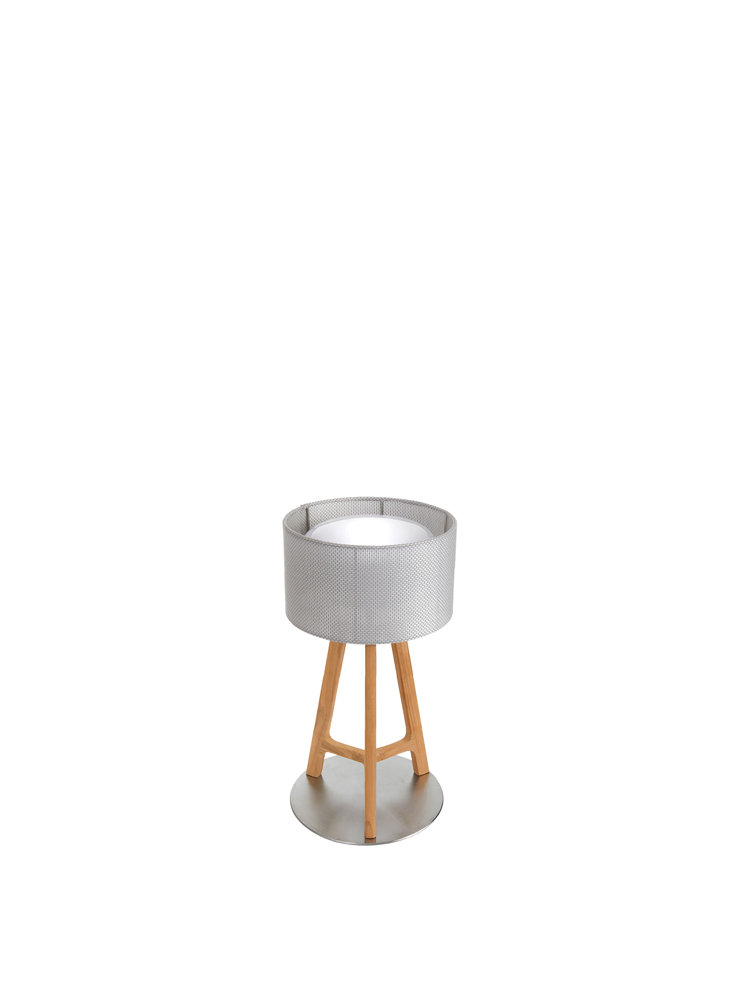 Die dreibeinige Solar-Tischleuchte hat in jeder Gesellschaft einen guten Stand. Mit sanftem Licht erhellt sie die abendliche Szenerie. Der zartgraue, wetterbeständige Schirm fügt sich in jedes Ambiente ein. Das Solarpaneel ist dezent dahinter verborgen. Zum Aufladen kann die Leuchte auch an eine Steckdose angeschlossen werden. Bei Bedarf gibt ein zusätzlicher Edelstahlteller noch mehr Stabilität.