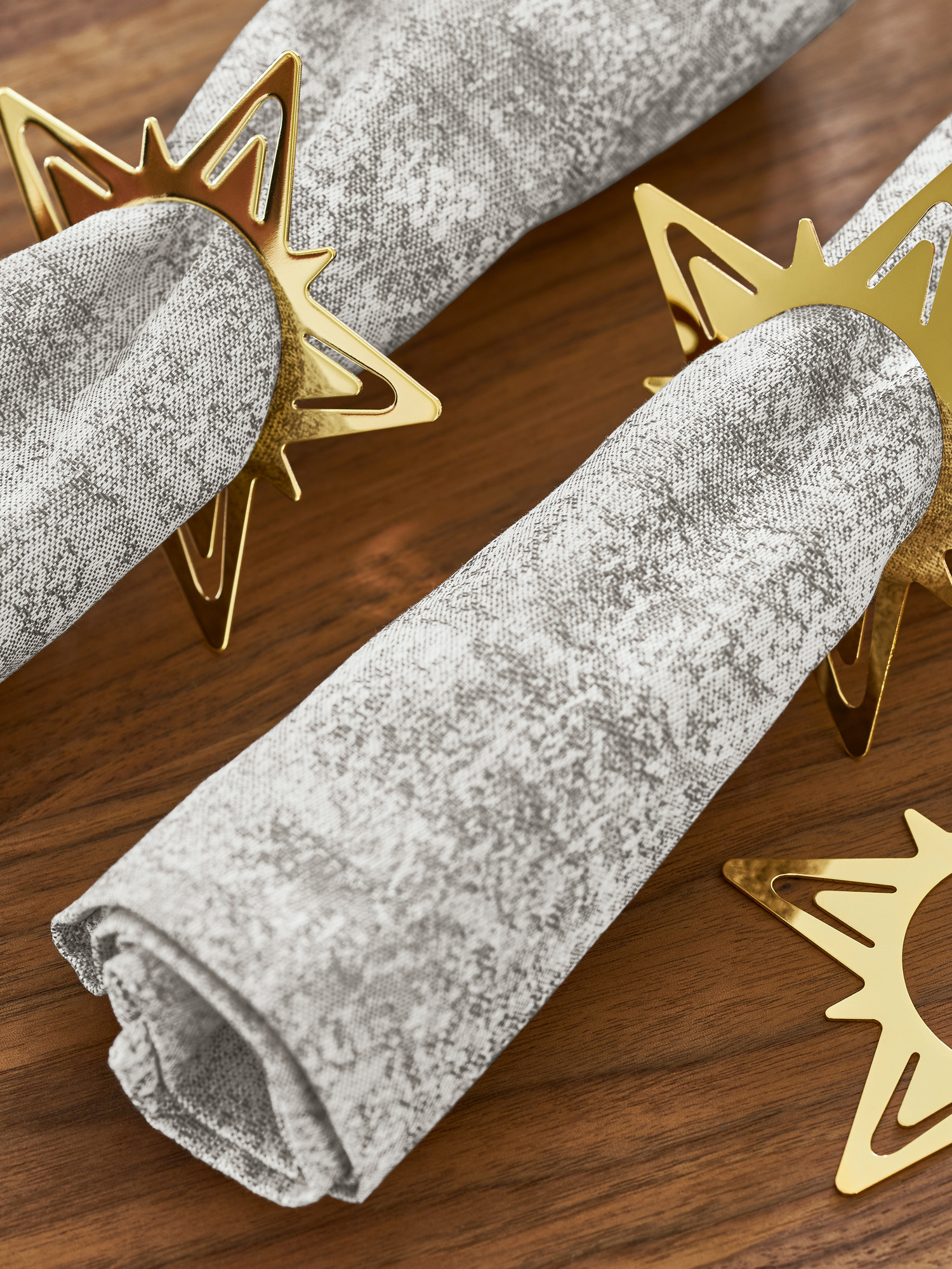 Das zurückhaltend-elegante Muster der aufwendig aus edlem Baumwoll-Jacquard hergestellten Servietten changiert in festlichen Grautönen und Silbernuancen.