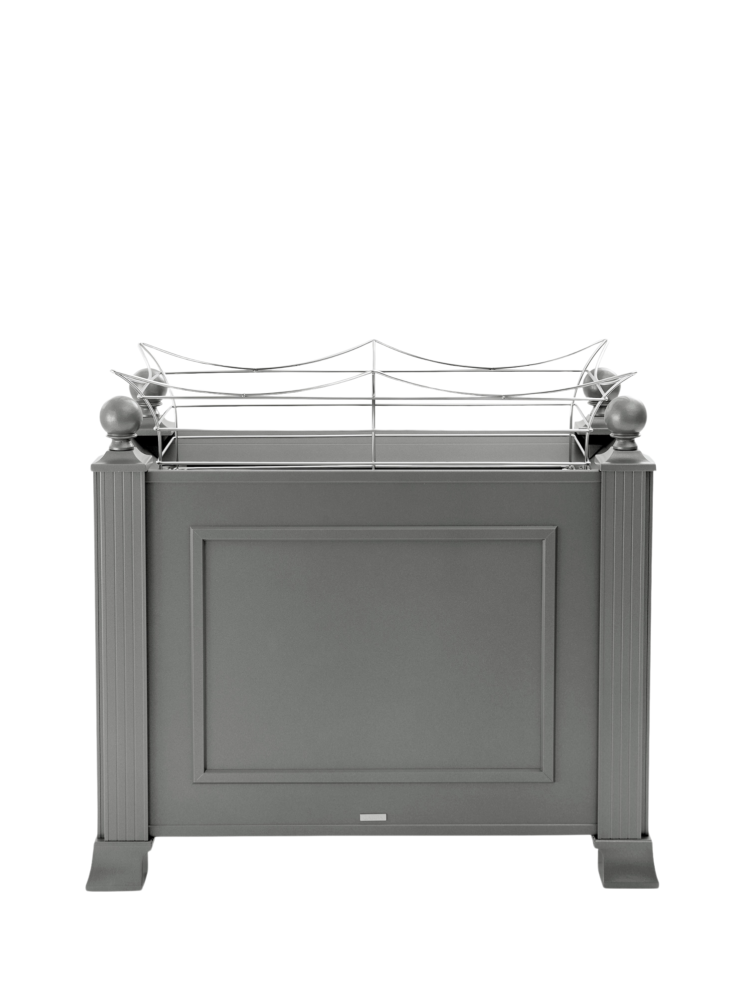 Das niedrige Rankgitter aus elektropoliertem Rundedelstahl gibt breitwüchsig aufstrebenden Pflanzen Halt und Stabilität. Sein sanft geschwungenes Design fügt sich dezent in die Gestaltung ein. Das Gitter wird von innen an den vier Ecken der Kübel befestigt.