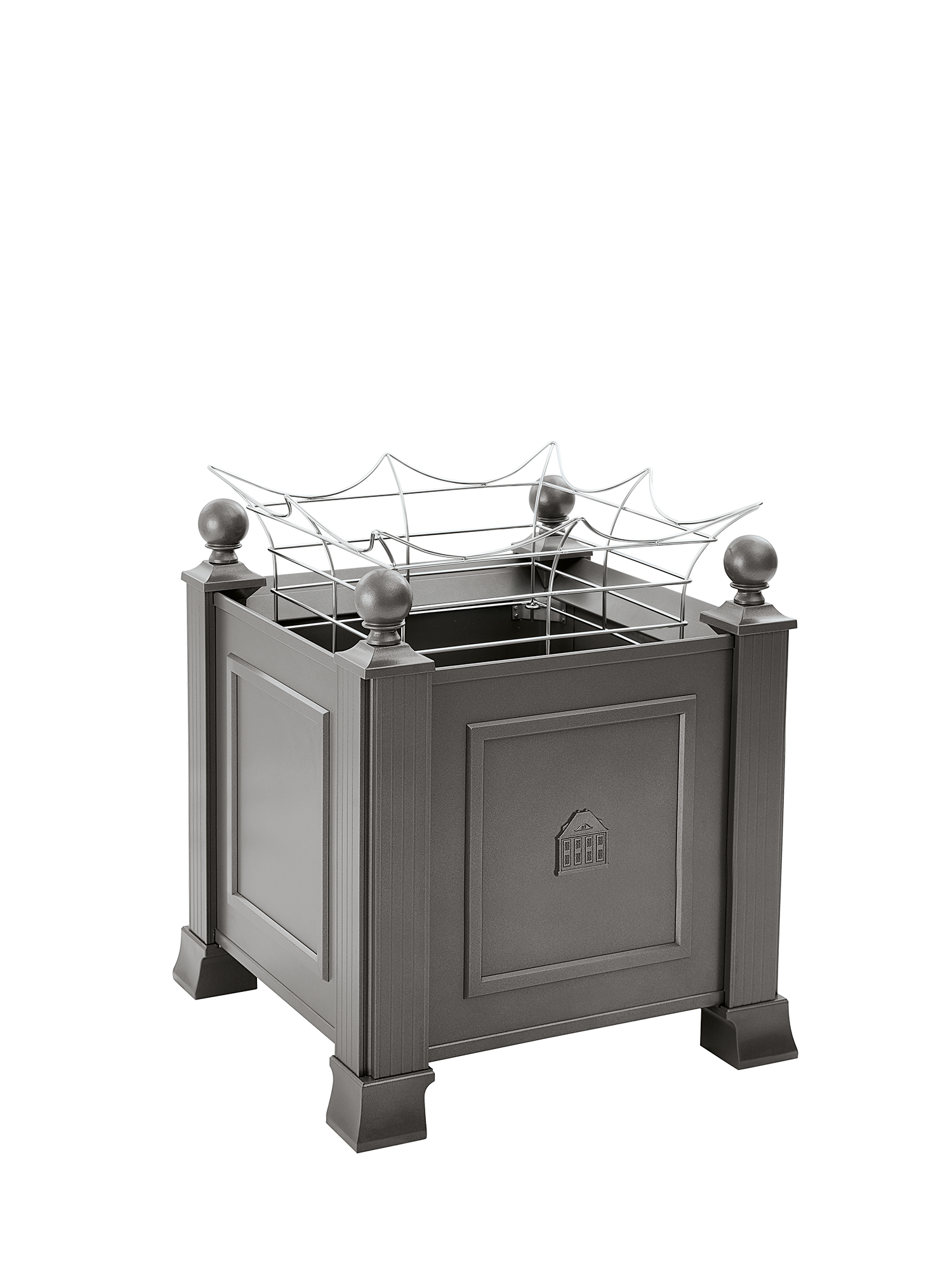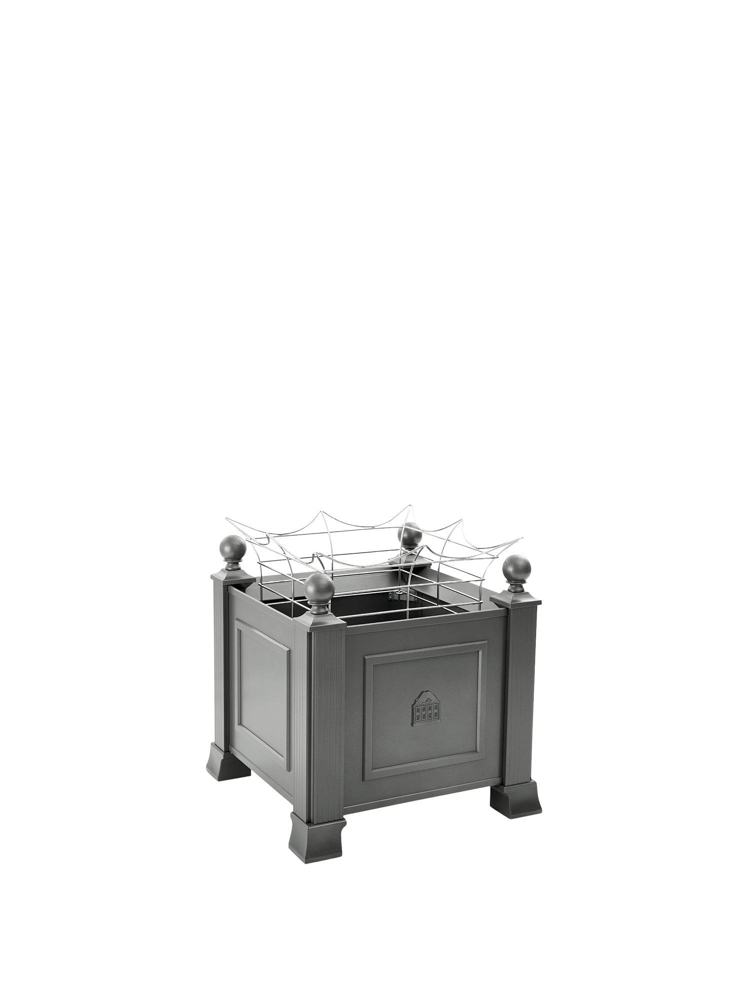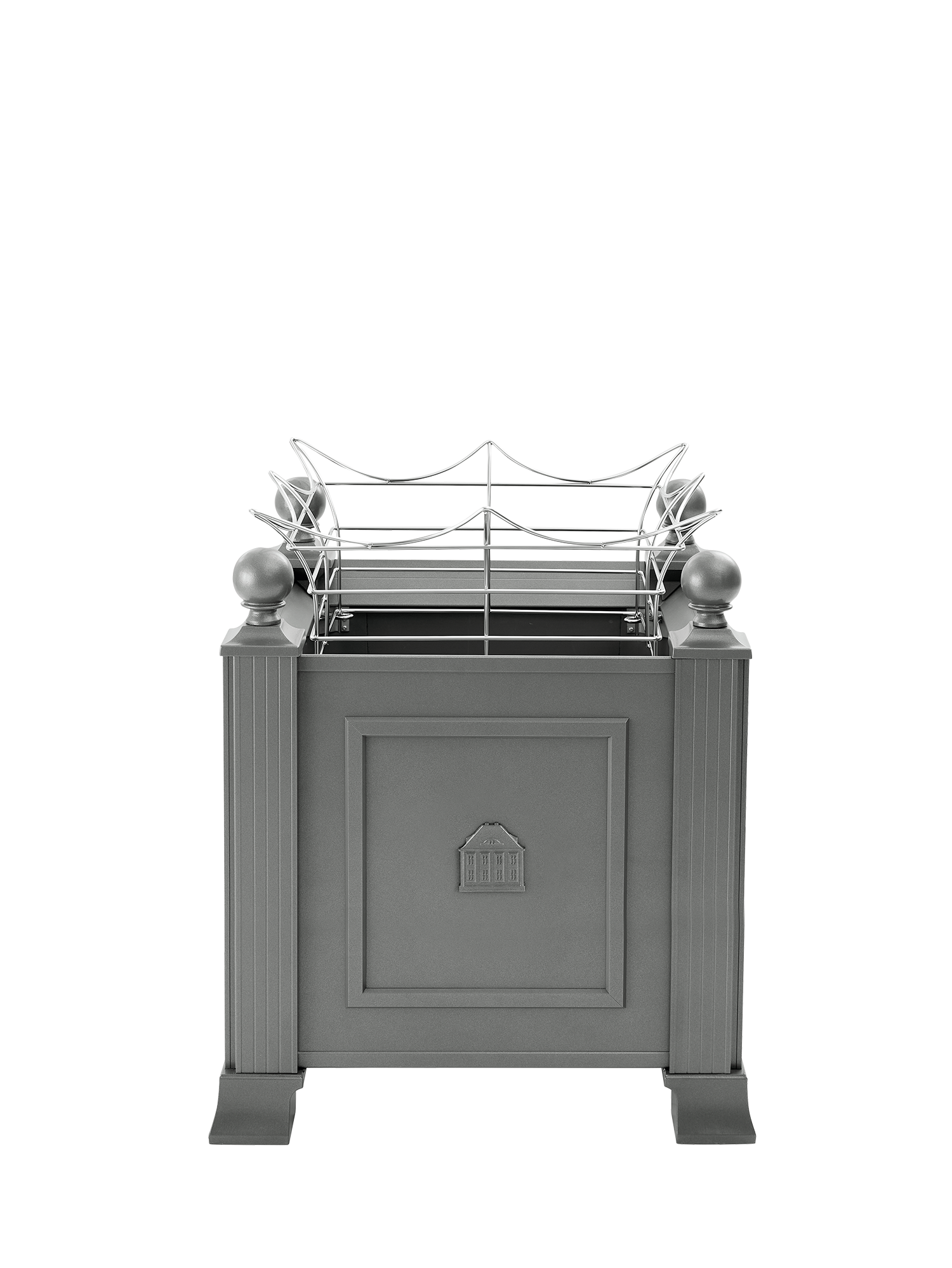 Das niedrige Rankgitter aus elektropoliertem Rundedelstahl gibt breitwüchsig aufstrebenden Pflanzen Halt und Stabilität. Sein sanft geschwungenes Design fügt sich dezent in die Gestaltung ein. Das Rankgitter wird von innen an den vier Ecken der Kübel befestigt.