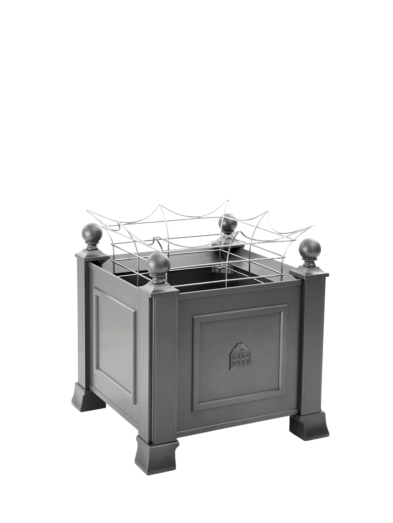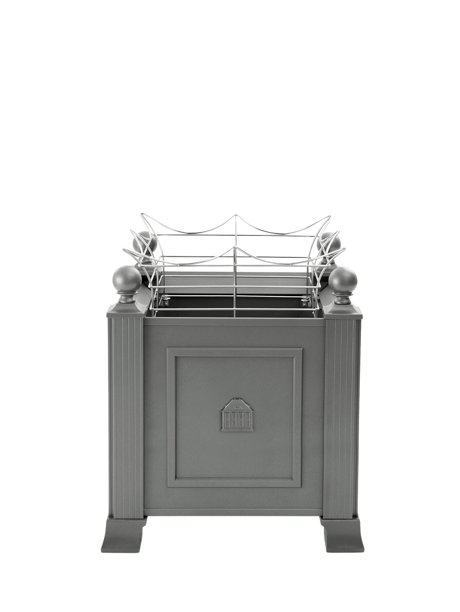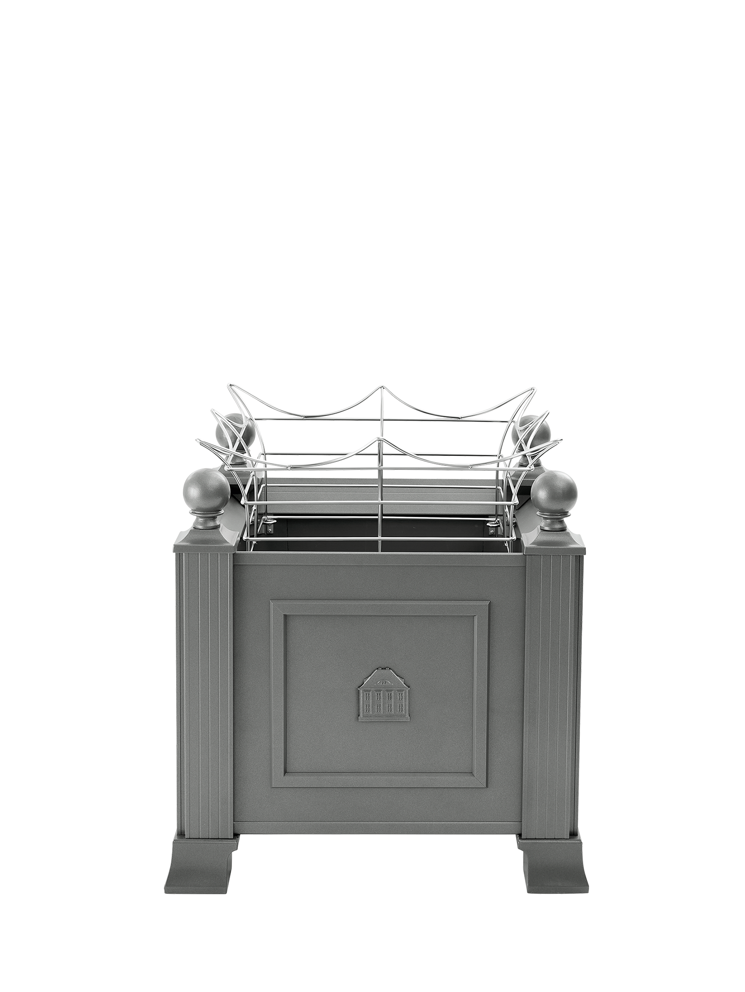 Das niedrige Rankgitter aus elektropoliertem Rundedelstahl gibt breitwüchsig aufstrebenden Pflanzen Halt und Stabilität. Sein sanft geschwungenes Design fügt sich dezent in die Gestaltung ein. Das Gitter wird von innen an den vier Ecken der Kübel befestigt.