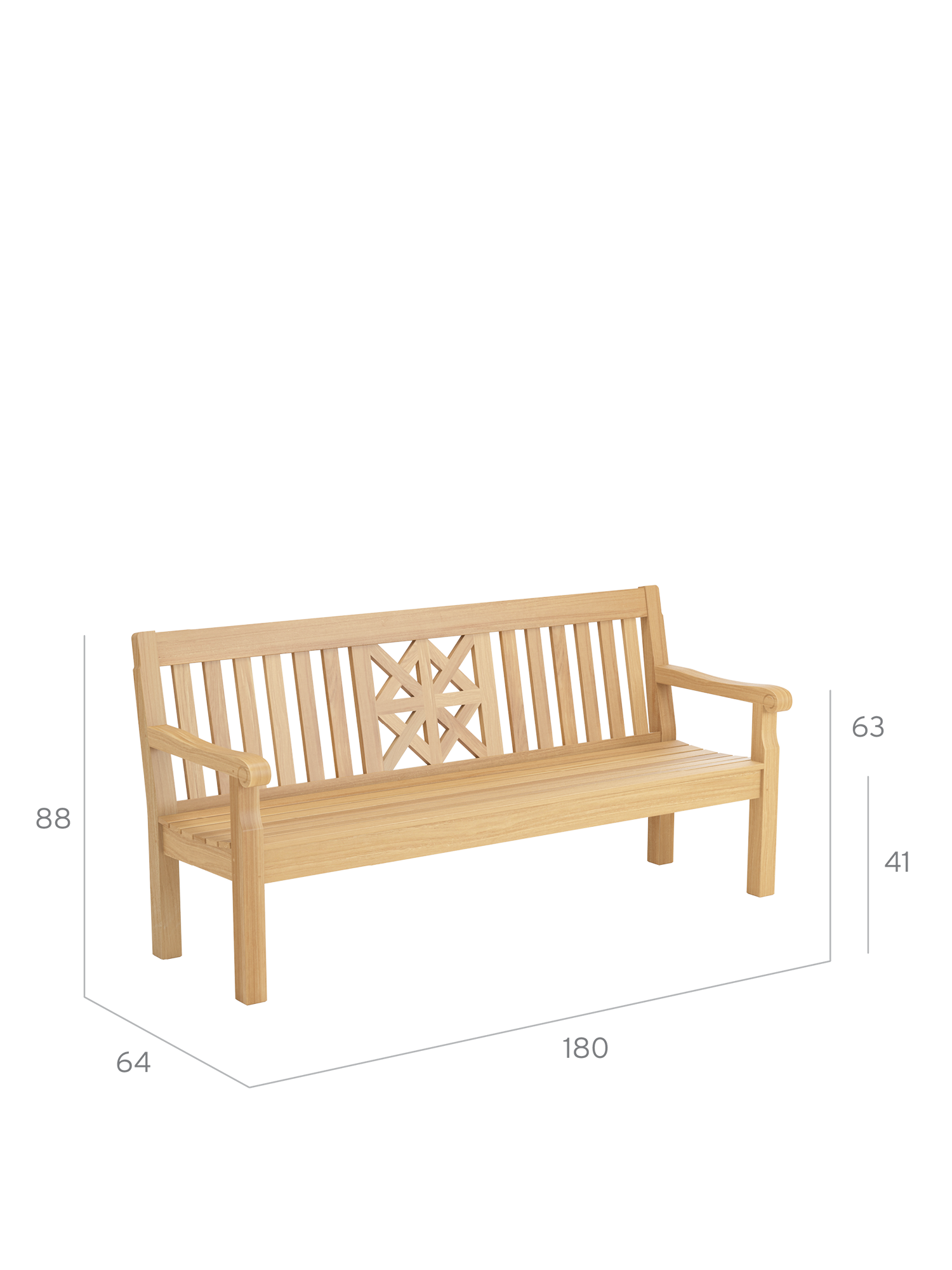 Die Bank trägt den Namen der berühmten Gartenlandschaft in Somerset mit Würde. In drei verschiedenen Größen empfiehlt sie sich wirkungsvoll und wetterfest als Rückzugsort und Beobachtungsposten. Das dekorative Element in der Rückenlehne ist ein ausdrucksvolles Symbol für höchste handwerkliche Fertigkeit.