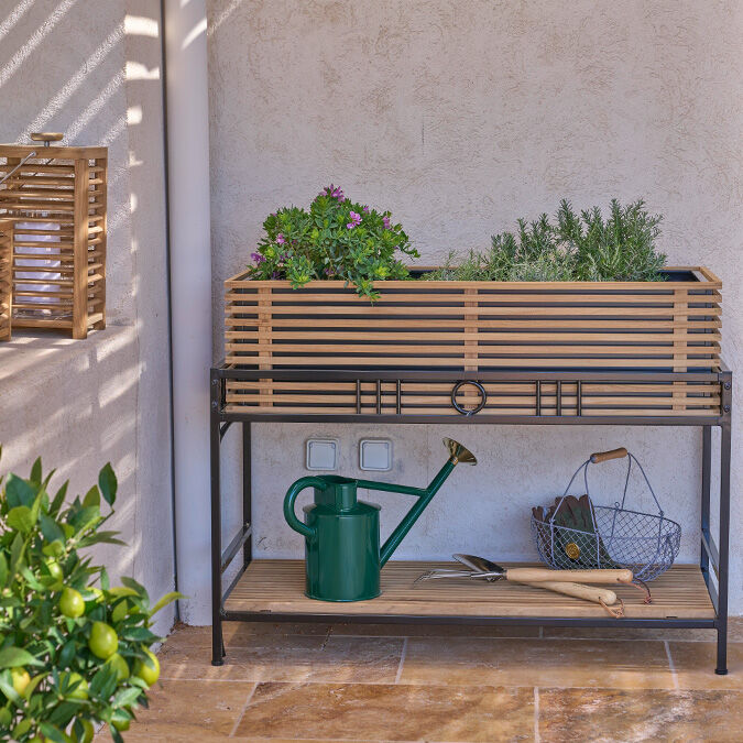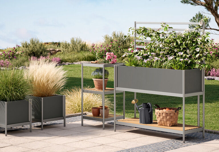 Staunässe verhindert ein integrierter Abfluss, auf dem Regalboden aus Teak finden Töpfe, Gartenwerkzeuge oder Gießkanne Platz. Unter Inspirationen haben wir einige Hinweise zu Standort, Drainage und Bepflanzung für Sie zusammengestellt. Weitere Informationen finden Sie direkt beim Produkt.