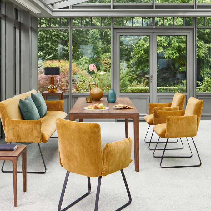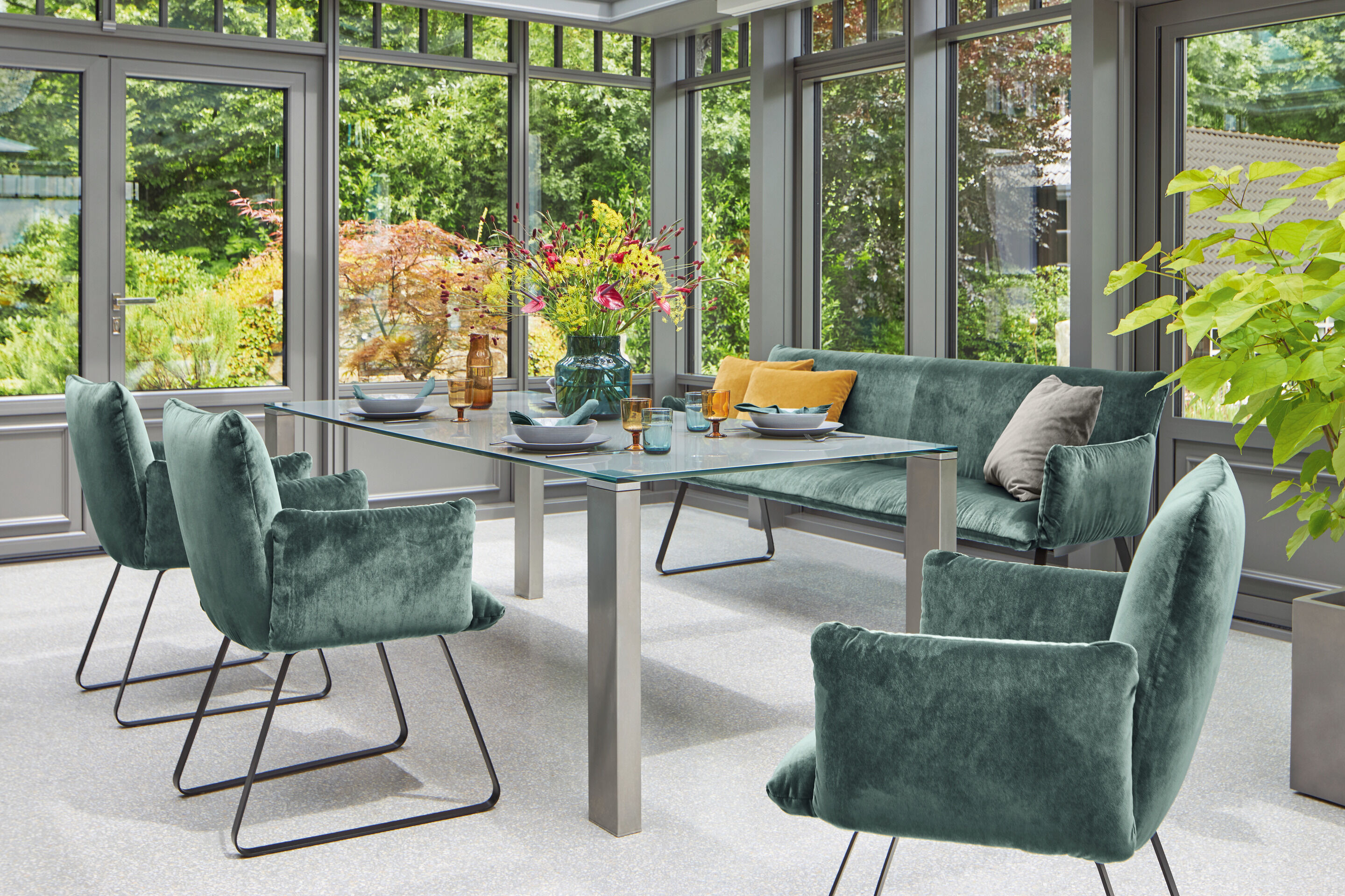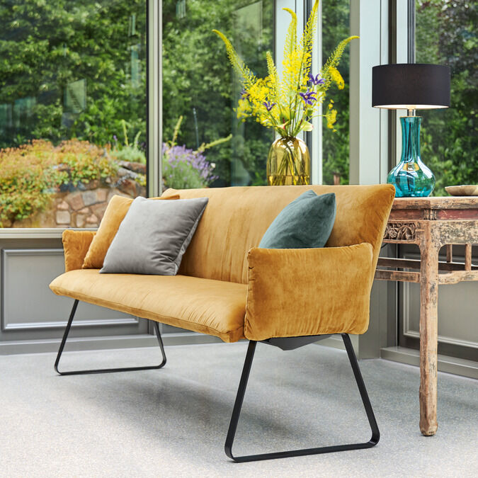 Vollendete Farb- und Formgebung, handverlesene Materialien und zeitgemäße Bequemlichkeit – die außergewöhnlichen Qualitäten der minimalistischen Mandø Sitzmöbel sind in jedem Detail sicht- und spürbar. Ihr samtiger Polsterstoff ist pflegeleicht, die geschwungenen Kufen aus Metall sind mattschwarz pulverbeschichtet. In Kooperation mit Garpa werden die Möbel von den Meistern der Bielefelder Werkstätten in klassischer Manufakturarbeit gefertigt. Eines so perfekt wie das andere.