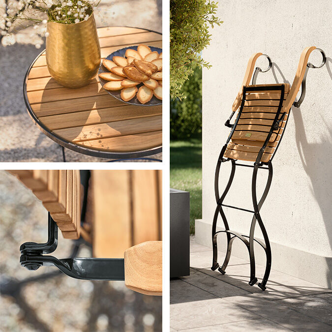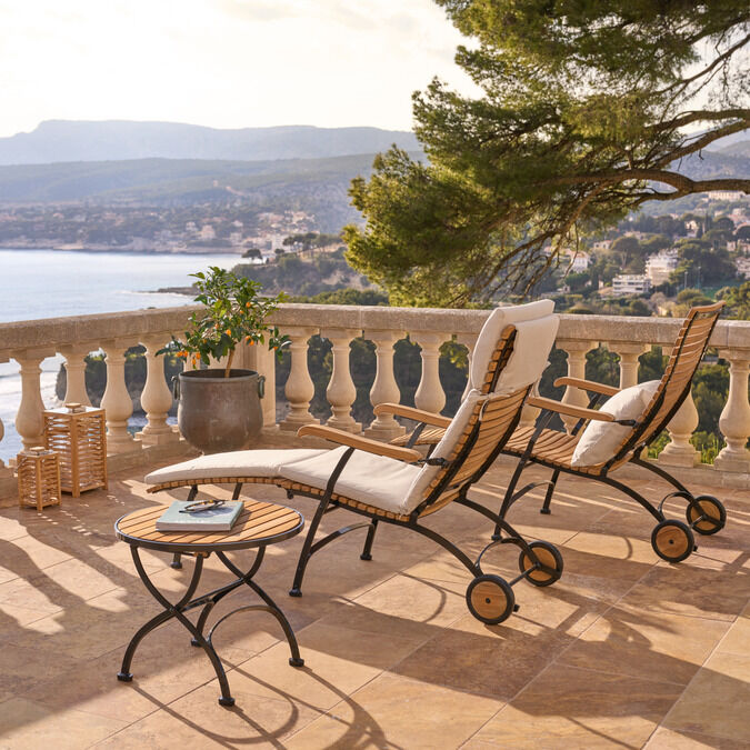 Klassiker aus Teak und Stahl verhelfen dem Flair der Belle Époque zu neuen Ehren. Die heutige Generation, spielend leicht zusammenzuklappen oder verstellbar, überzeugt mit modernem Know-how und handwerklicher Meisterschaft. Jedes Detail wurde für höchste Ansprüche perfektioniert. Vielfältige Tische, Deck Chairs und Loungemöbel erweitern das Repertoire: Ein Klassiker präsentiert seine weit verzweigte Familie.
