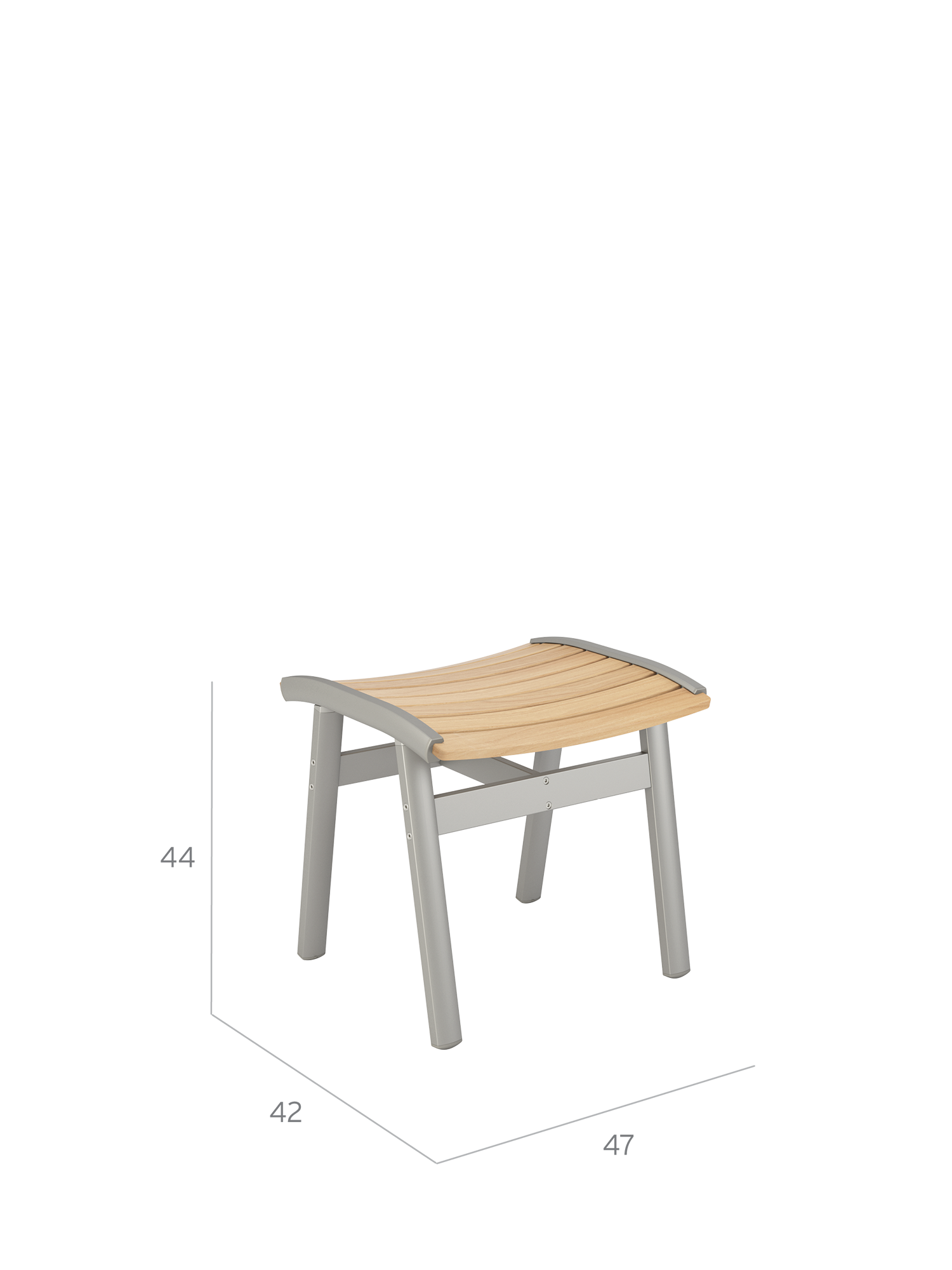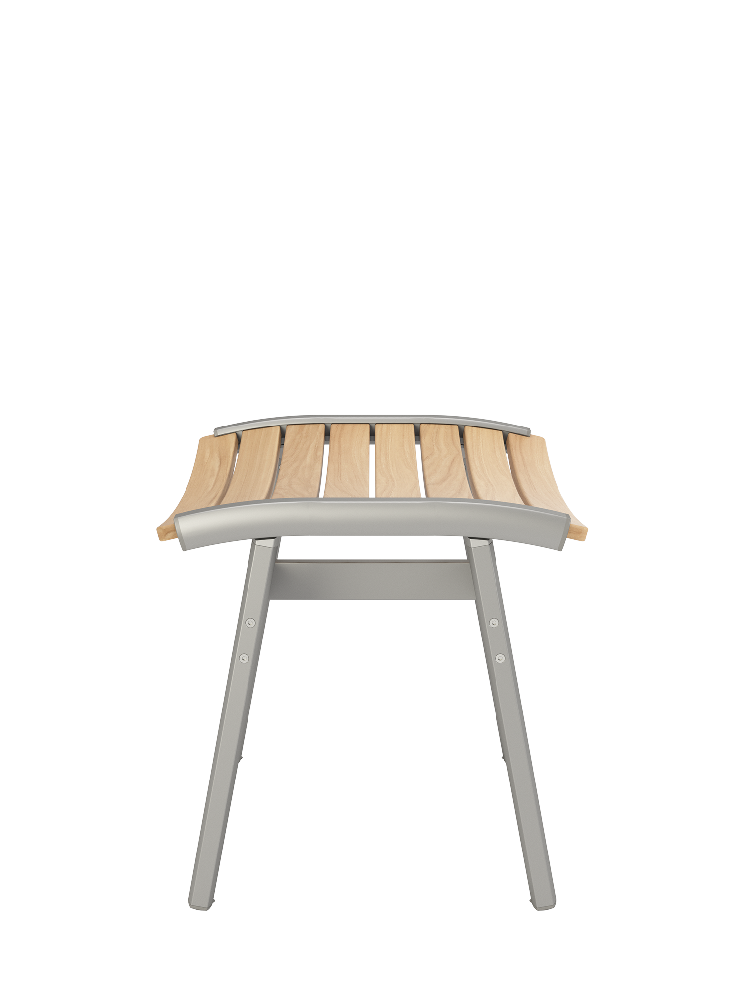 Hier werden langlebige Materialien perfekt in Szene gesetzt: Die eloxierten Profile des seidig glänzenden Aluminiumgestells umfassen passgenau die ergonomisch modellierten Teakleisten der Sitzfläche. Und verleihen dem Designklassiker eine moderne Note.