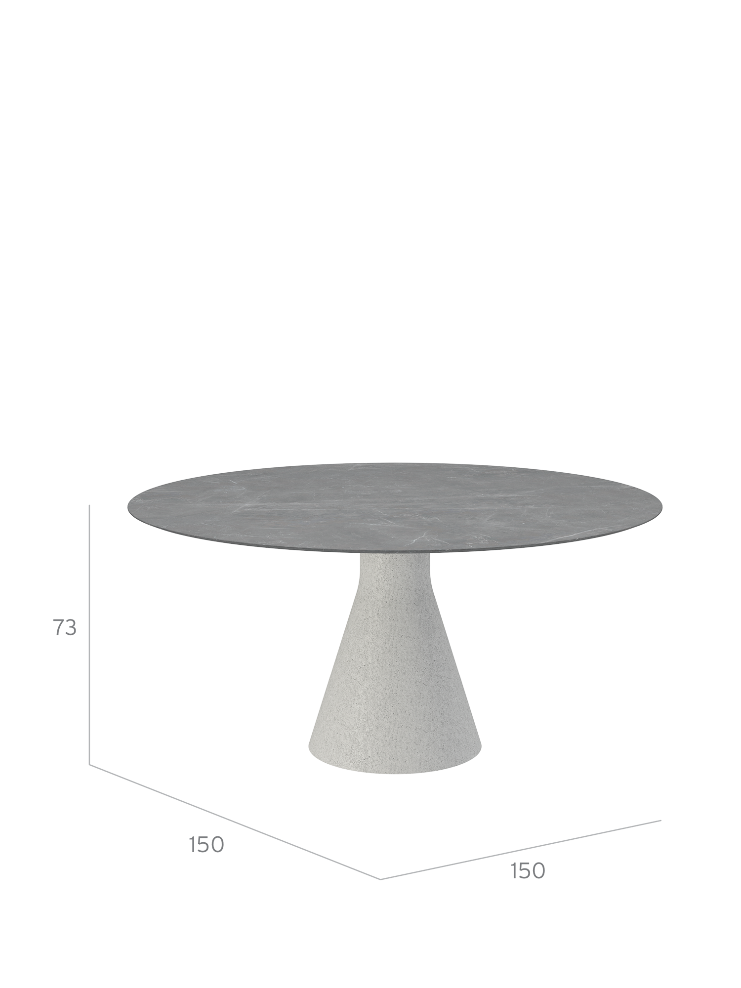 Der Namur Tisch mit einem konisch geformten Mittelfuß lässt angenehme Beinfreiheit für kleinere und größere Runden. Gesprächsthema dürfte auch das skulpturale Design des Tisches sein. Gastgeber und Gäste behalten sich stets im Blick und genießen die Gesellschaft – bei gekühlten Getränken oder beim Nachmittagskaffee, beim Snack zwischendurch oder beim exquisiten Abendessen.