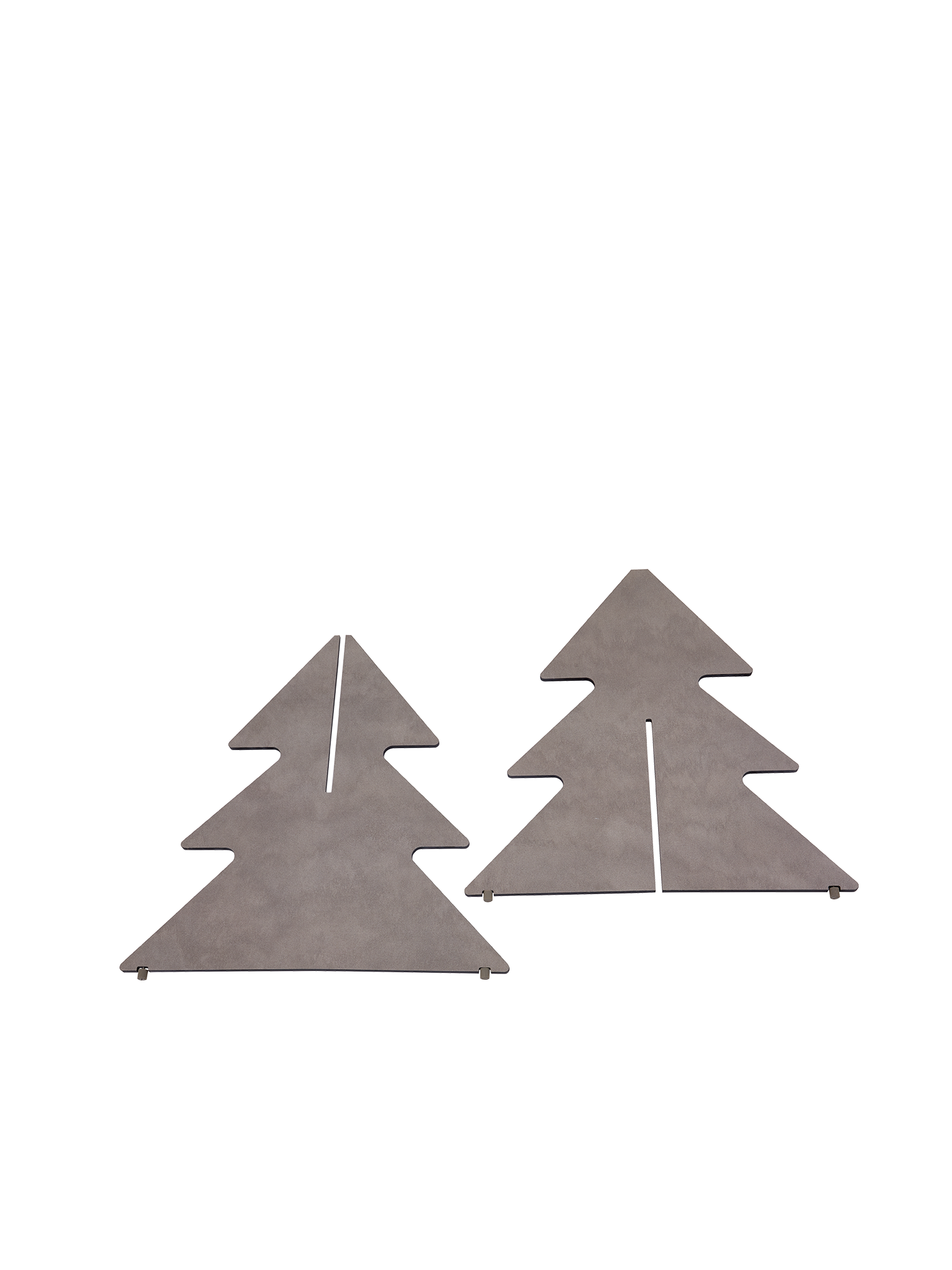 Umweltfreundlich aus Randstücken der Möbelproduktion hergestellt, überzeugen die stilisierten Tannenbäume in der Weihnachtszeit durch ihre feierliche Schönheit und den Rest des Jahres durch einen praktischen Steckmechanismus. Die beiden Platten aus Kunstharz lassen sich mühelos auf- und auseinanderbauen sowie platzsparend verstauen.