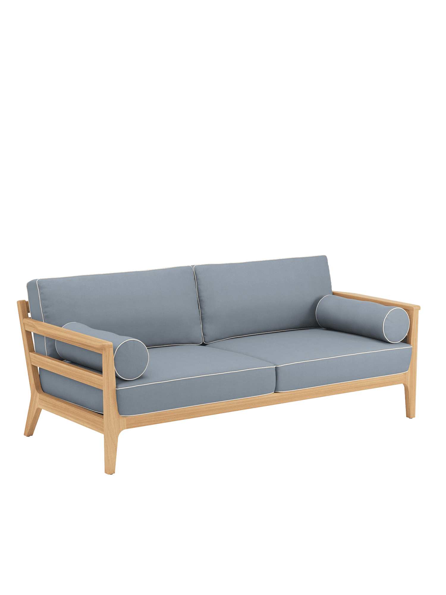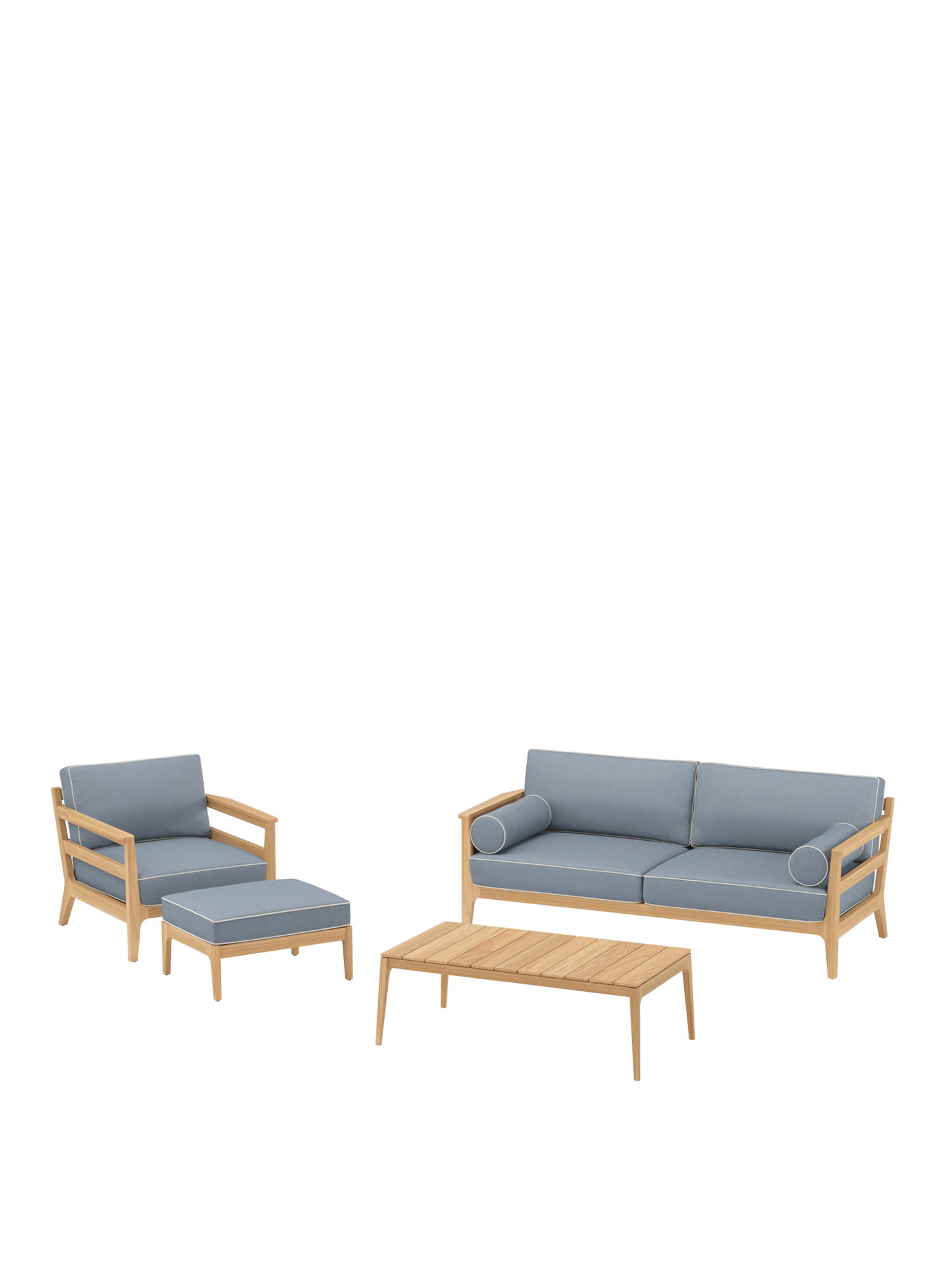 Die Polstermöbel der Newhaven Kollektion mit einem Rahmen aus hochwertigem Teakholz überzeugen unabhängig von ihrer Umgebung. Ob im Garten, auf der Terrasse oder im Wintergarten platziert – die aufwendig verarbeiteten Keder als markantes Merkmal ziehen stets die Blicke auf sich. Als überaus praktischer Mittelpunkt der Loungegruppe dient der Couchtisch.