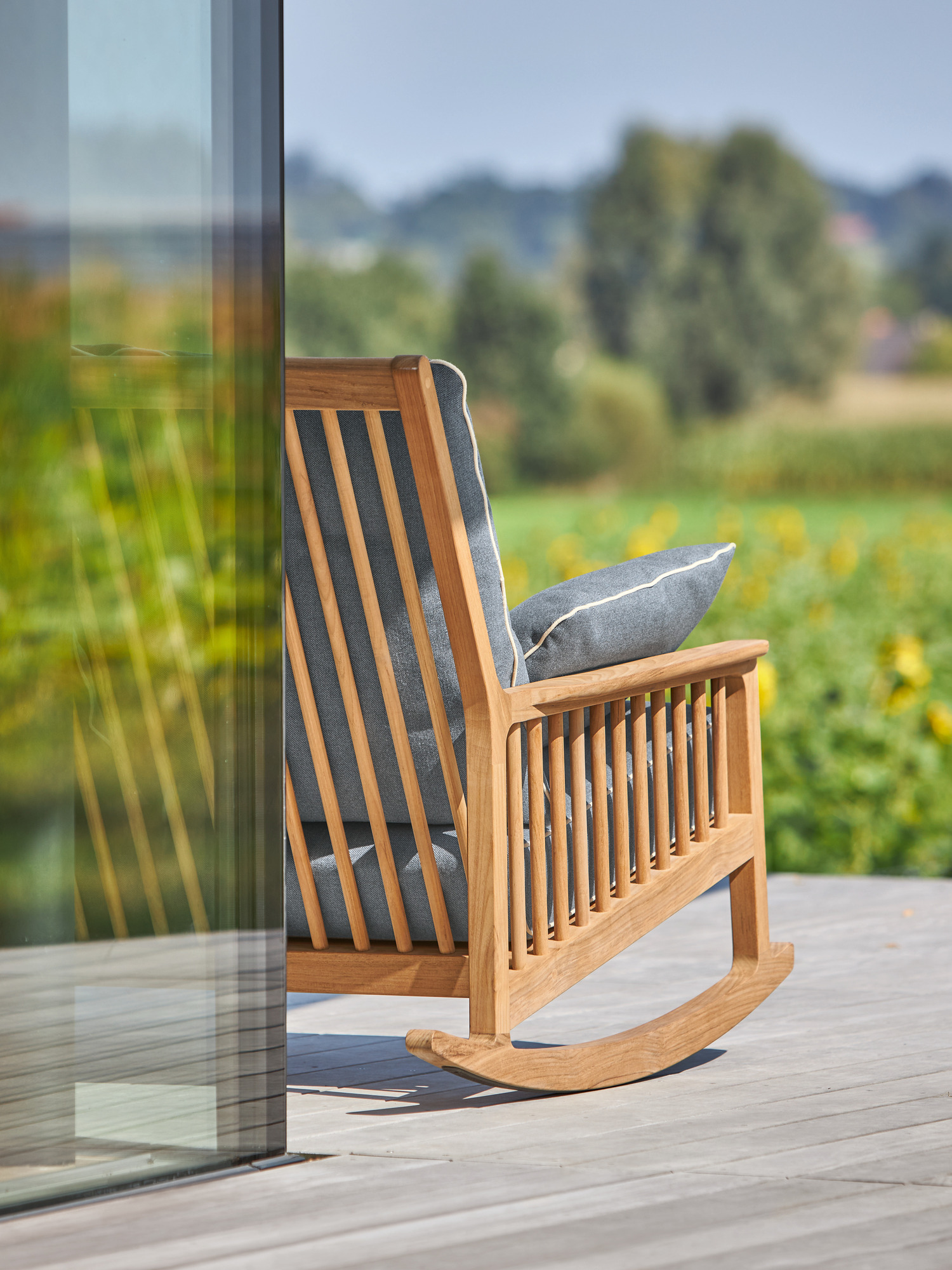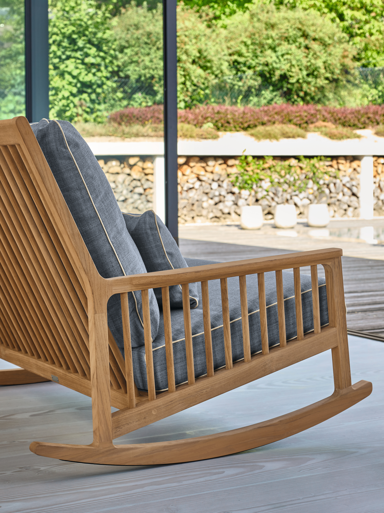 Die bewährten Qualitäten von Gartenbank und Schaukelstuhl potenzieren sich, wenn man sie vereint. Der Zweisitzer ist dazu da, glückliche Stunden zu teilen und Behaglichkeit Seite an Seite zu genießen. Newhaven verwöhnt dabei mit einer schulterhohen Rückenlehne und besonders tiefem Sitz. Klassisches Teak bringt die nötige Bodenhaftung, elegantes Design den erwünschten Schwung. Hat man beide Sitzplätze einmal ganz für sich allein, kann man sich darauf auch ausstrecken, die Beine hoch- und eines der weichen Kissen unter den Kopf legen.