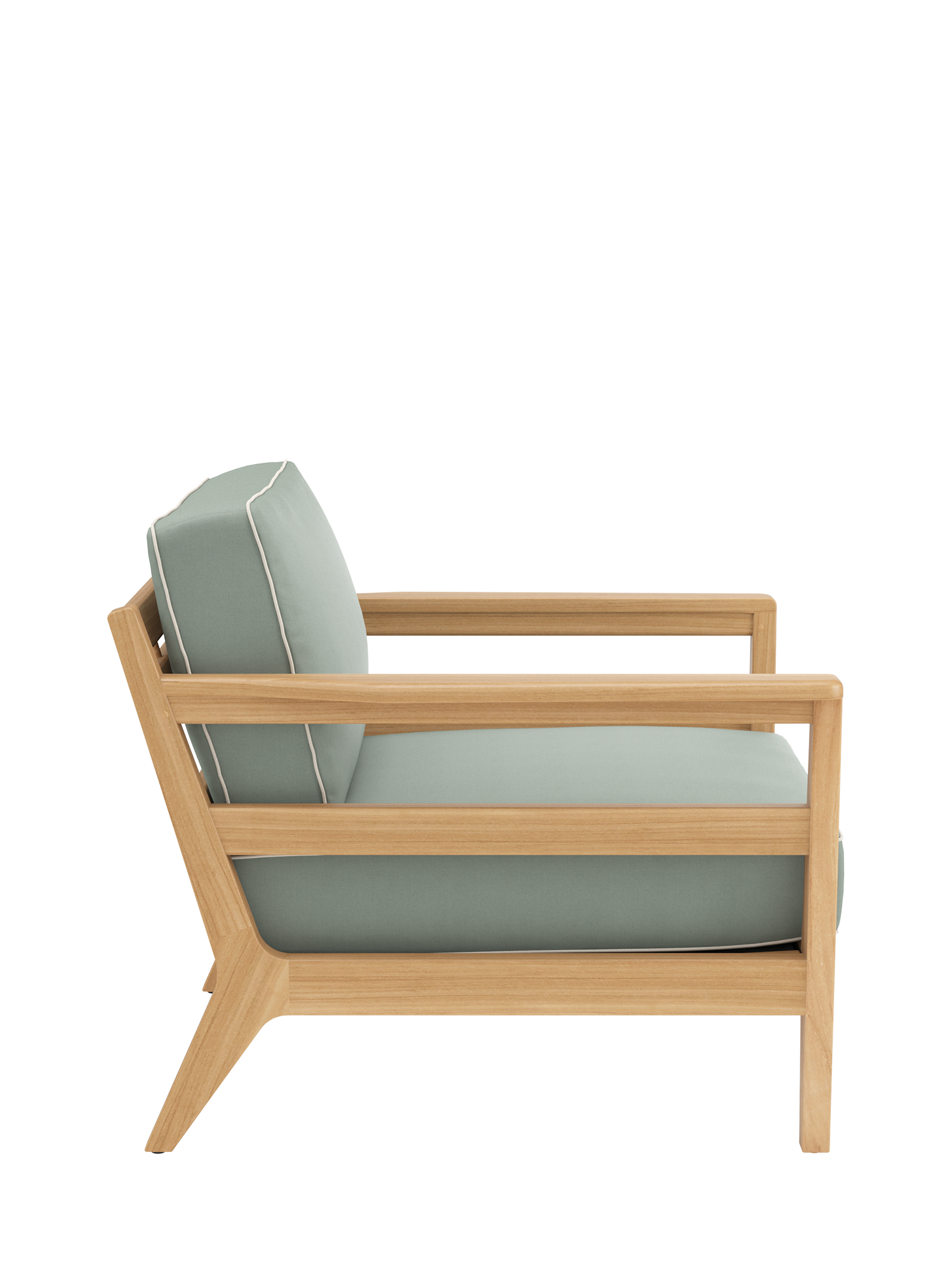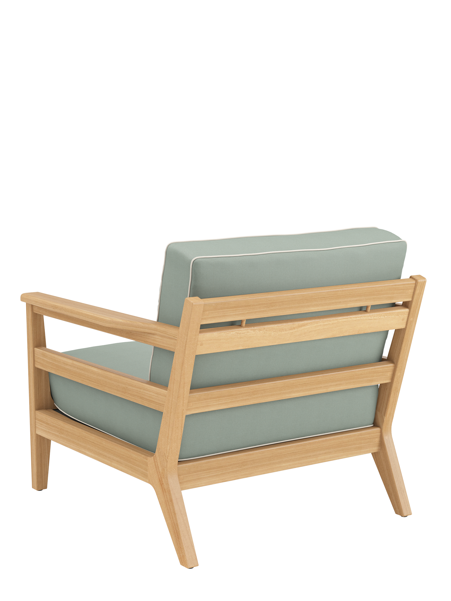 In die großzügigen Polstermöbel im Loungeformat zieht man sich gerne zurück. Ihre Rahmen sind aus hochwertigem Plantagenteakholz gefertigt, die Sitzflächen mit einem Gewebe bespannt, das die komfortablen Polster sicher trägt. Als markantes Merkmal verleihen aufwendig verarbeitete Keder dem klassischen Refugium seine maritime Anmutung. Alle Kissen sind farbig umrandet.