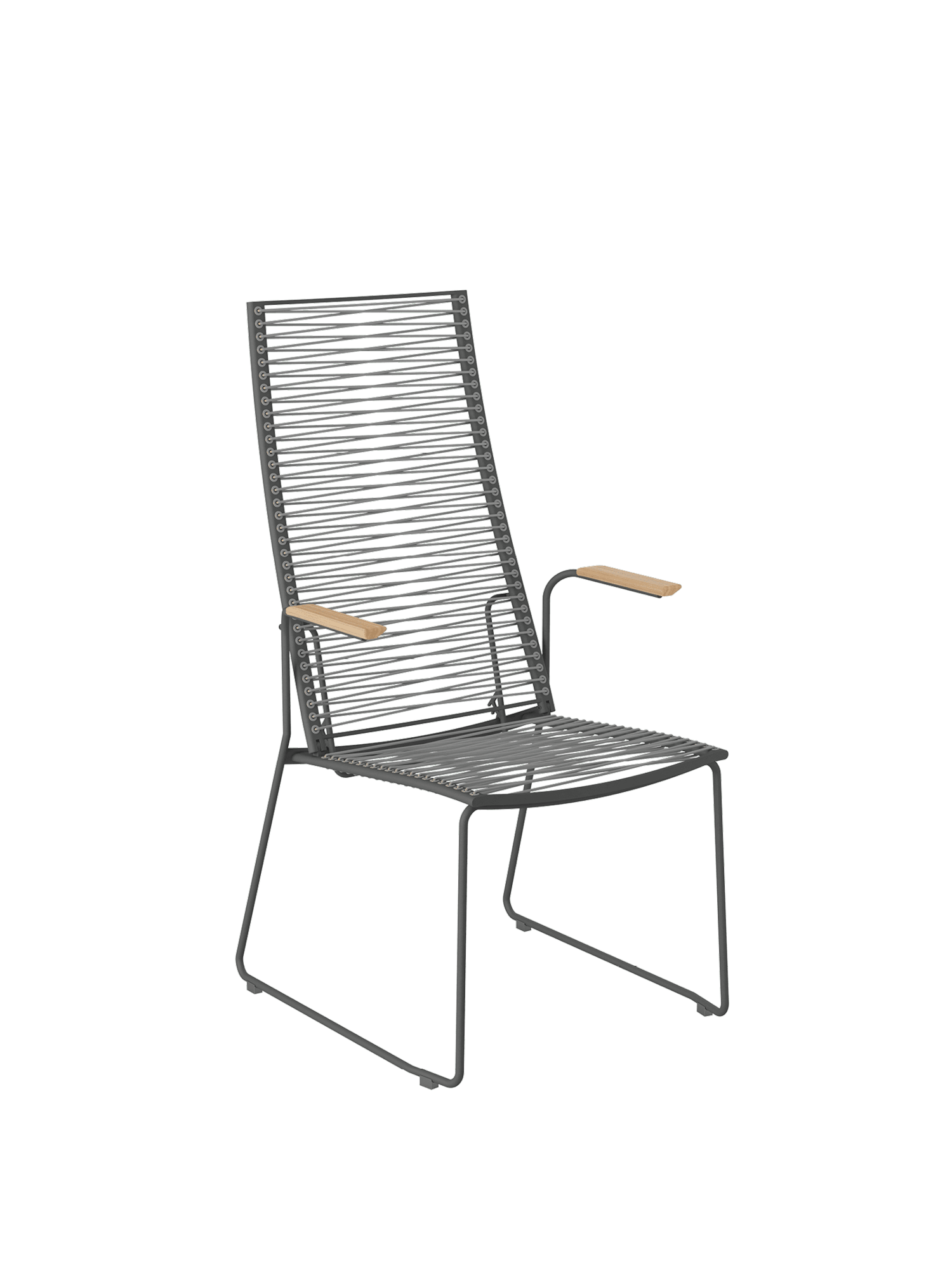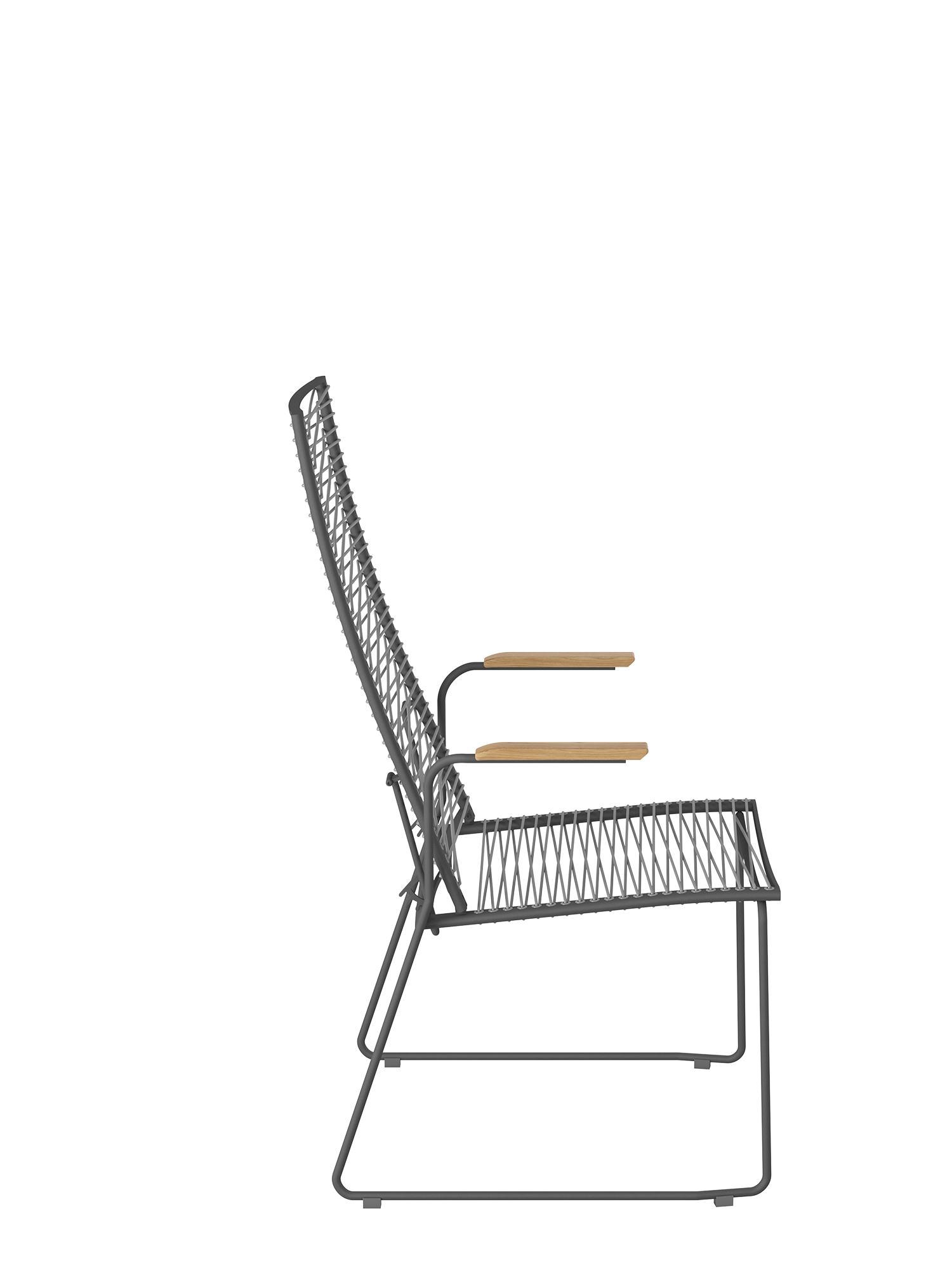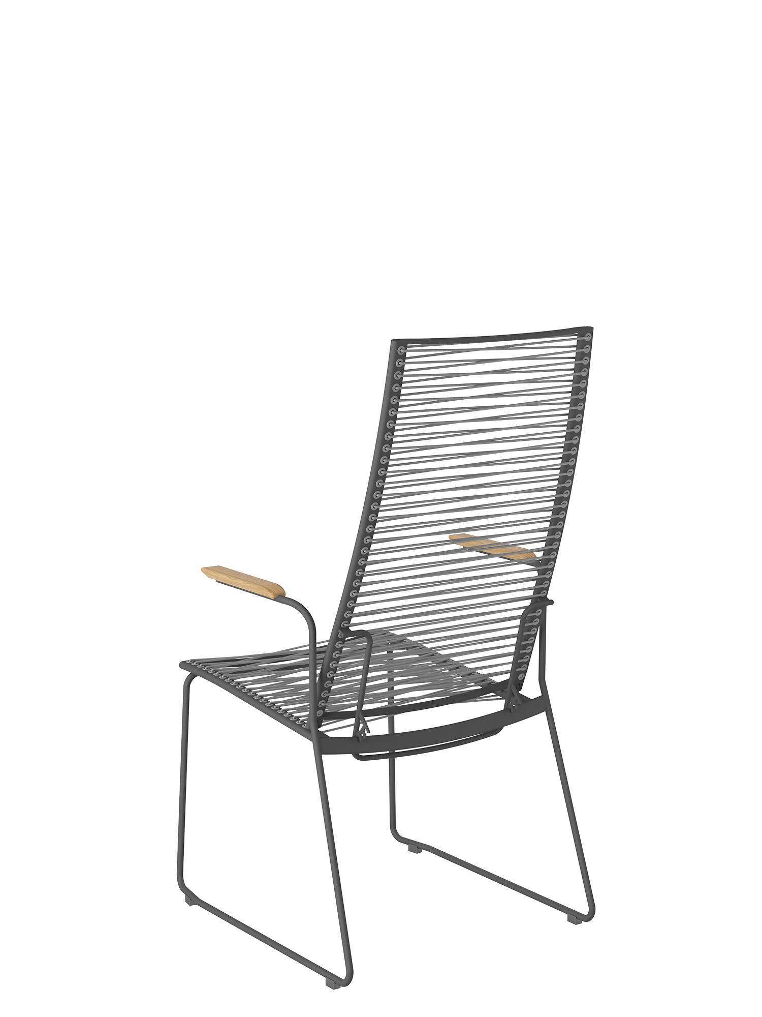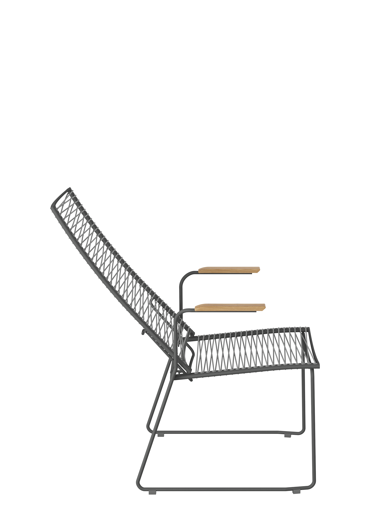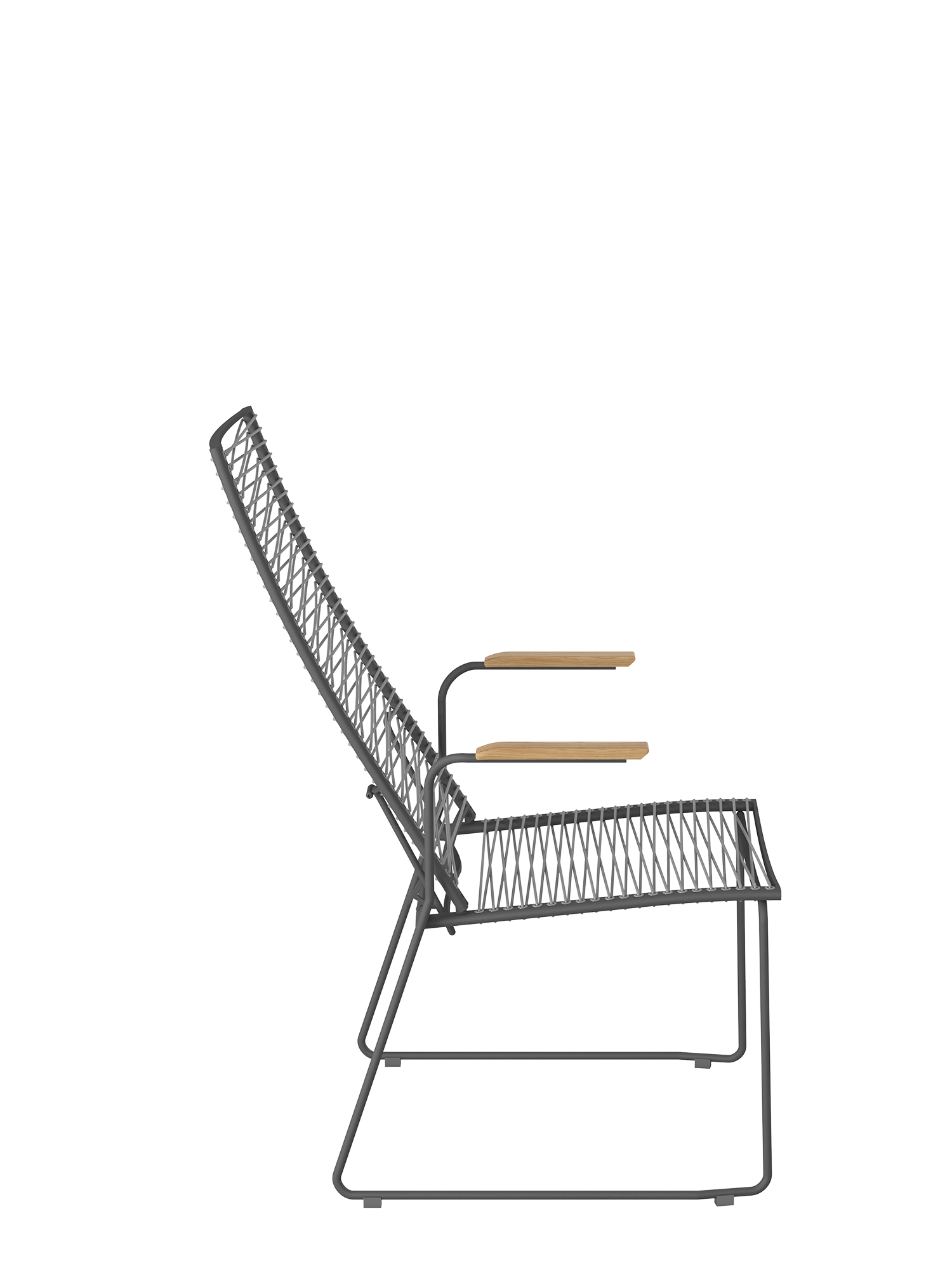 Markantes Merkmal der modernen Sitzmöbel ist ihre Schnürung, die durch dekorative Ösen im Rahmen geführt wird. Die Kunststofffaser ist UV- und frostbeständig und bleibt auch bei Dauergebrauch gut in Form.