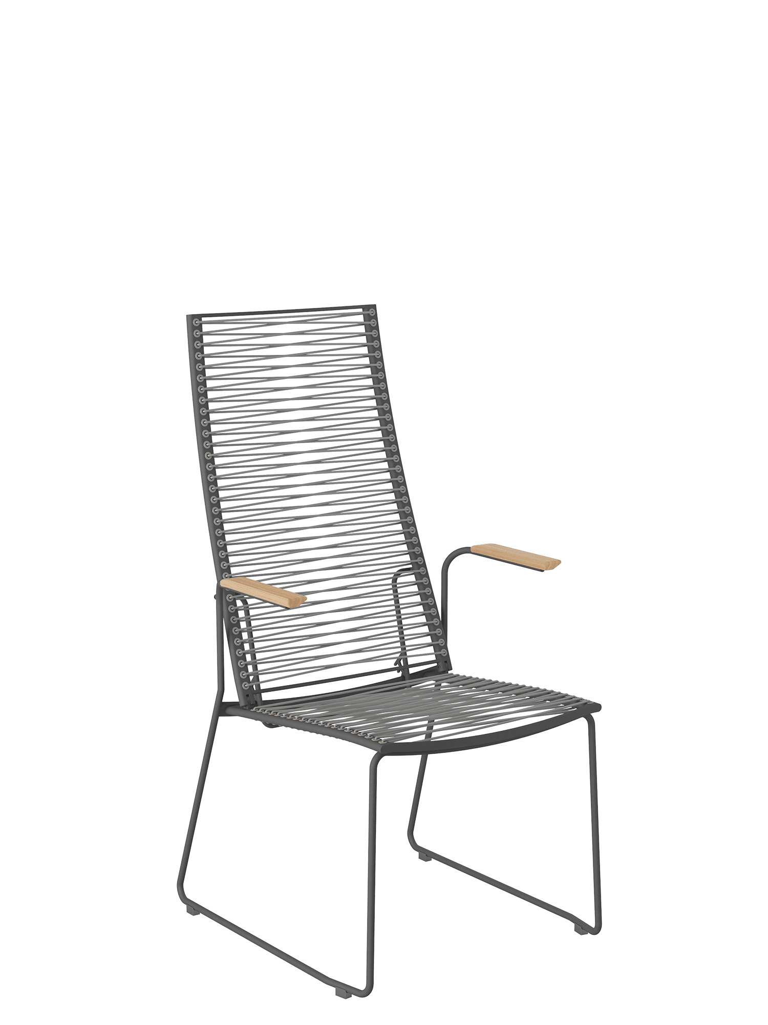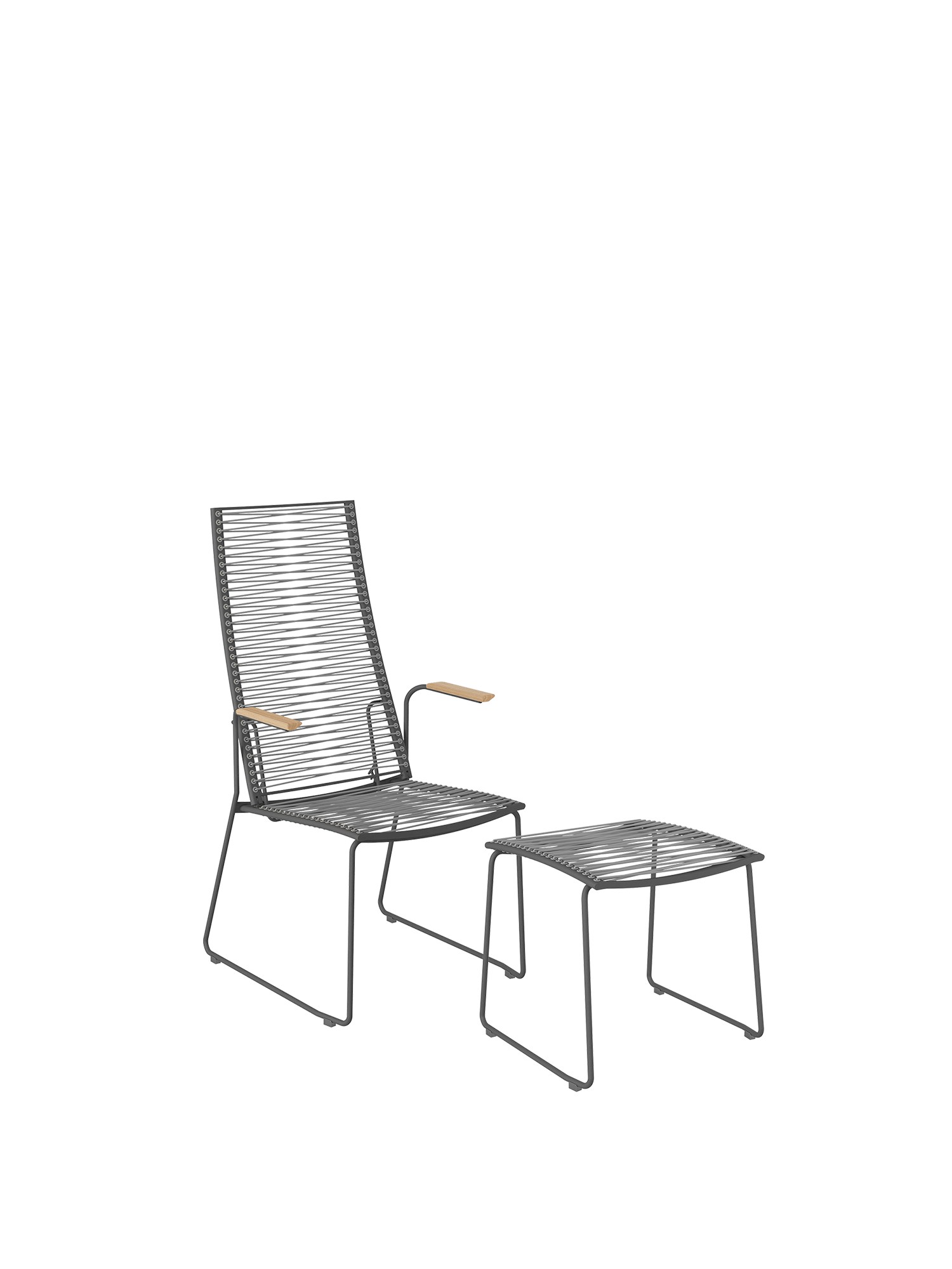 Perfekt, um die schönsten Seiten der Entspannung zu erleben: Durch den Hocker im gleichen Design wird der Hochlehner mit zweifach verstellbarer Rückenlehne zum behaglichen Liegestuhl. Die leichten Möbel haben Gestelle aus Edelstahl und sind mit einer dauerelastischen Faser bespannt, die sich der Körperkontur anpasst. Die Armlehnen des Hochlehners bestehen aus Teakholz.