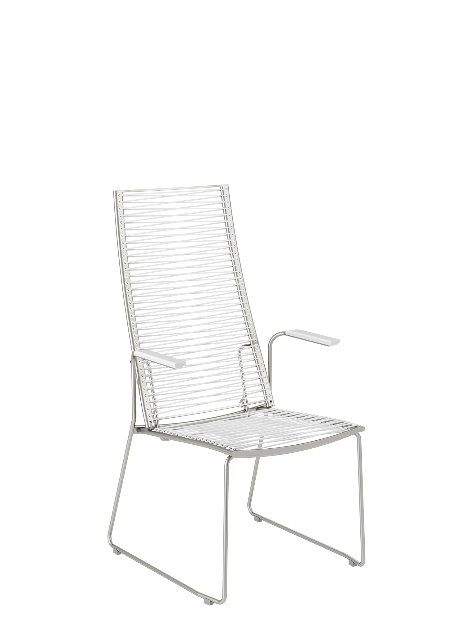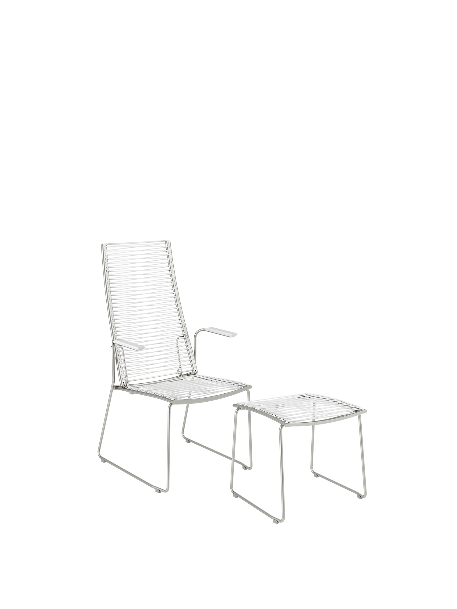 Perfekt, um die schönsten Seiten der Entspannung zu erleben: Durch den Hocker im gleichen Design wird der Hochlehner mit zweifach verstellbarer Rückenlehne zum behaglichen Liegestuhl. Die leichten Möbel haben Gestelle aus Edelstahl und sind mit einer dauerelastischen Faser bespannt, die sich der Körperkontur anpasst. Die Armlehnen des Hochlehners bestehen aus Kunstharz.
