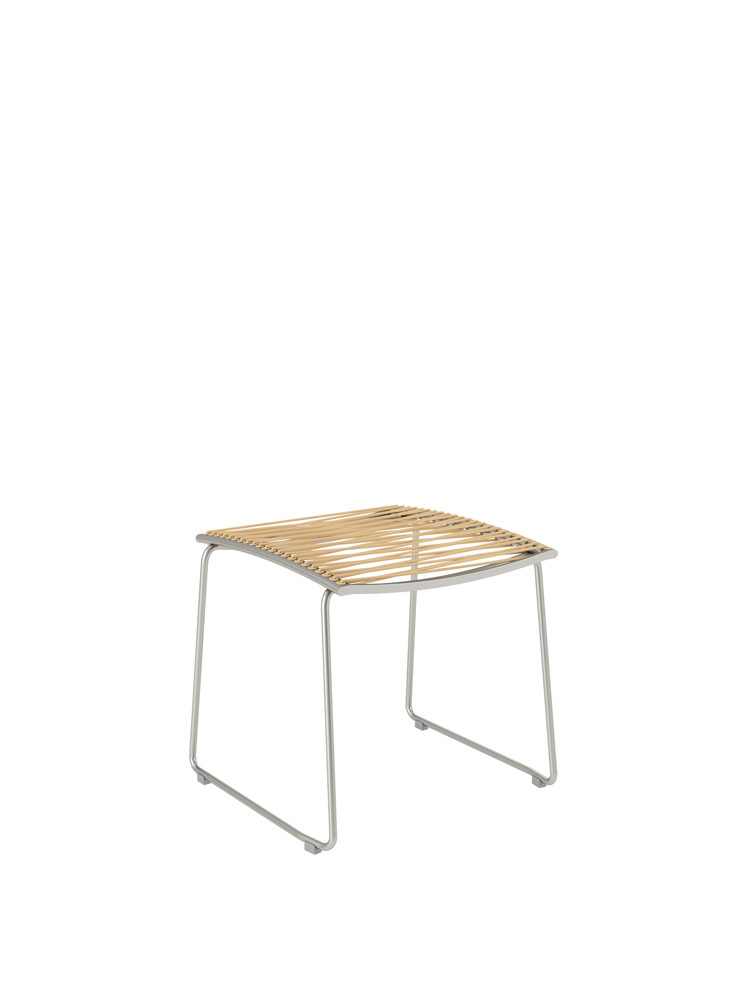 Der passende Hocker zu den Stühlen und Hochlehnern der Pan Serie hat ein Gestell aus Edelstahl und eine Bespannung aus hochwertiger, wetterfester Kunststofffaser. Er ist schnell dazugestellt und entlastet angenehm die Beine.