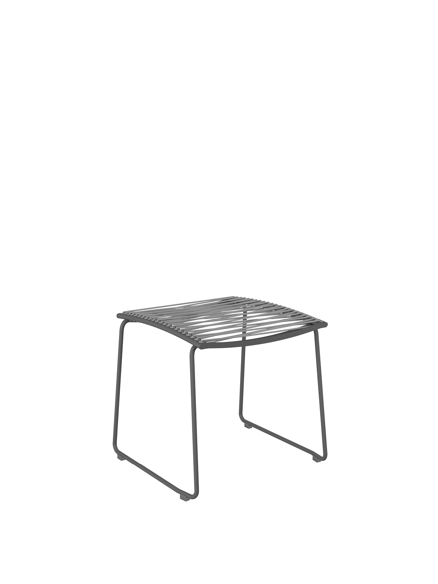 Der passende Hocker zu den Stühlen und Hochlehnern der Pan Serie hat ein Gestell aus pulverbeschichtetem Edelstahl und eine Bespannung aus hochwertiger, wetterfester Kunststofffaser. Er ist schnell dazugestellt und entlastet angenehm die Beine.