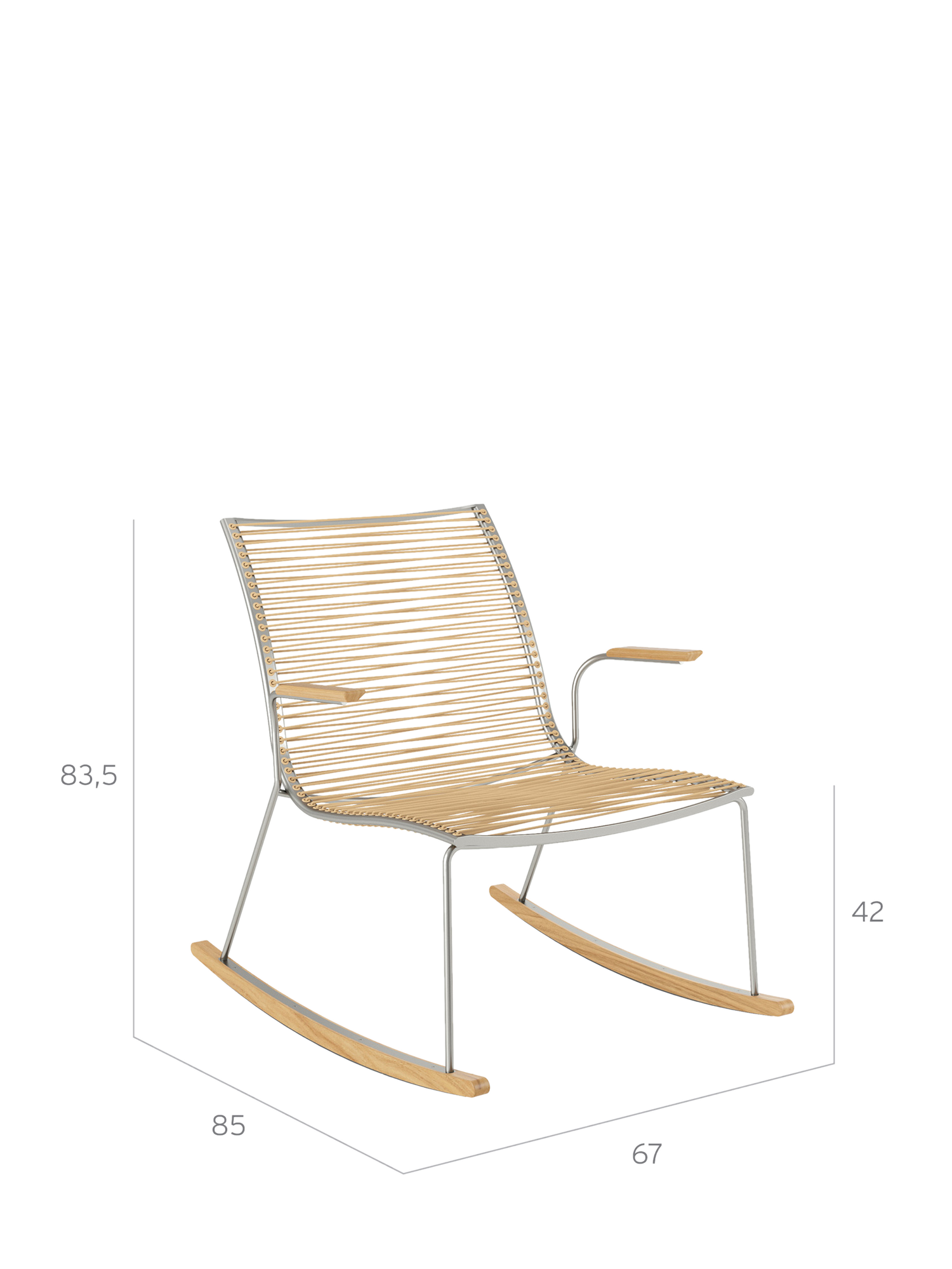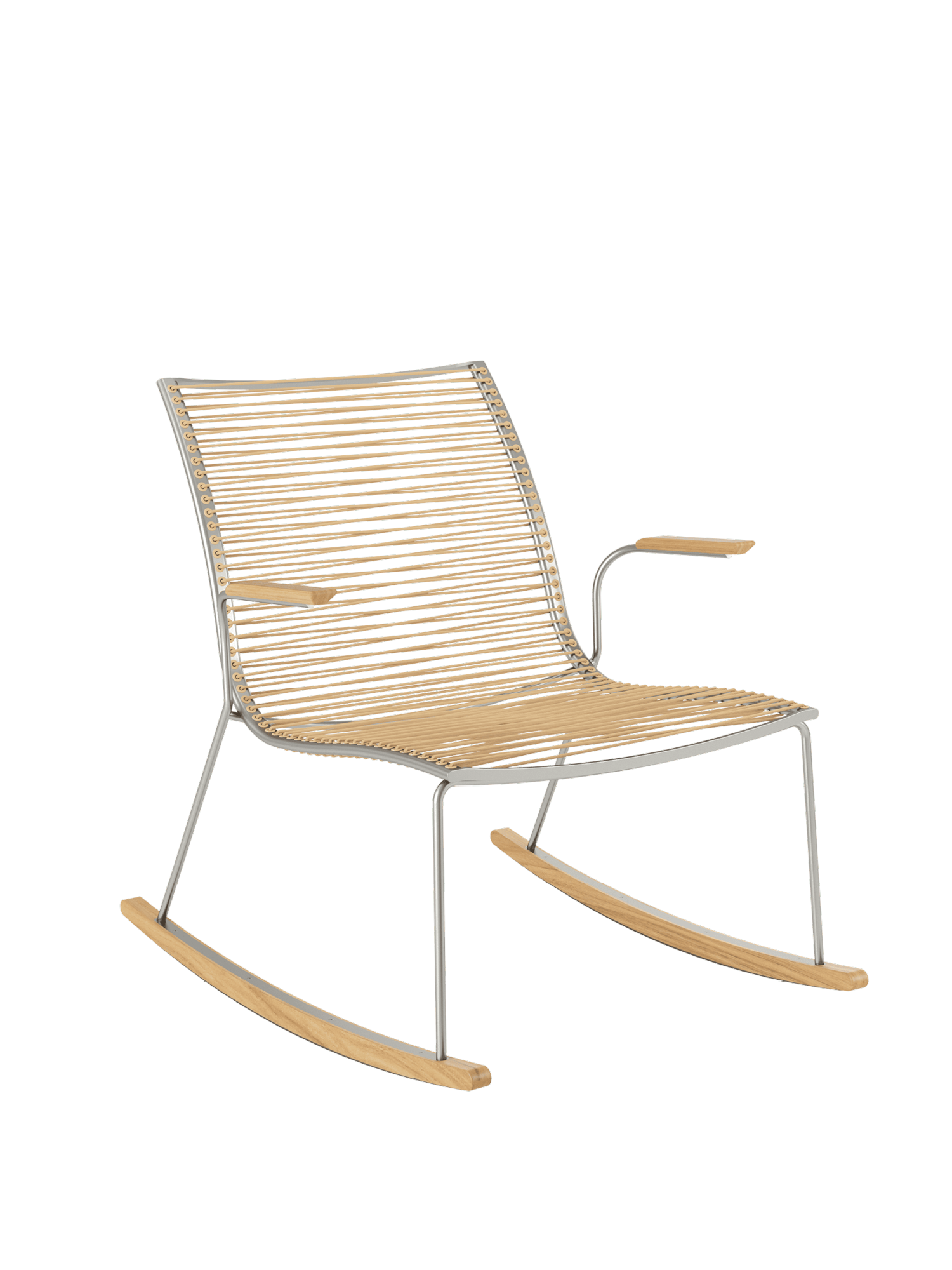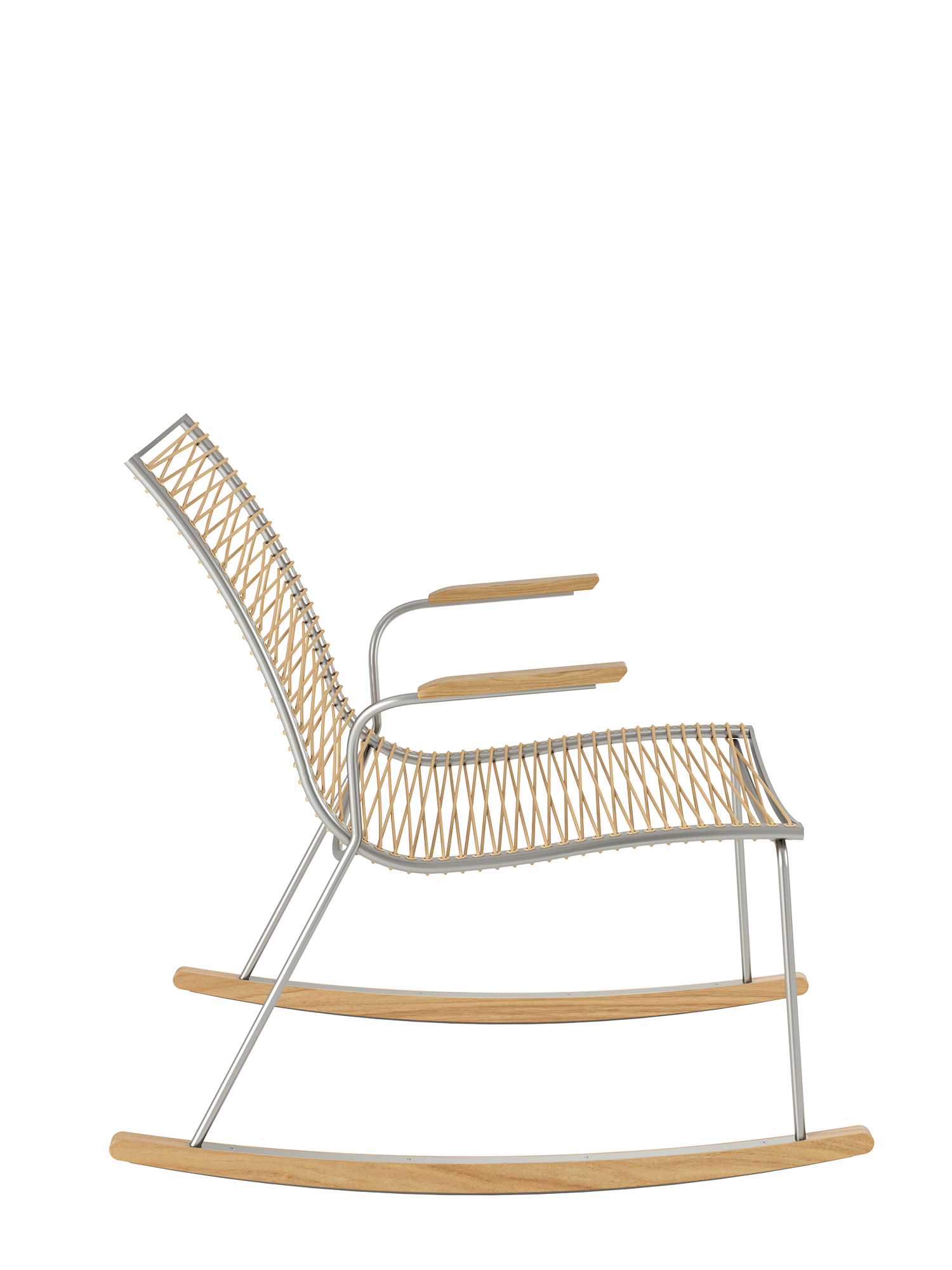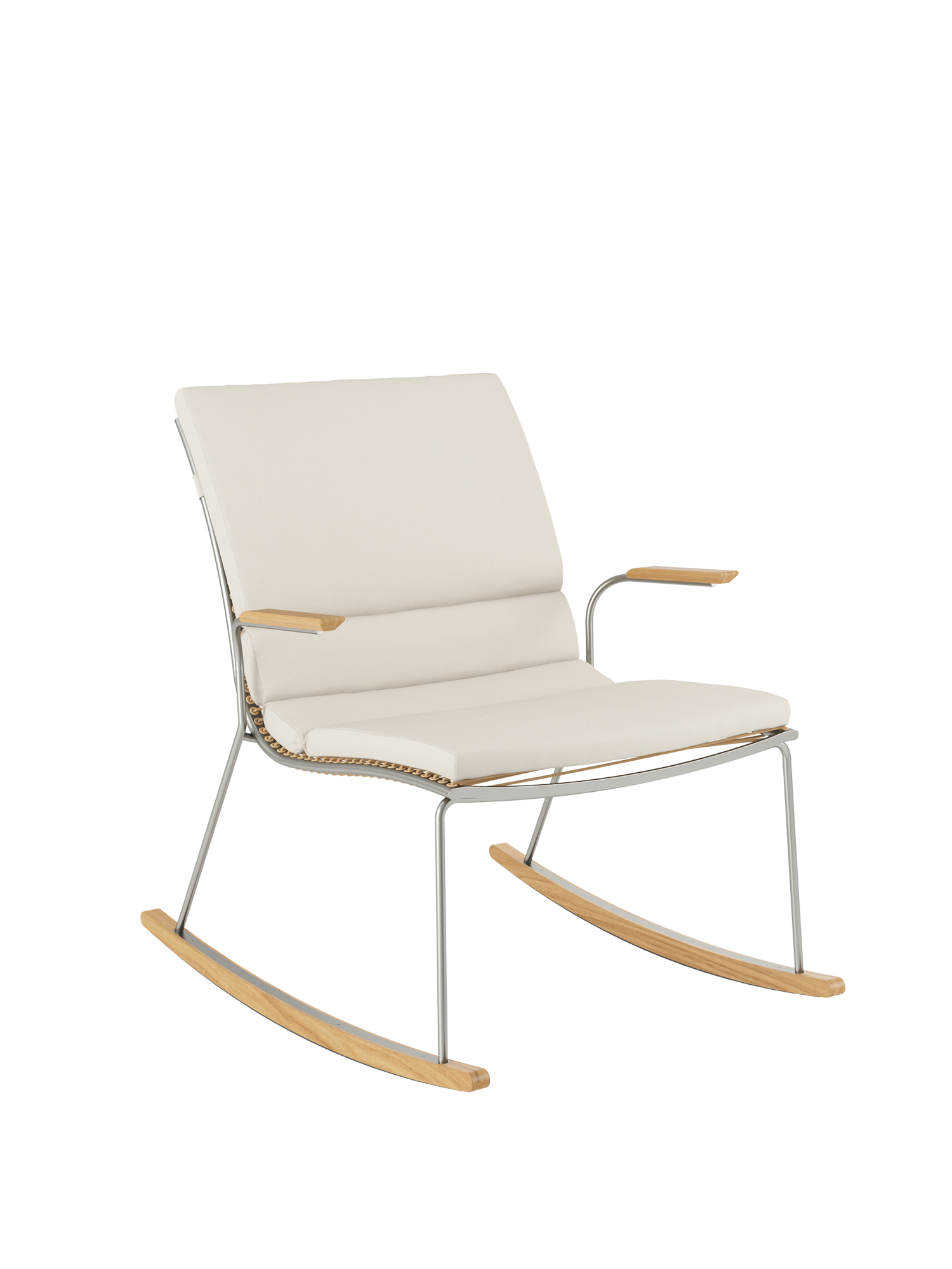 Bewegungsenergie in Ruhe zu verwandeln, ist rein physikalisch ein Ding der Unmöglichkeit. Aber gerade darin liegt die Bestimmung des Schaukelstuhls: Im filigranen Pan Design, auf schlanken Teakkufen und mit Armlehnen aus Teak, versetzt er schwungvoll in tiefe Entspannung. Für sorgloses Schaukeln sind schützende Kunststoffleisten unter den Kufen angebracht.