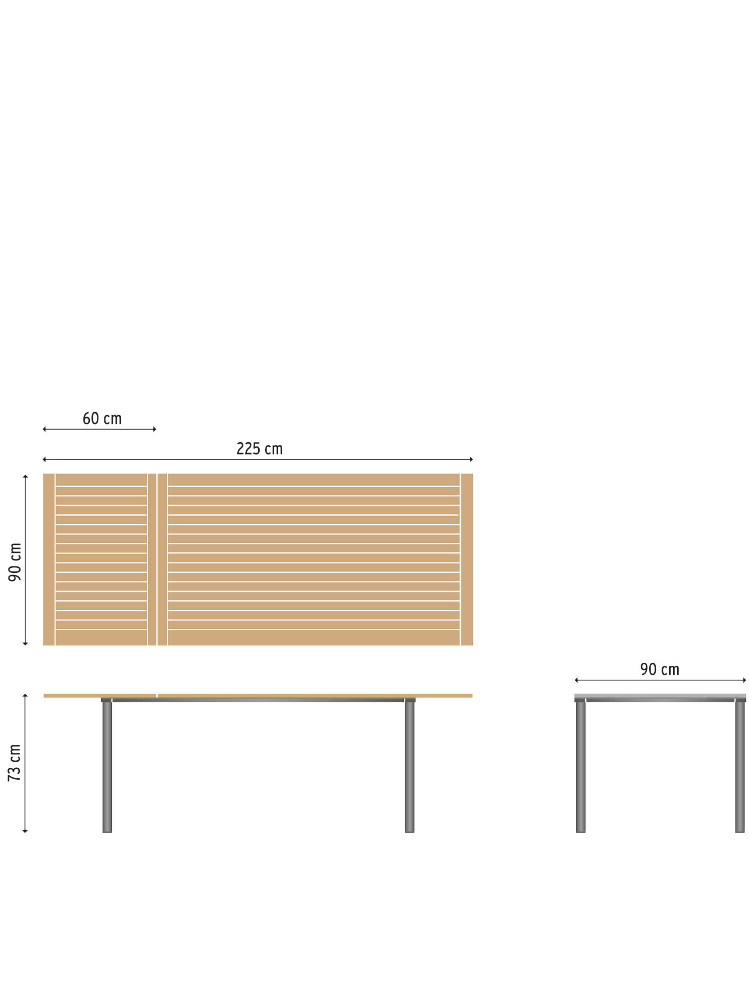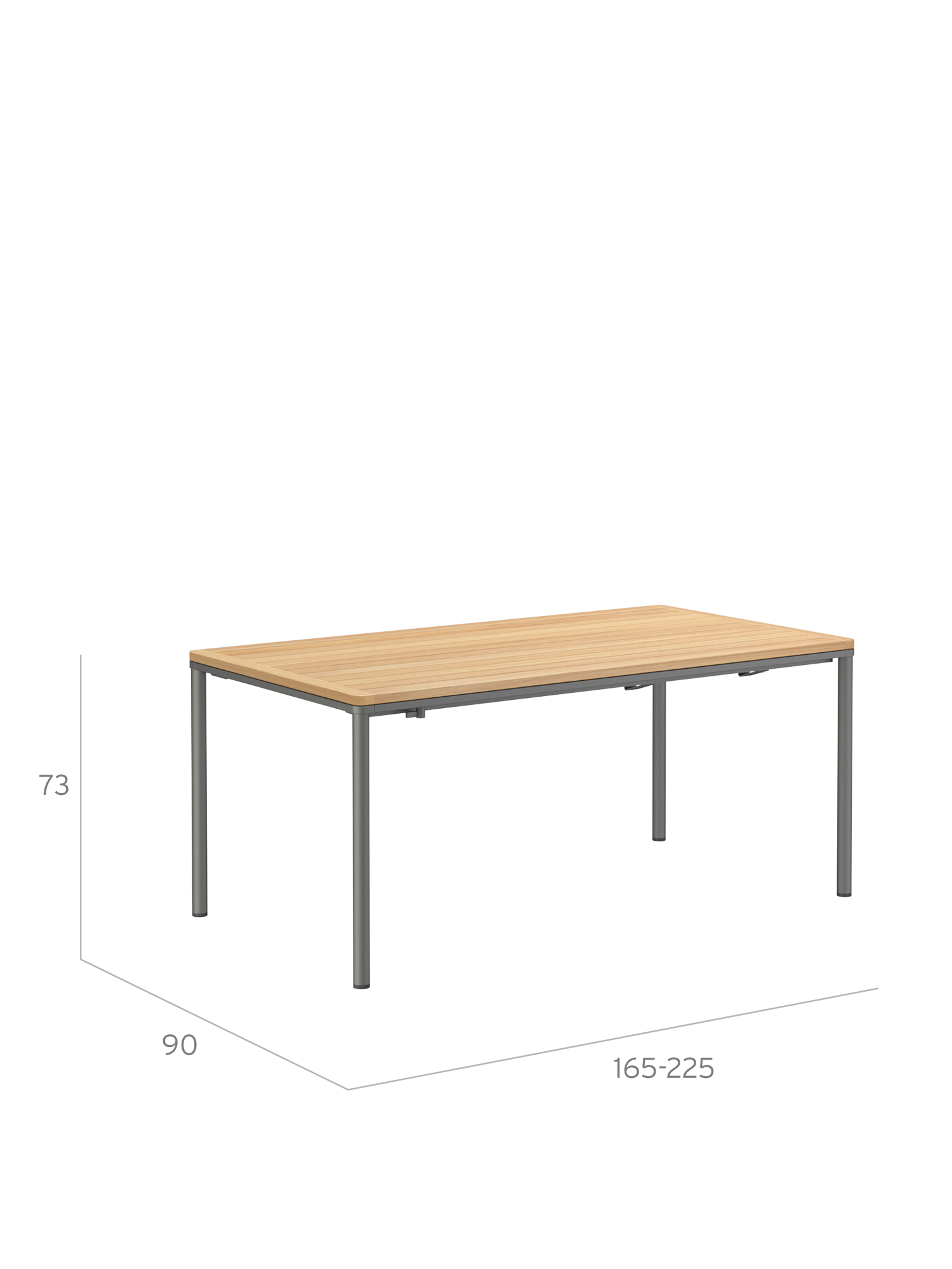 Portland Ausziehtisch Edelstahl Graphit/Teak 165-225 x 90