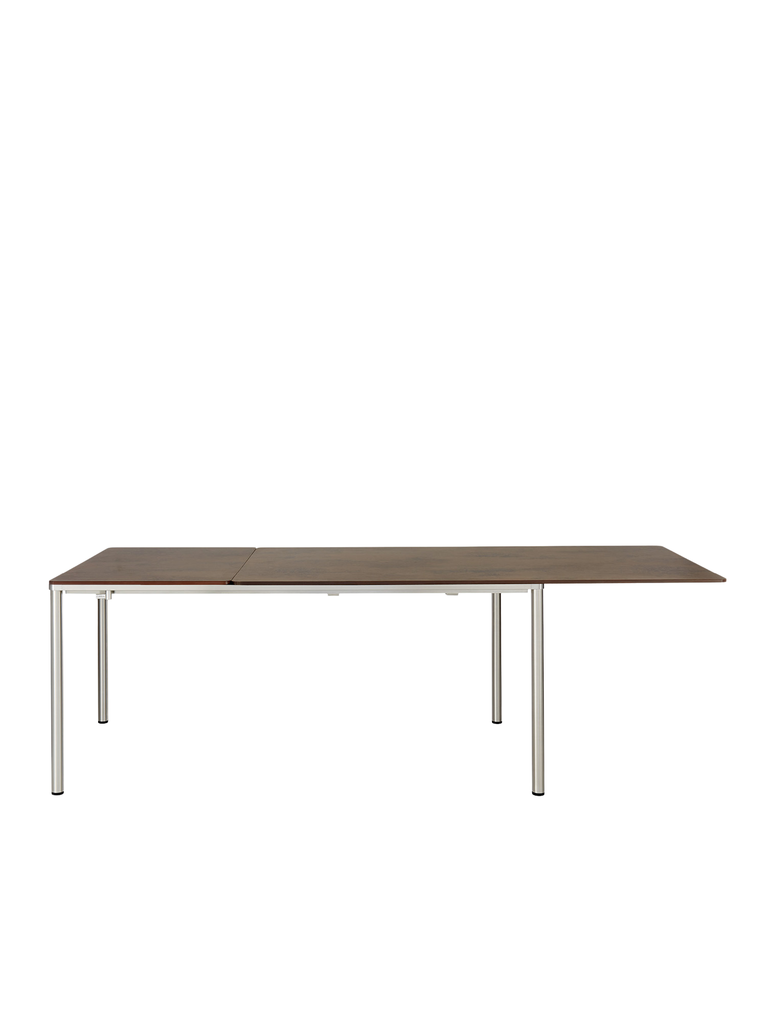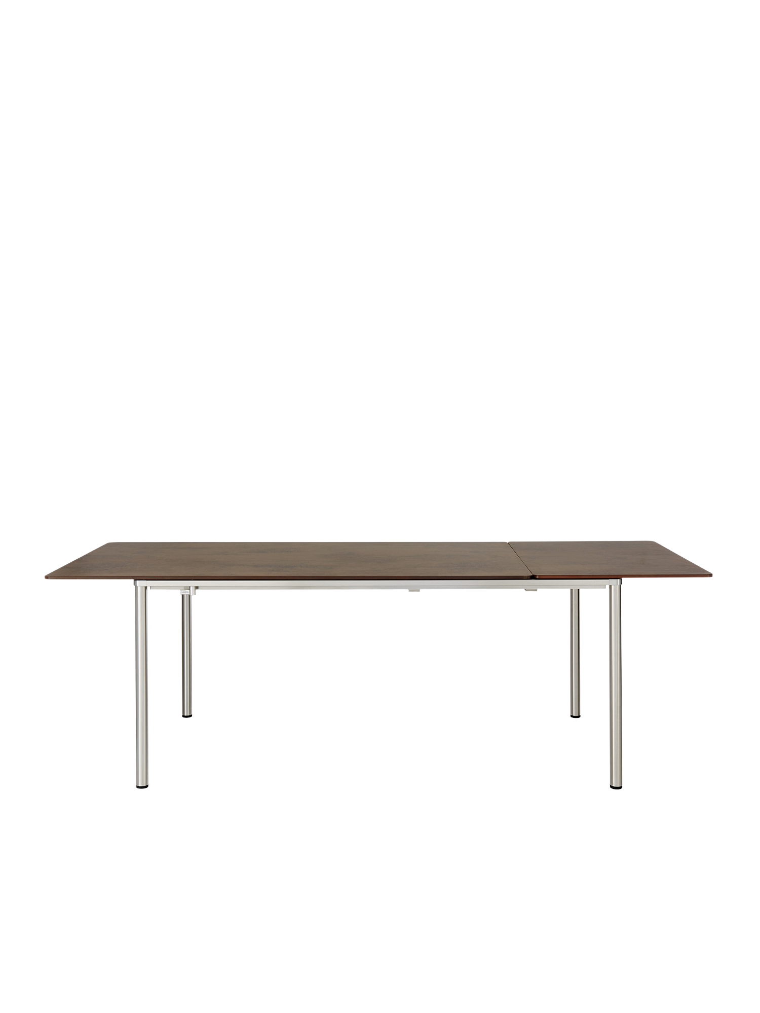 Die innovative und leichtgängige Ausziehmechanik der Portland Tische sorgt für einen fließenden Übergang vom Tisch zur Tafel. Beim mittleren und großen Modell der Serie lagert die Einlegeplatte im Tisch, beim kleinen Tisch wird sie in einer separaten Tasche verwahrt. Zur Erweiterung wird die Tischplatte leicht mit wenigen Handgriffen seitlich verschoben. Beim großen und mittleren Modell wird die Einlegeplatte so positioniert, dass die Tischplatte einen gleichen Überstand zu beiden Seiten hat oder aber auf einer Seite vollständig übersteht. In dieser Variante können alle Gäste längsseits sitzen und Beinfreiheit genießen. Beim kleinen Tisch ist die Platte immer mittig ausgerichtet.