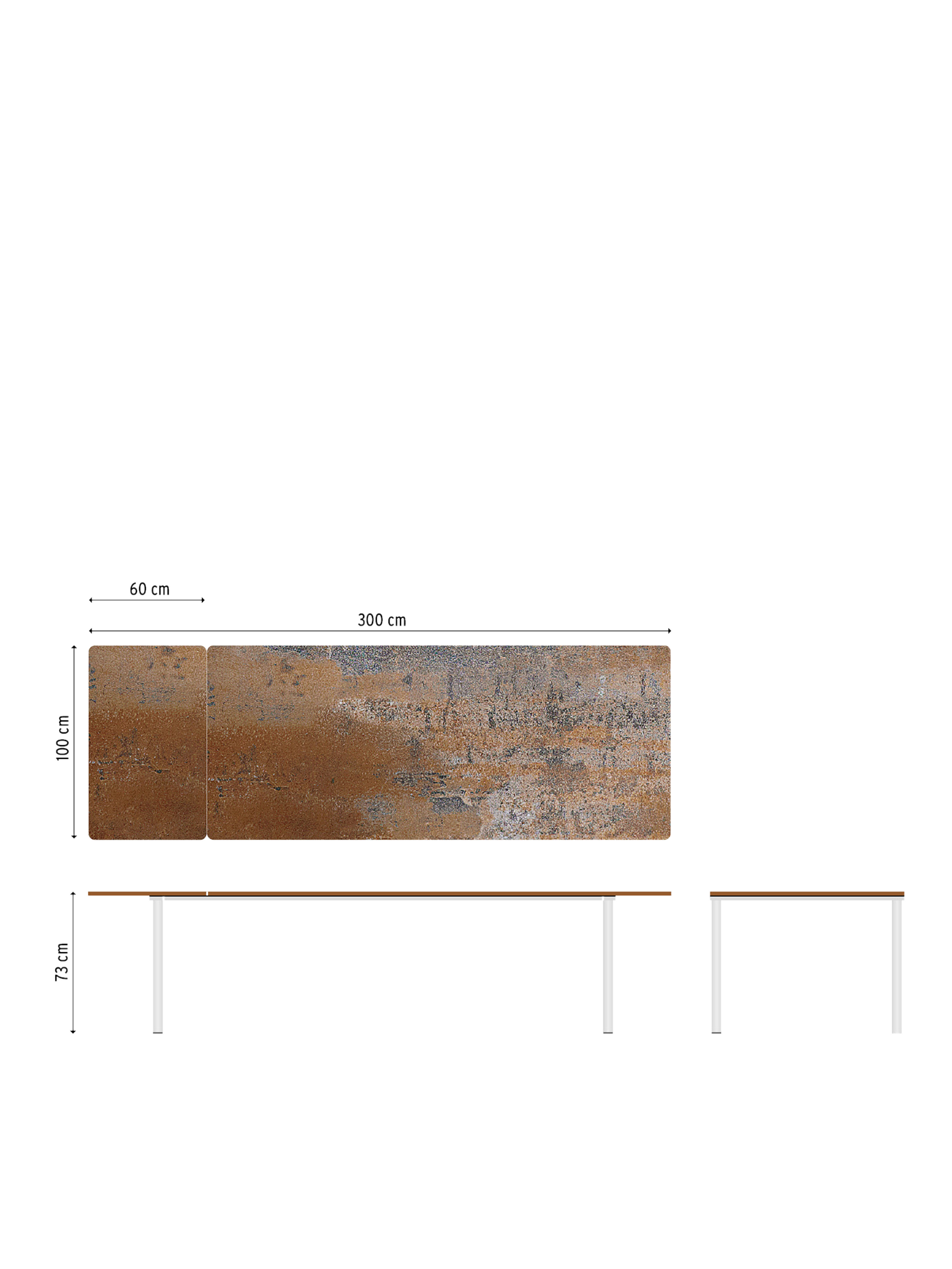 Portland Ausziehtisch Edelstahl/Kunstharz Patina Graubraun 240-300 x 100