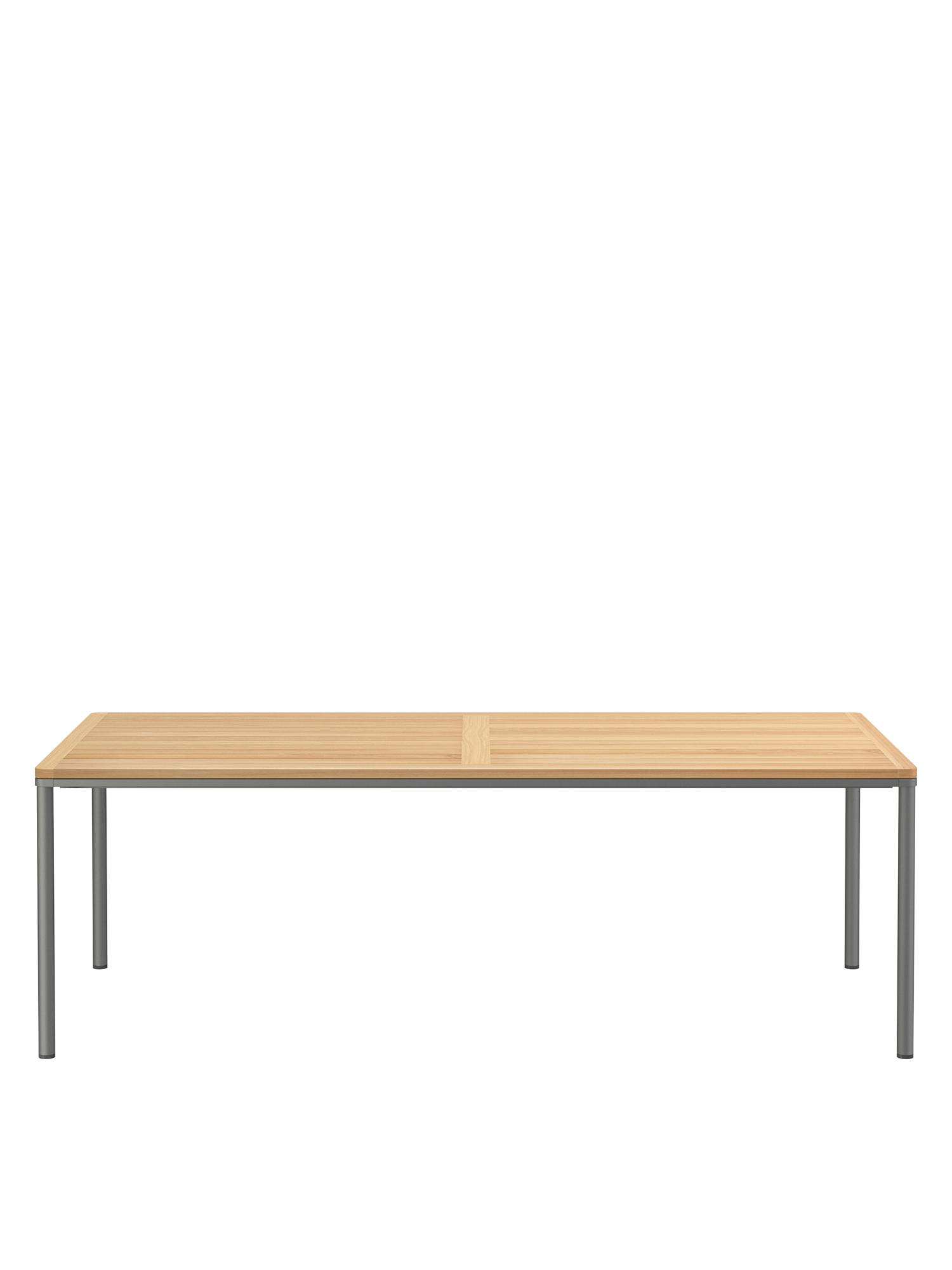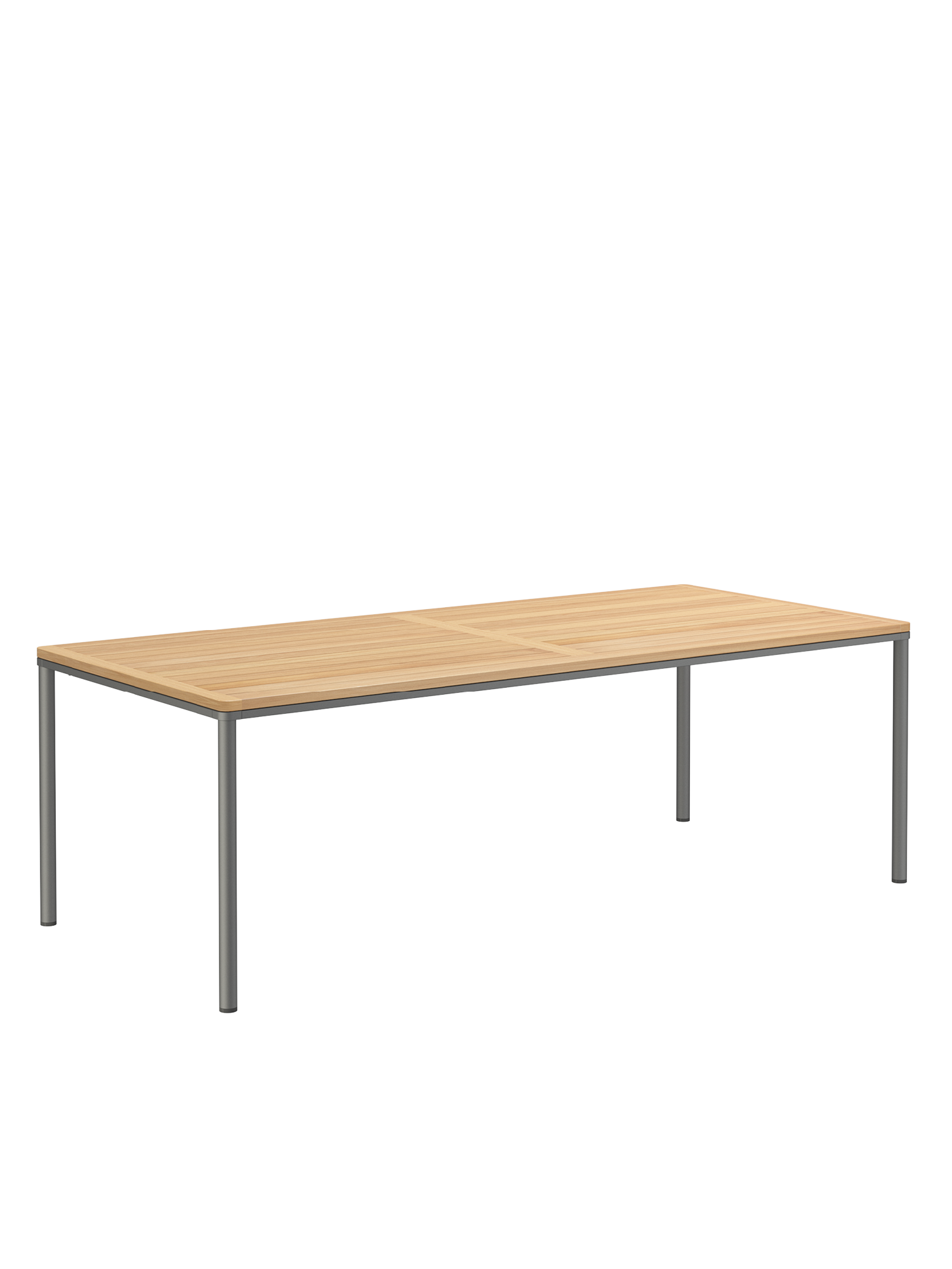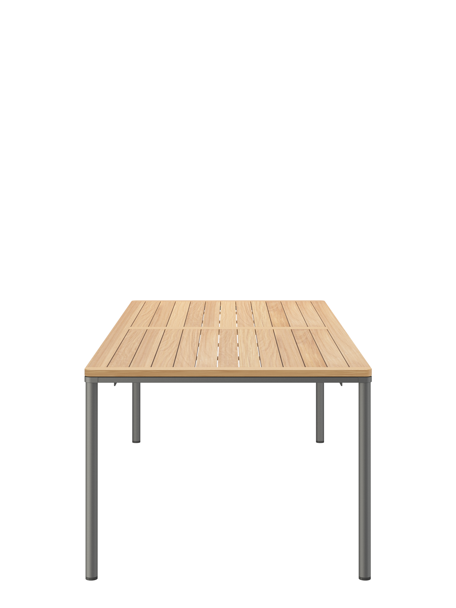 Eine umlaufende Zarge mit sanfter Rundung prägt das Design der Portland Tische. Sie sind der elegante Mittelpunkt jeder Gesellschaft. Die großzügigen Tischplatten aus hochwertigem Plantagenteak ruhen auf vier schlanken Beinen, das graphitgrau pulverbeschichtete Edelstahlgestell harmoniert perfekt mit den Stühlen unserer modernen Möbelserien.