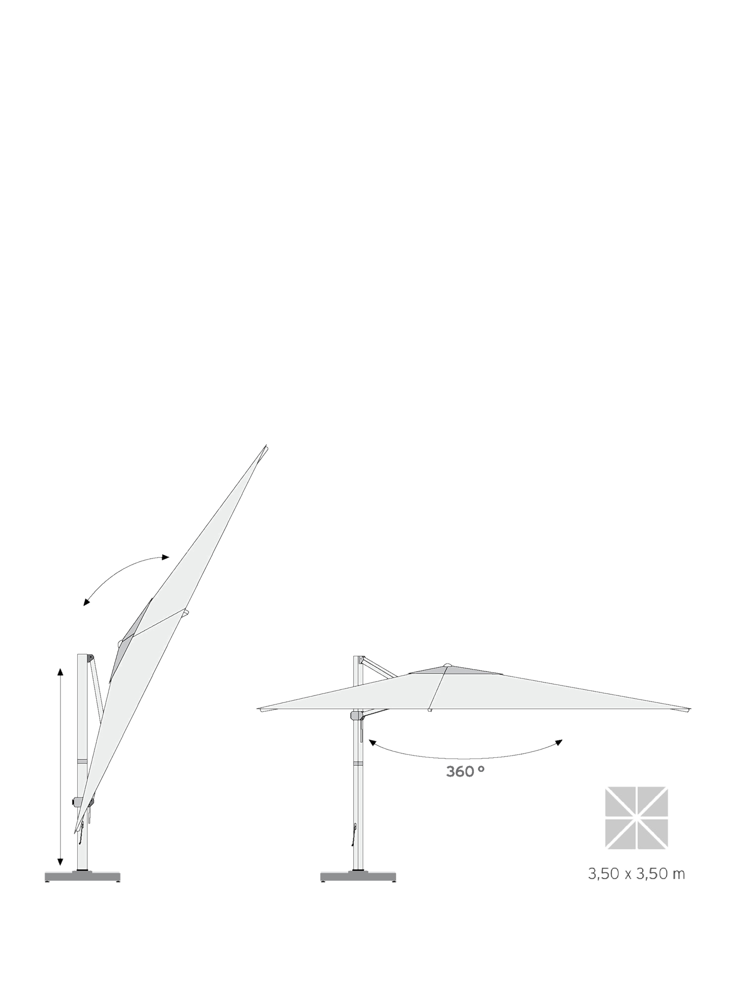 Zur Stabilisierung des großzügigen Schirms wird der passende Schirmständer mit stabilen Platten beschwert. Sie verbergen sich unter einer farblich passenden Abdeckung. Zur Auswahl klicken Sie bitte auf den Reiter "Zubehör" auf dieser Seite.