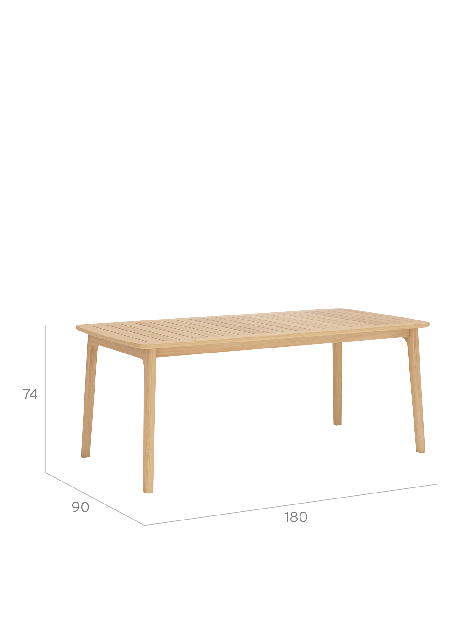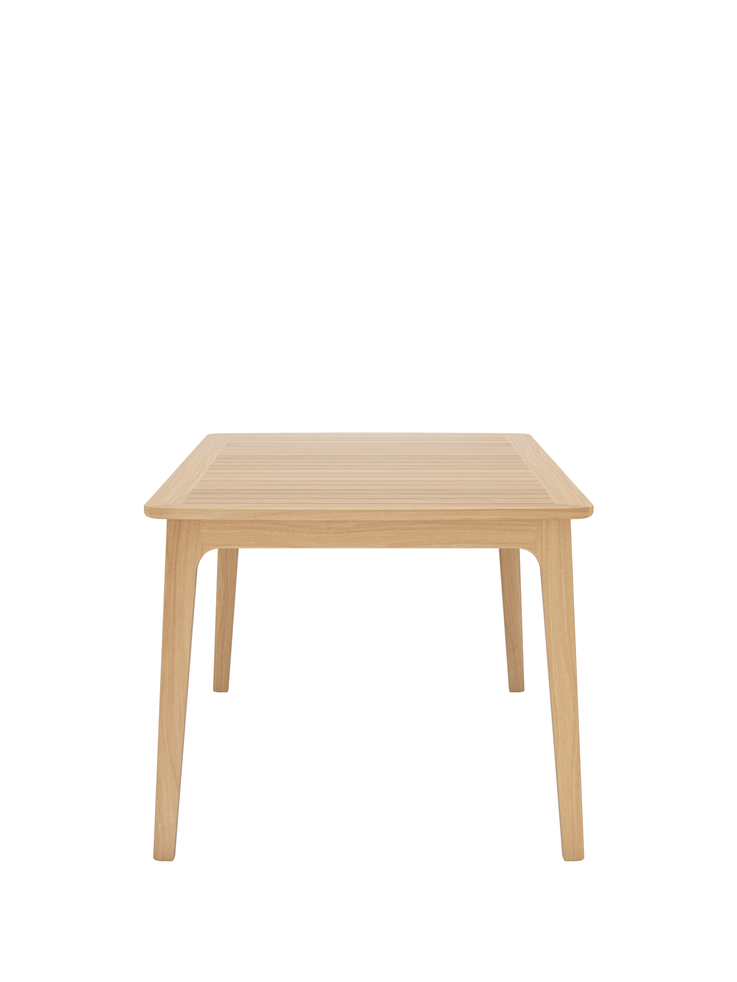 Quer verlaufende Leisten, die von umlaufenden Rahmenhölzern gefasst werden, prägen das klare Design der Preston Tische aus hochwertigem Plantagenteak. Mit sanft gerundeten Formen und geraden Linien passen sie ideal zu den Dining-Möbeln unserer modernen Teakkollektionen wie Luton oder Cavo, deren Armlehnstühle sich unter die Tischplatte schieben lassen.