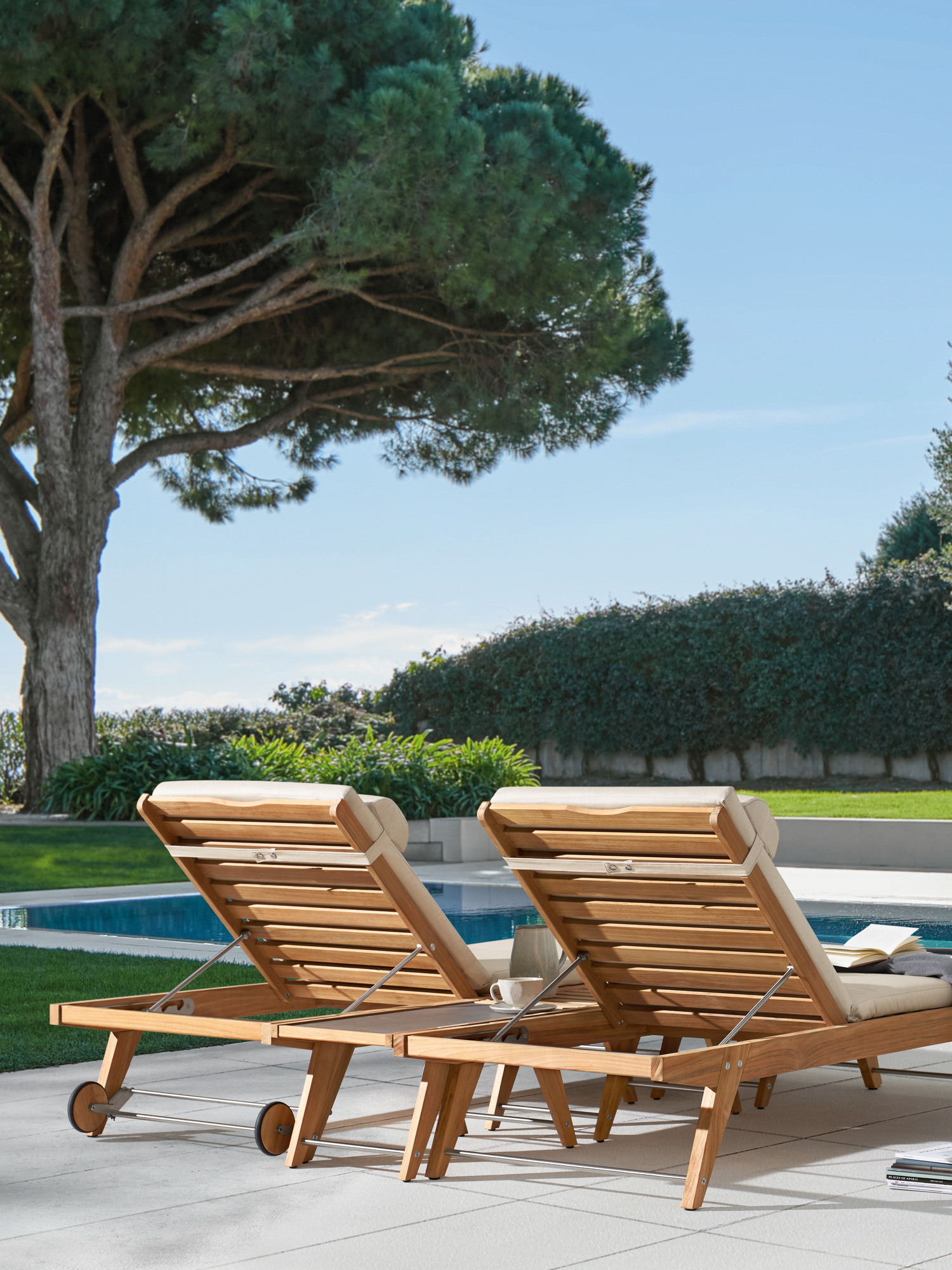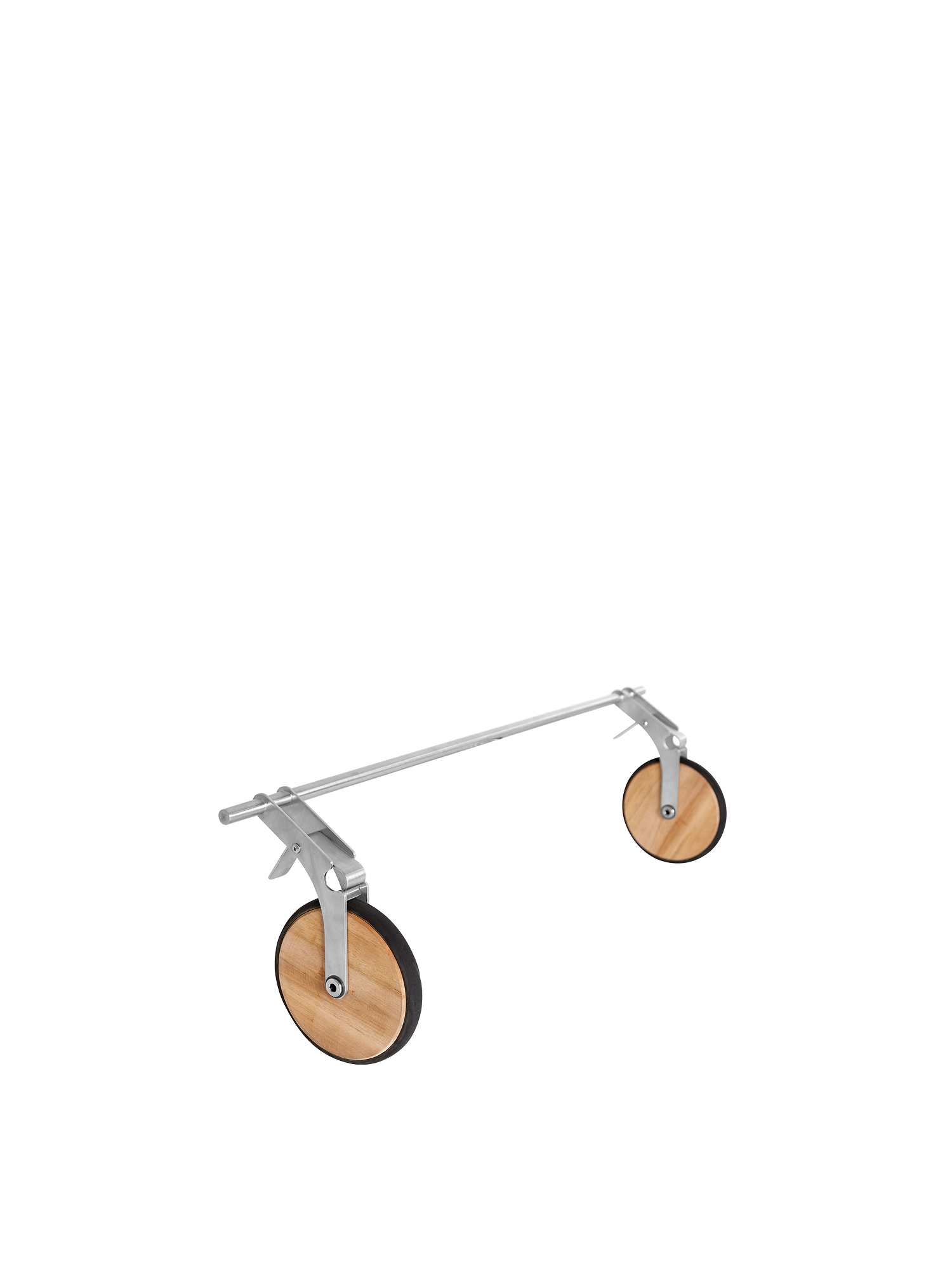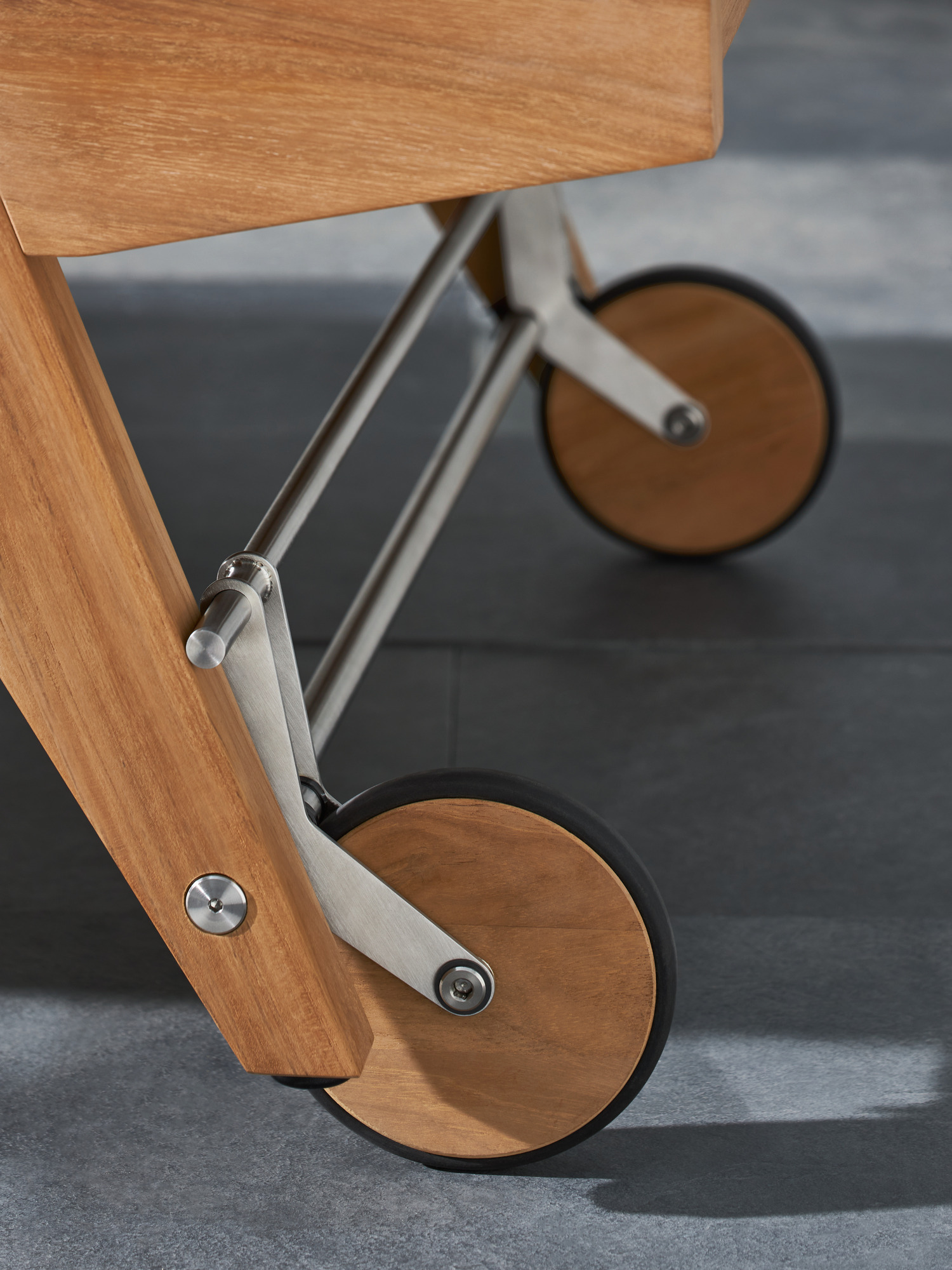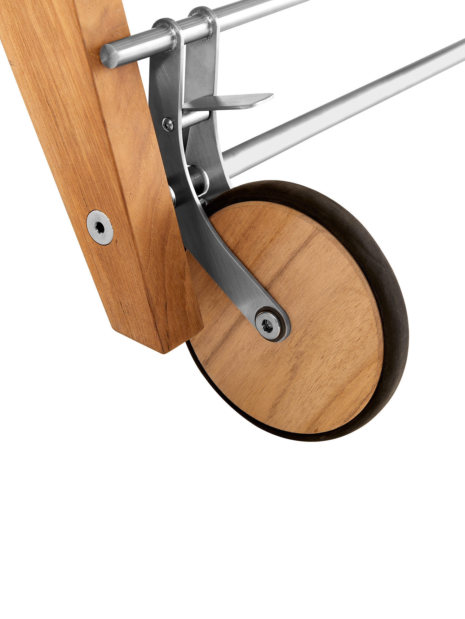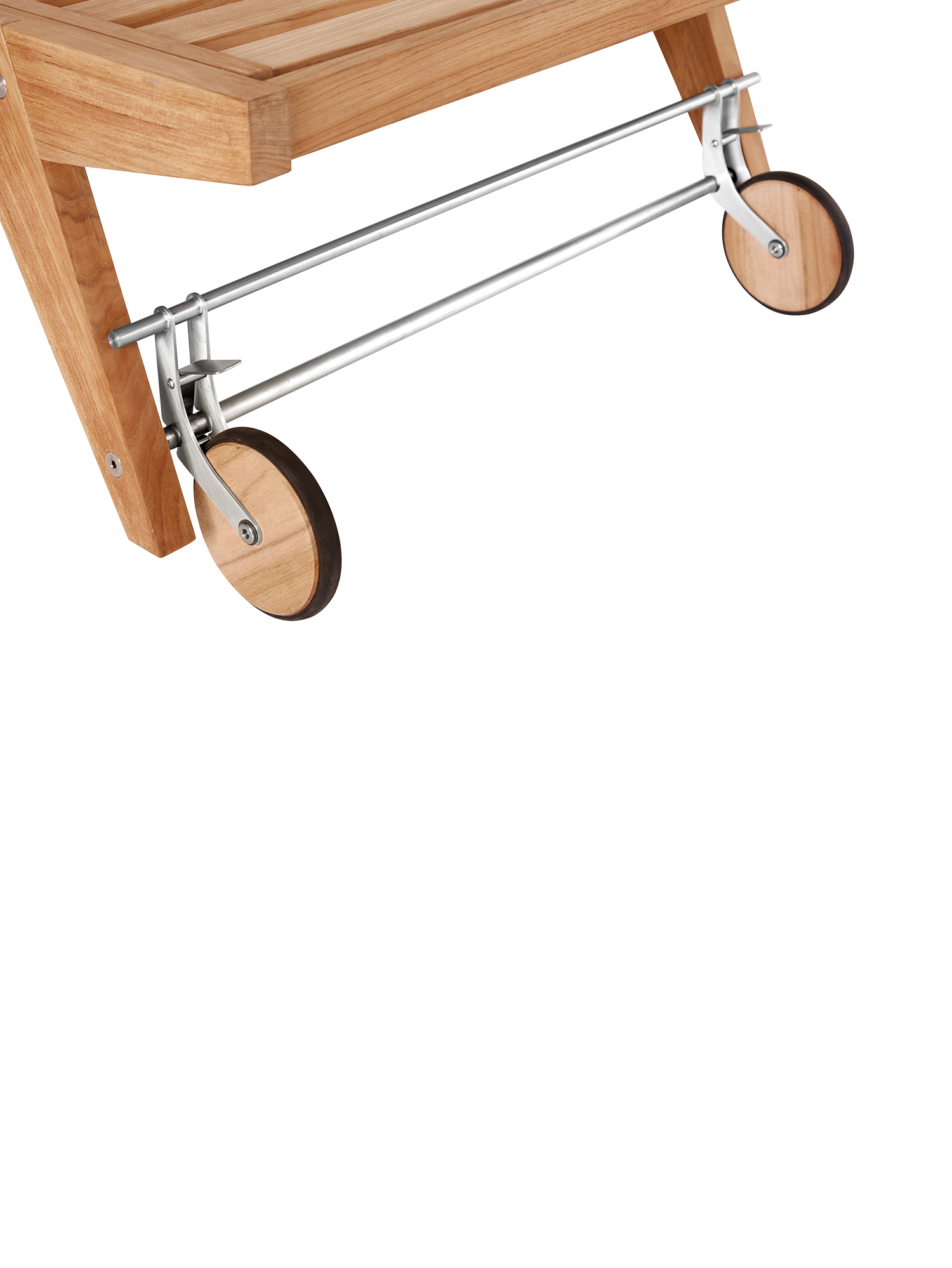Dank eines zusätzlichen Räderset lässt sich die Doppia Liege mühelos zum Wunschort manövrieren. Die Rollen werden einfach aufgesteckt.